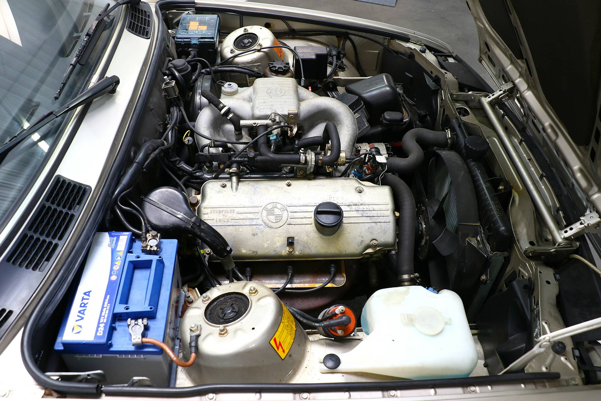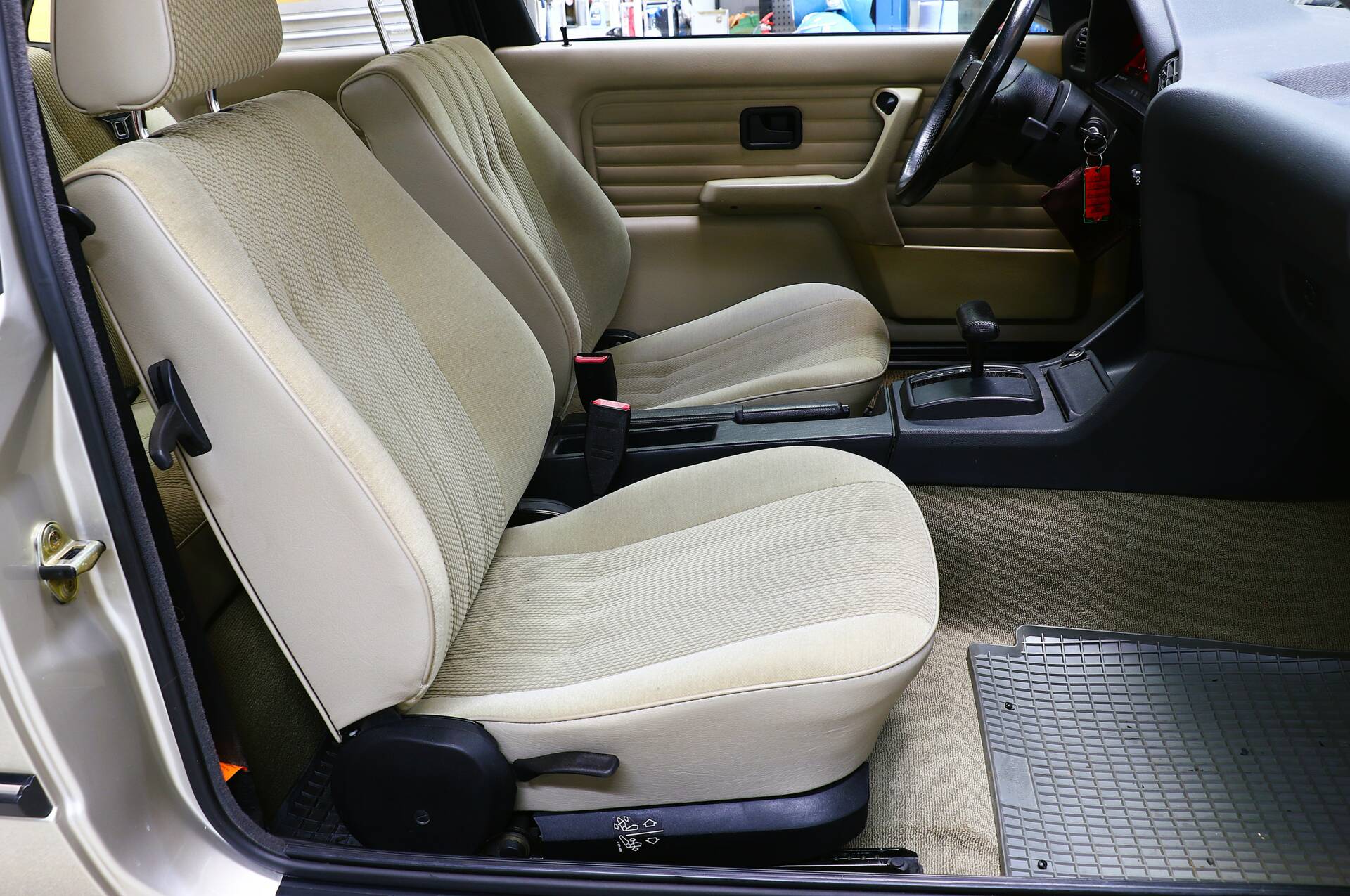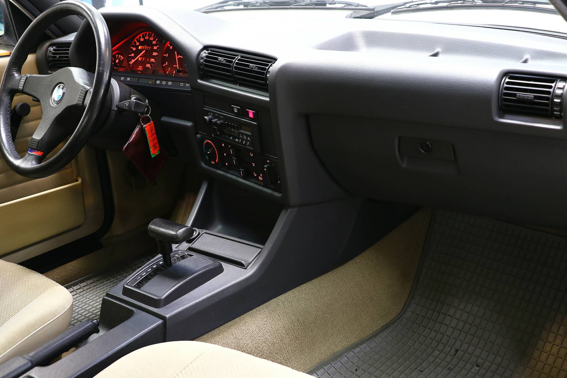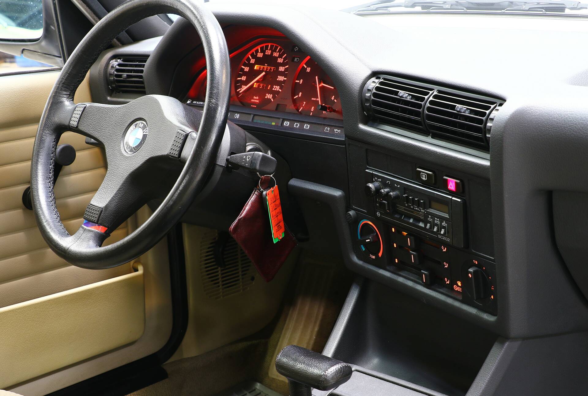 Our 318i was first registered in July 1987, making it one of the last pre-facelift models. It is therefore still equipped with the legendary M10 B18 four-cylinder engine, which, unlike its successor (M40), features a timing chain, thus eliminating the need for frequent timing belt changes. What is truly special about this car, however, is its extremely low total mileage of only around 33,000 kilometers and the evidently meticulous care it received within a family (a transfer of ownership from mother to daughter is documented).