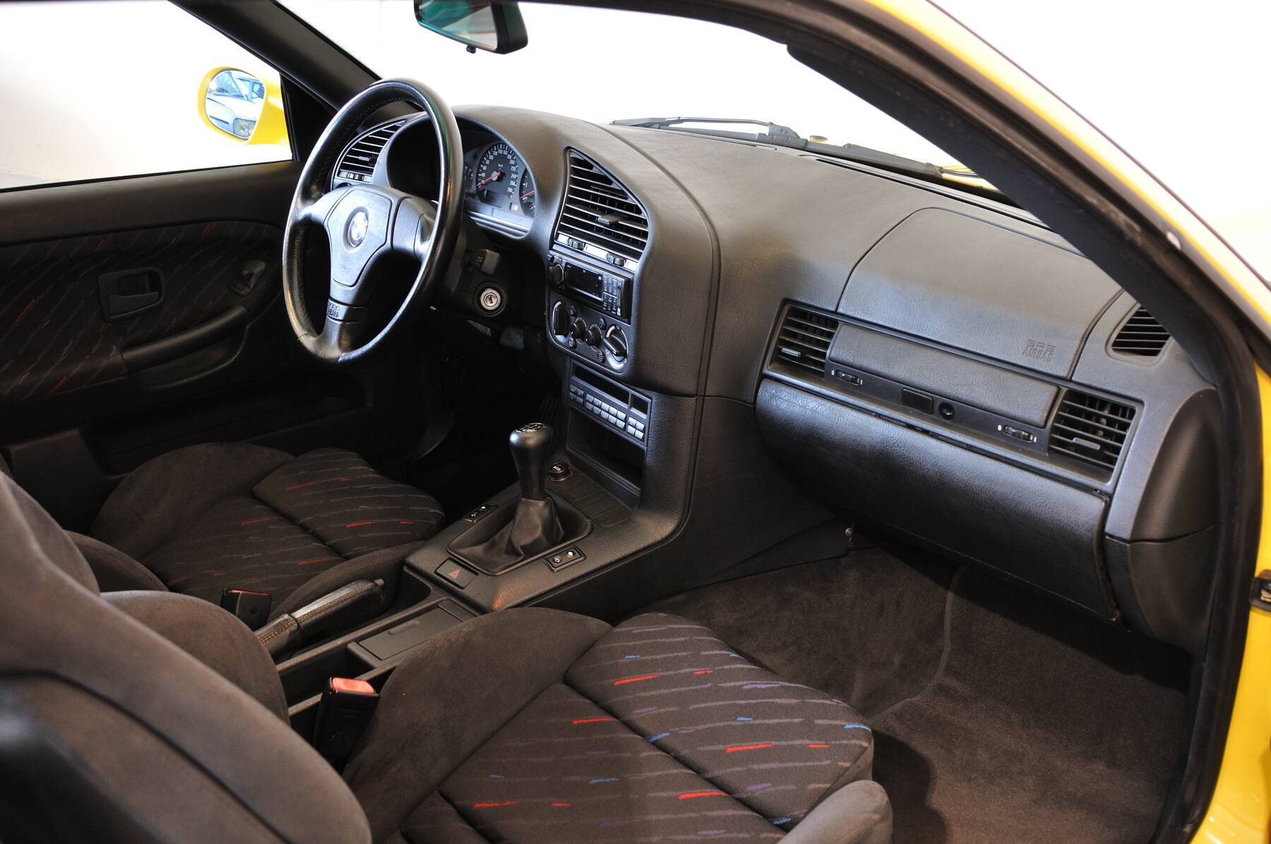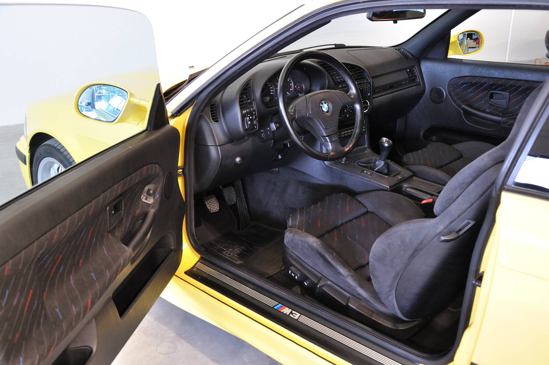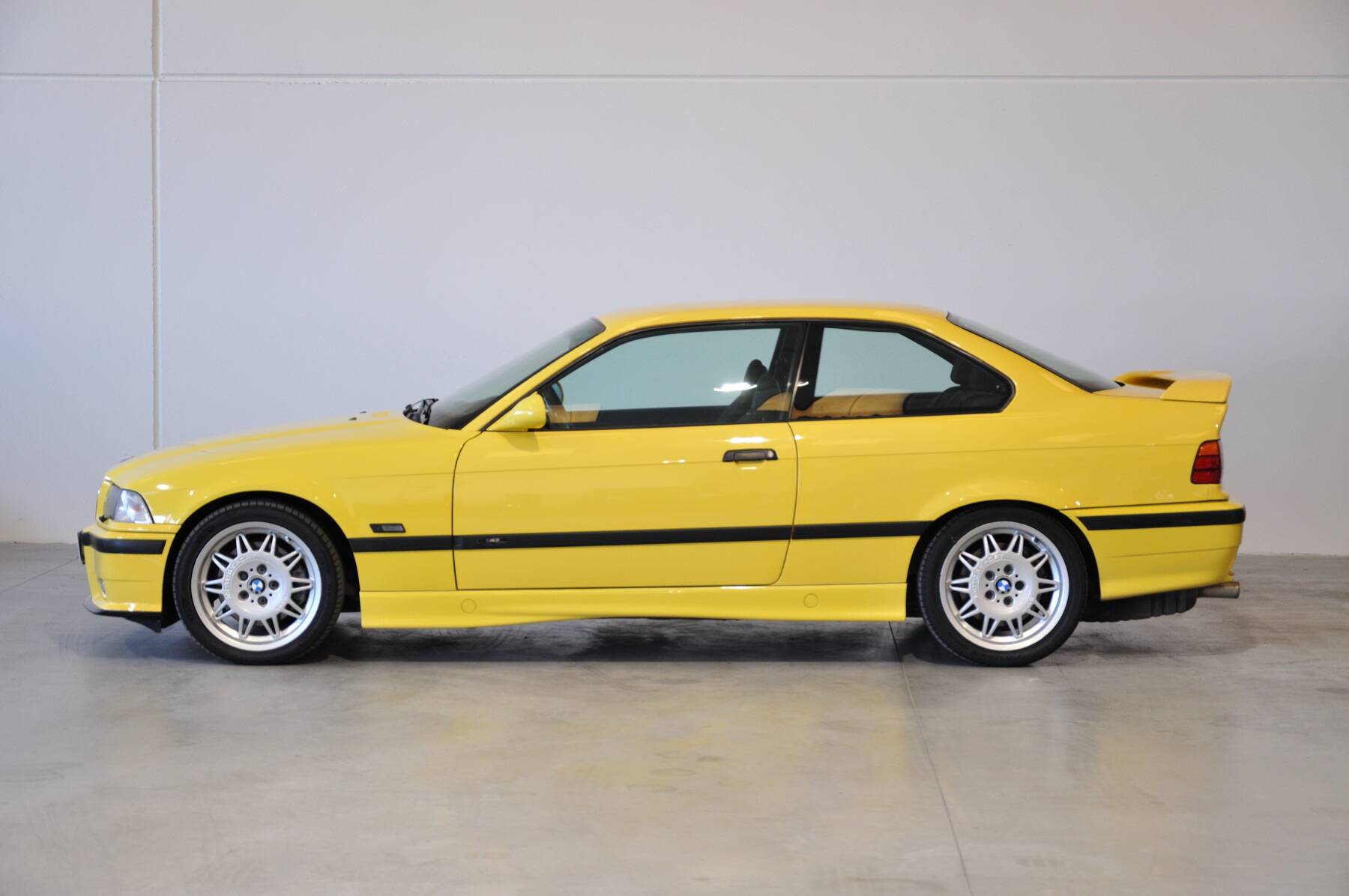 BMW M3 Coupé E36 3.0 286cv, la prima M a 6 cilindri, rara tinta Dakar Gelb, aria condizionata, doppie chiavi e manuali di bordo, iscrizione ASI con CRS, 142.000km, revisionata fino a giugno 2027.