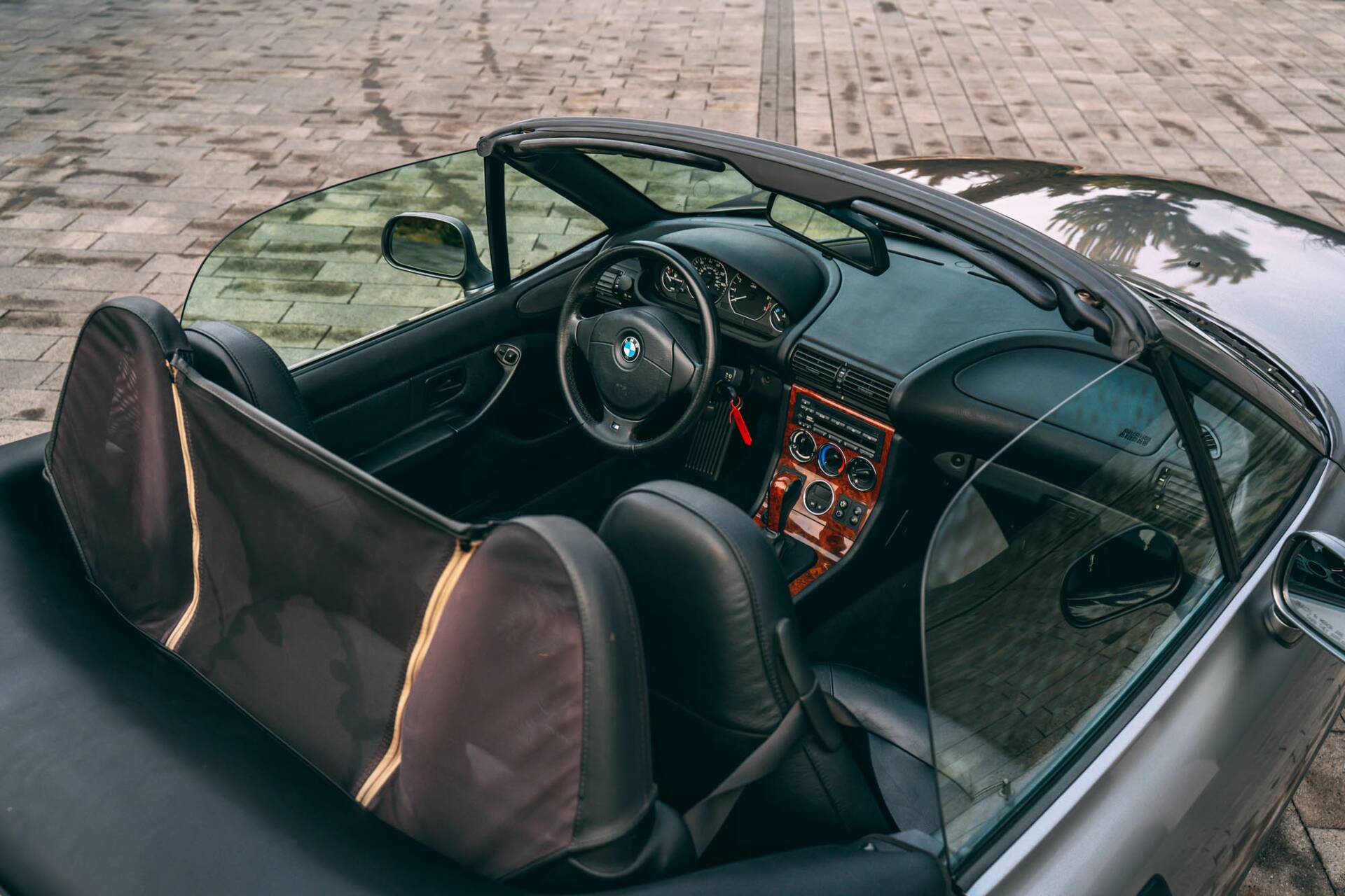 The Z3 is equipped with a wind deflector and a persennning (convertible roof cover). Everything works perfectly, both mechanically and visually, making this a well-preserved example of a classic BMW**