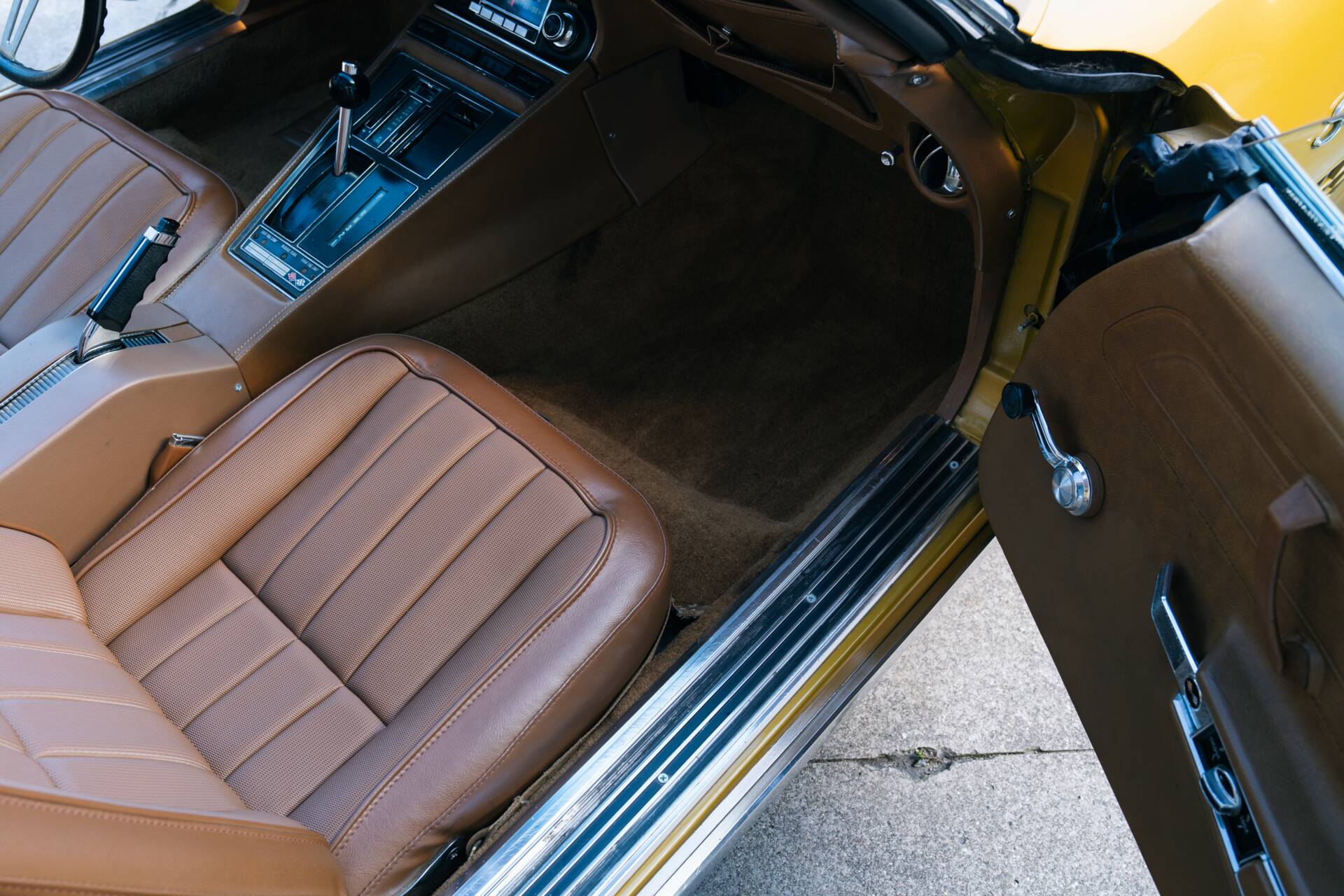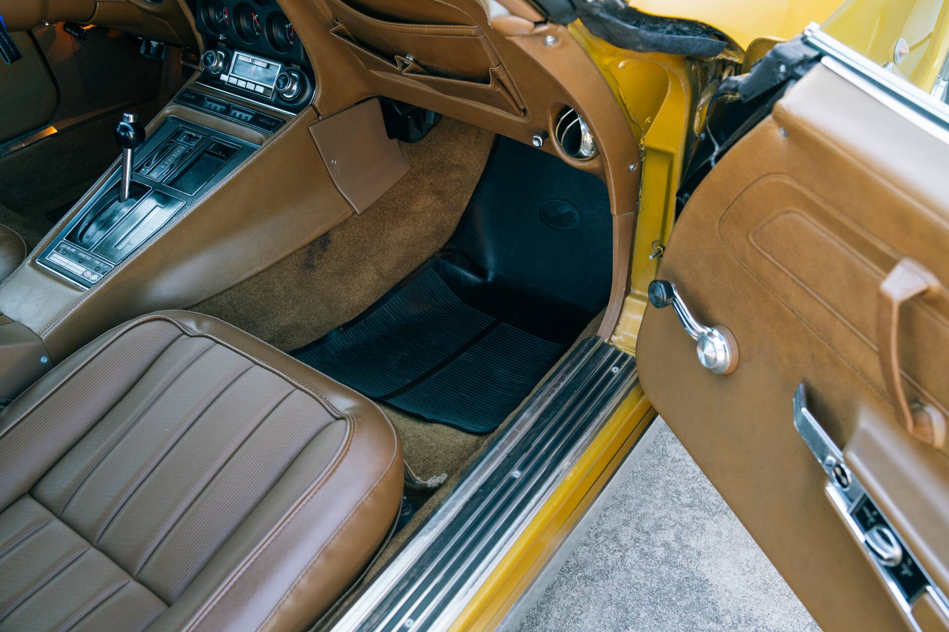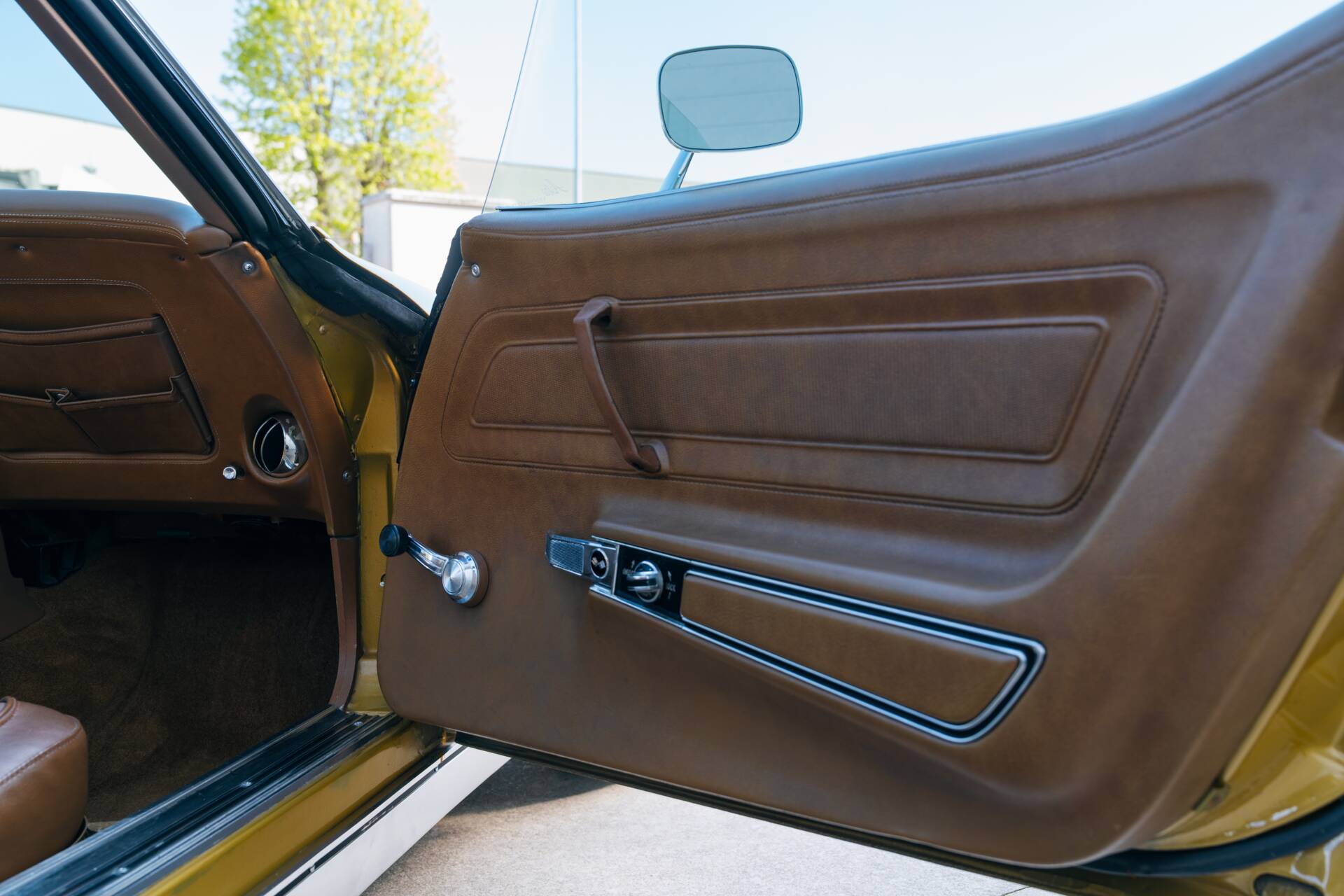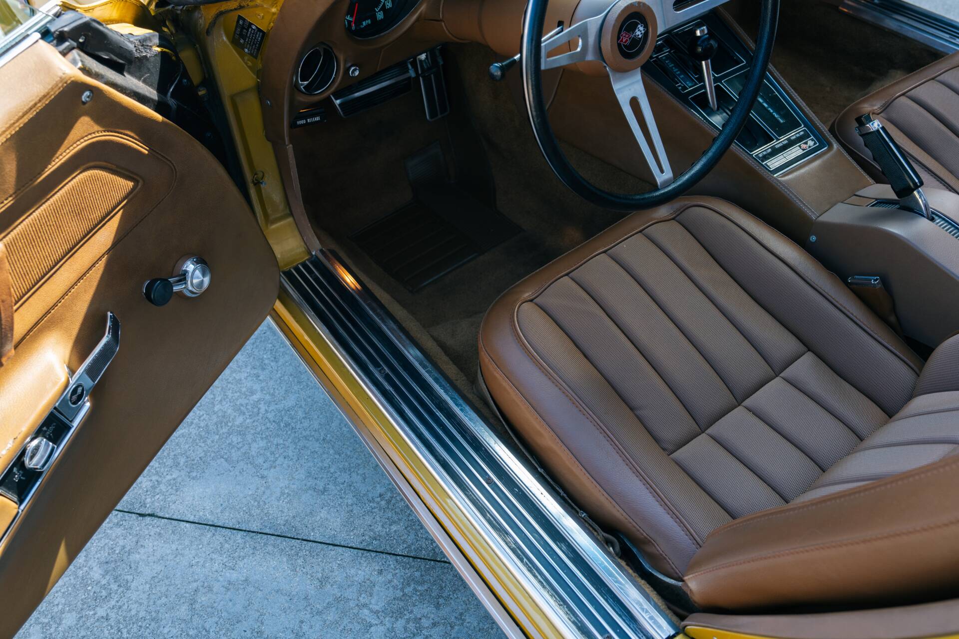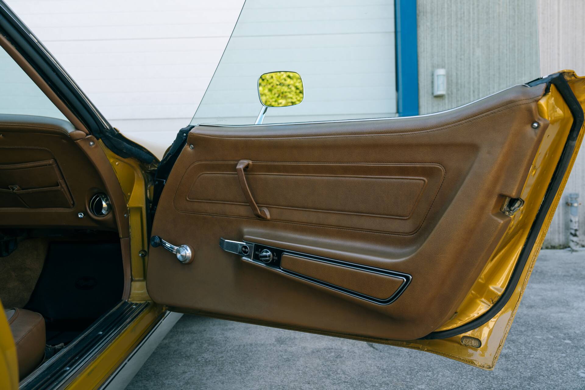 We are pleased to offer this stunning 1971 Chevrolet Corvette C3, finished in the distinctive War Bonnet Yellow, a brilliant gold tone that beautifully enhances the car’s sculpted lines, paired with elegant dark chocolate brown interior.