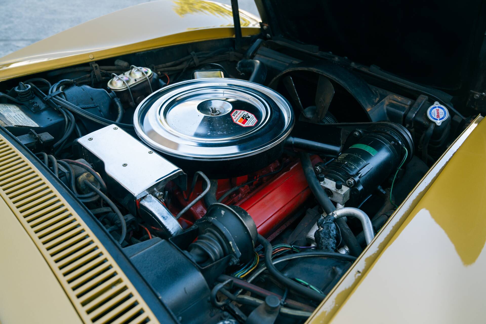 Proponiamo questa splendida Chevrolet Corvette C3 del 1971, rifinita nell’affascinante e raro colore War Bonnet Yellow, una brillante tonalità oro che esalta magnificamente le linee della carrozzeria, abbinata a eleganti interni color marrone scuro cioccolato.