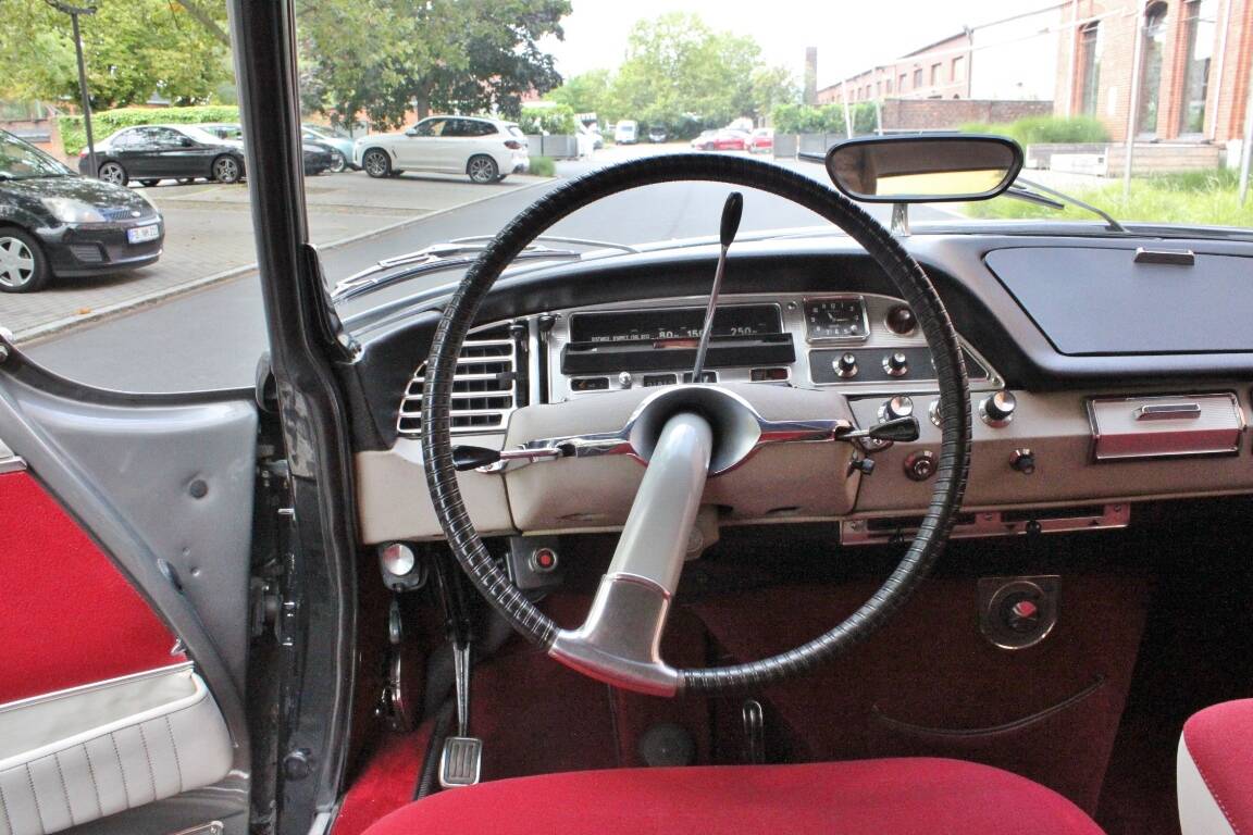 Die Erstauslieferung dieses Citroen DS 21 Pallas in der Farbe Gris Palladium erfolgte im Mai 1966 in Aachen an einen Zahnarzt. Als 1966er Modell verfügt es noch über das sehr schöne alte Gesicht.