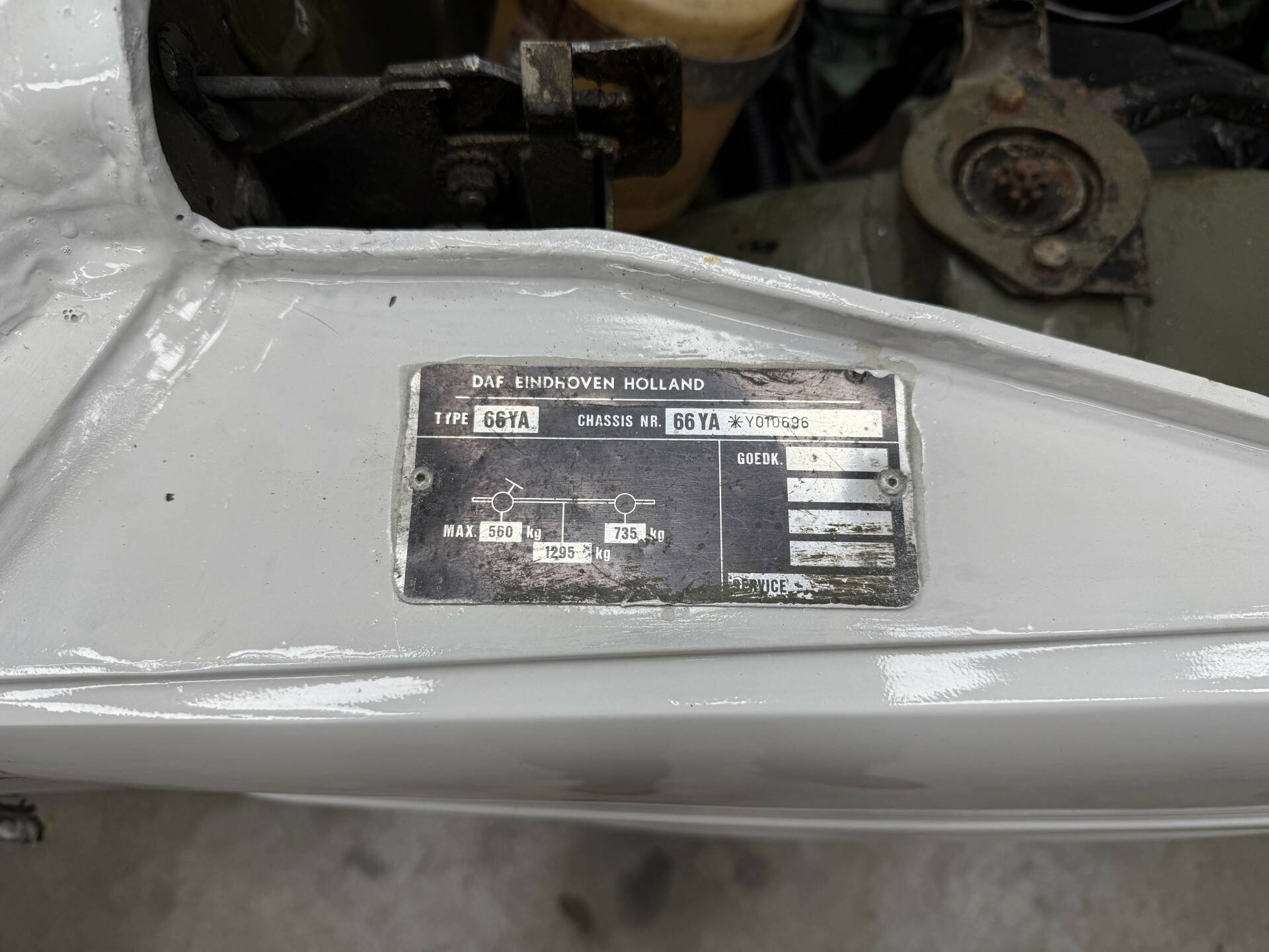 DAF 66 YA Koerier Trade-in Car Built for the Dutch army for support duties, Just a cool project for the technical enthusiast, Repainted with "budget-friendly" dedication, Only 1201 66 YAs have been manufactured, Longterm ownership, Touring with four people, Complete with hood and side windows,