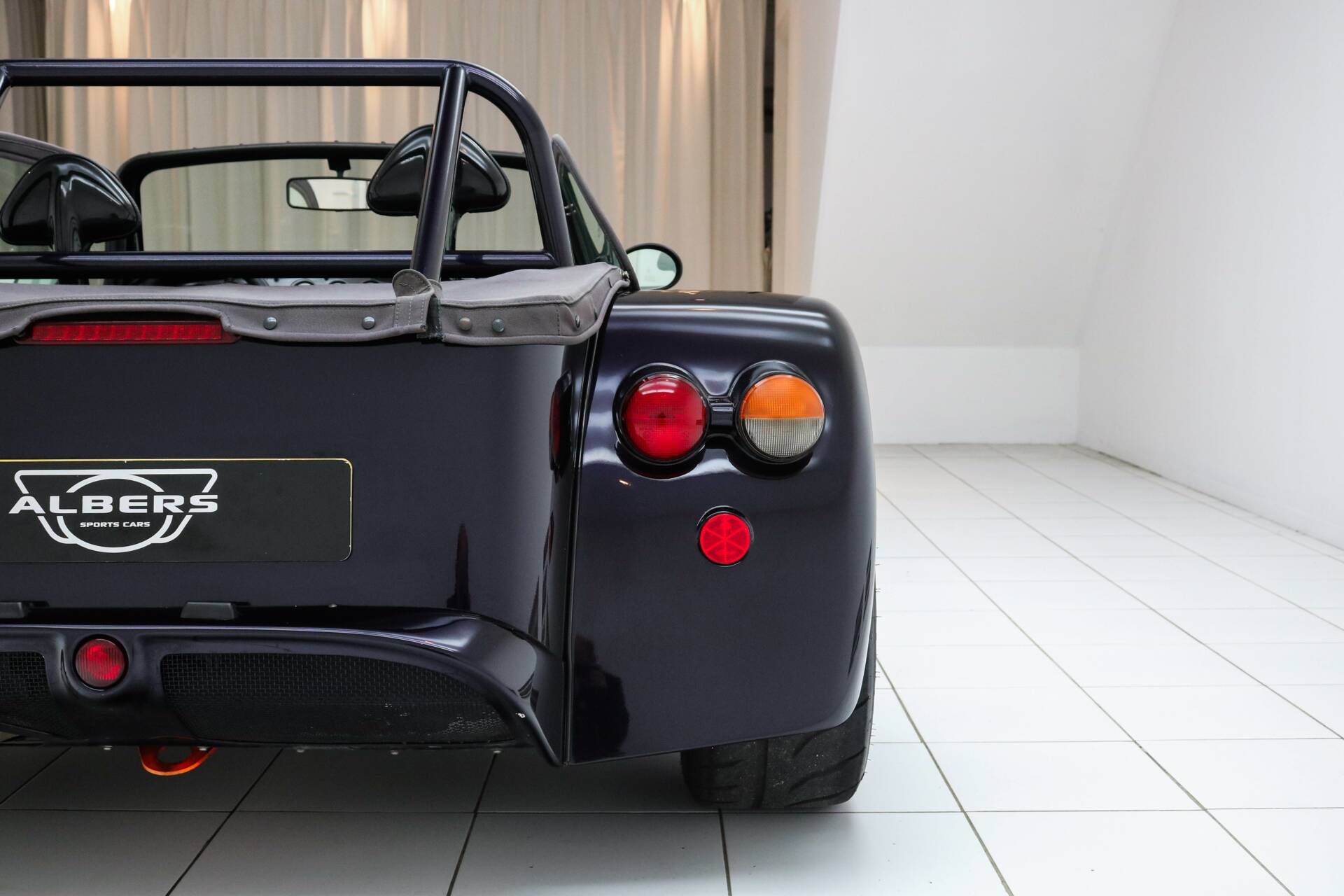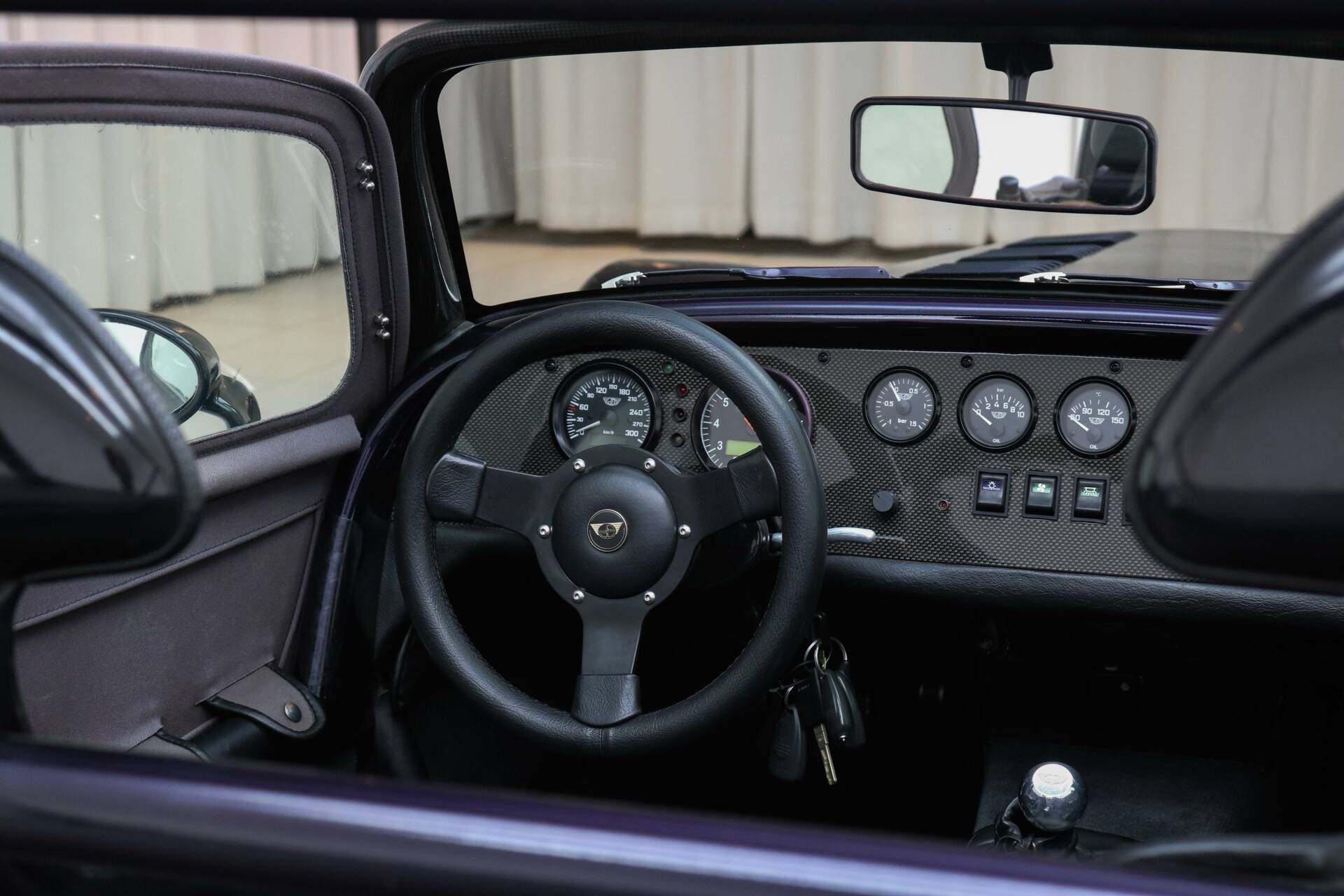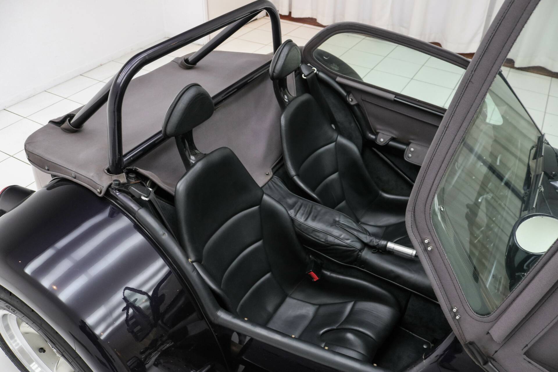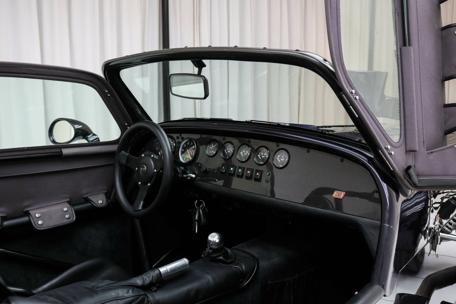 The car is finished in Viola Metallic and rides on original 15-inch Revolution wheels in silver. This D8 also features a carbon window frame, grey doors, and a grey tonneau cover. It already includes some typical Wide-Track features, such as side indicators on the rear fenders, a third brake light, and a rear fog light in the bumper.