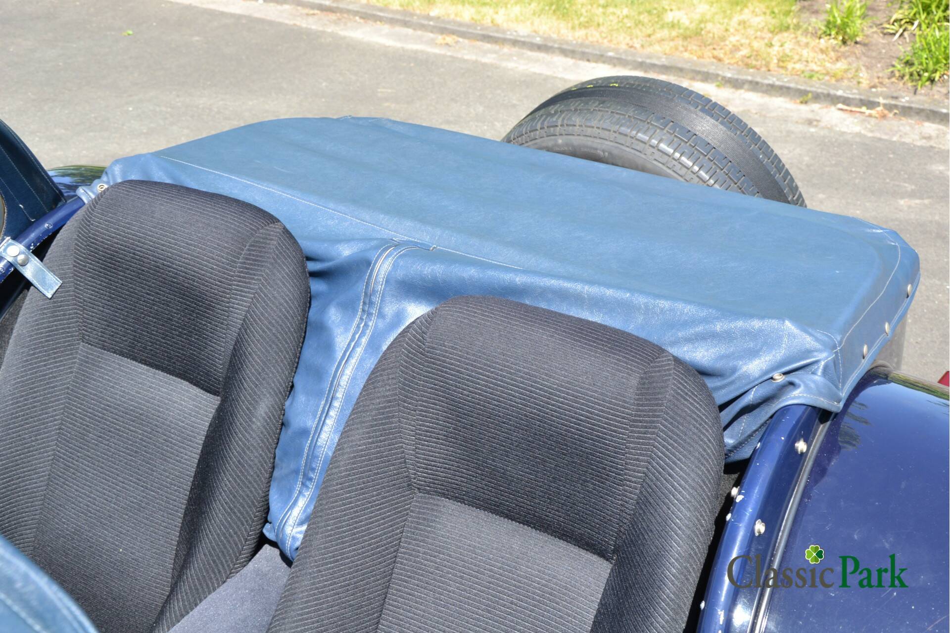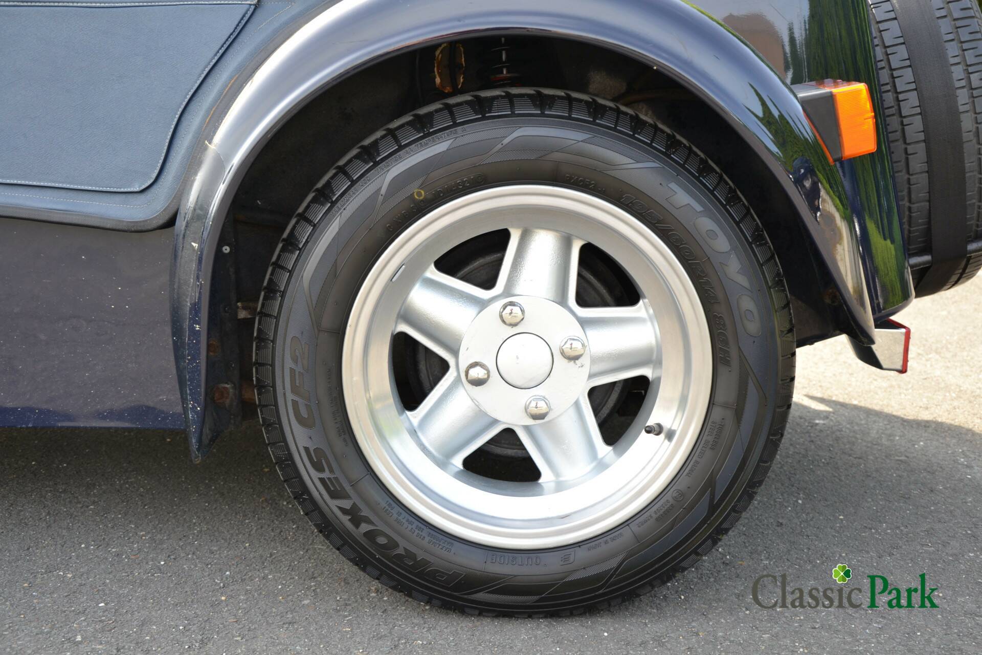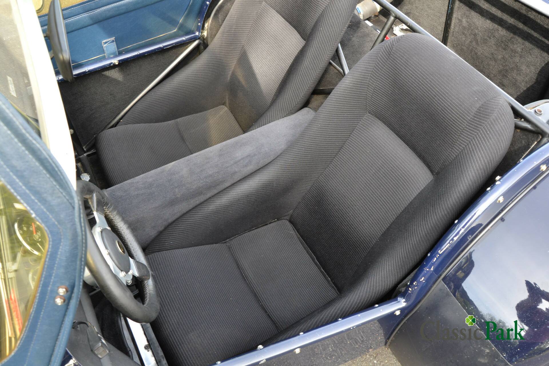 This Donkervoort is of course equipped with the original long front fenders, which gives the car a beautiful, classic look. The interior has black fabric upholstery with a leather Donkervoort steering wheel. The doors and the cover are in matching blue and are in good condition. 195/60-R14 tires are mounted on the 14-inch Donkervoort alloy wheels. An extensive maintenance service was carried out in 2024, the invoice of which is included with the documentation.