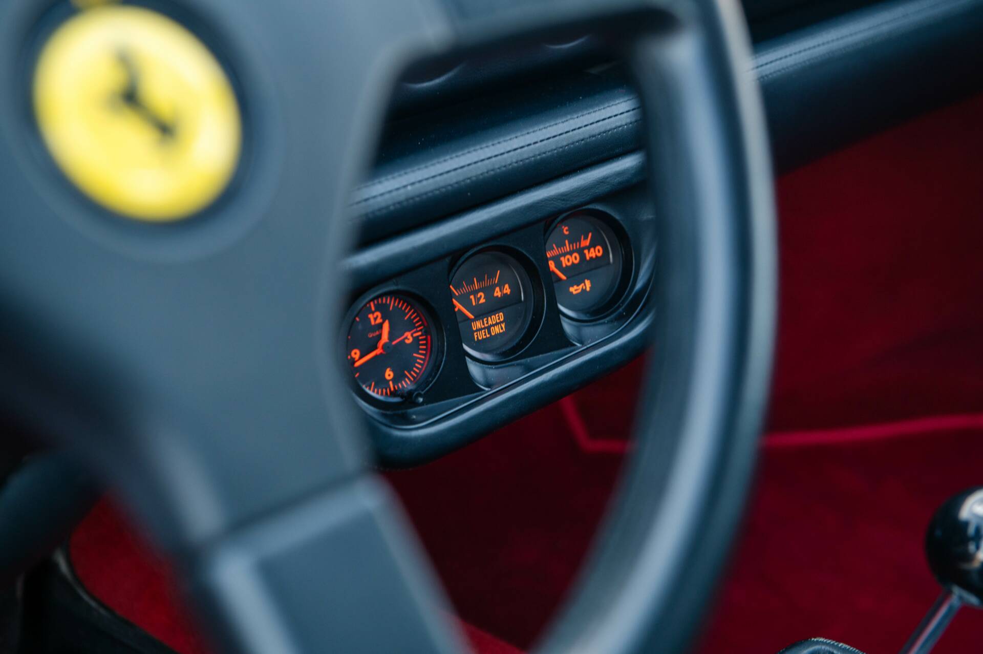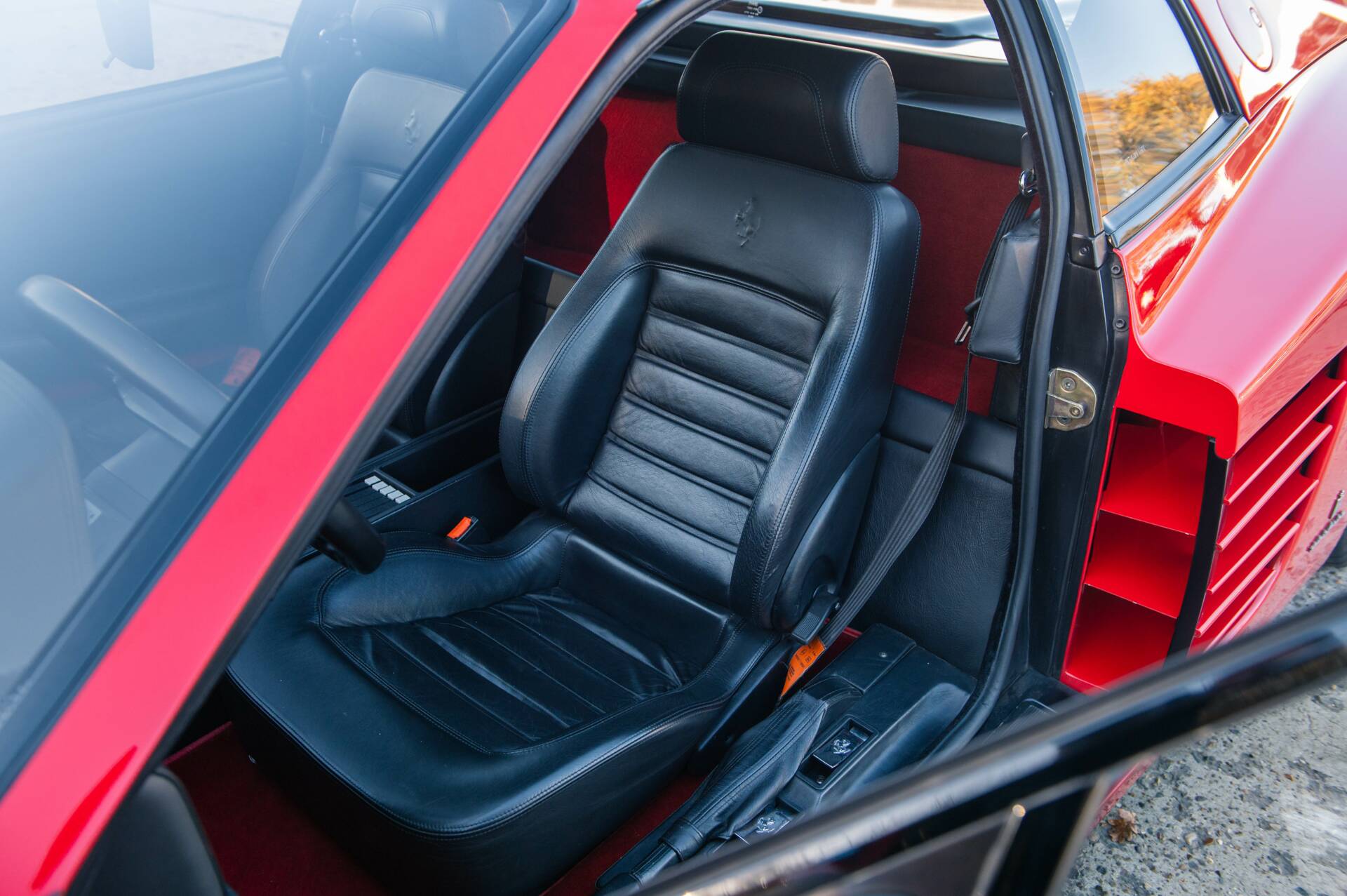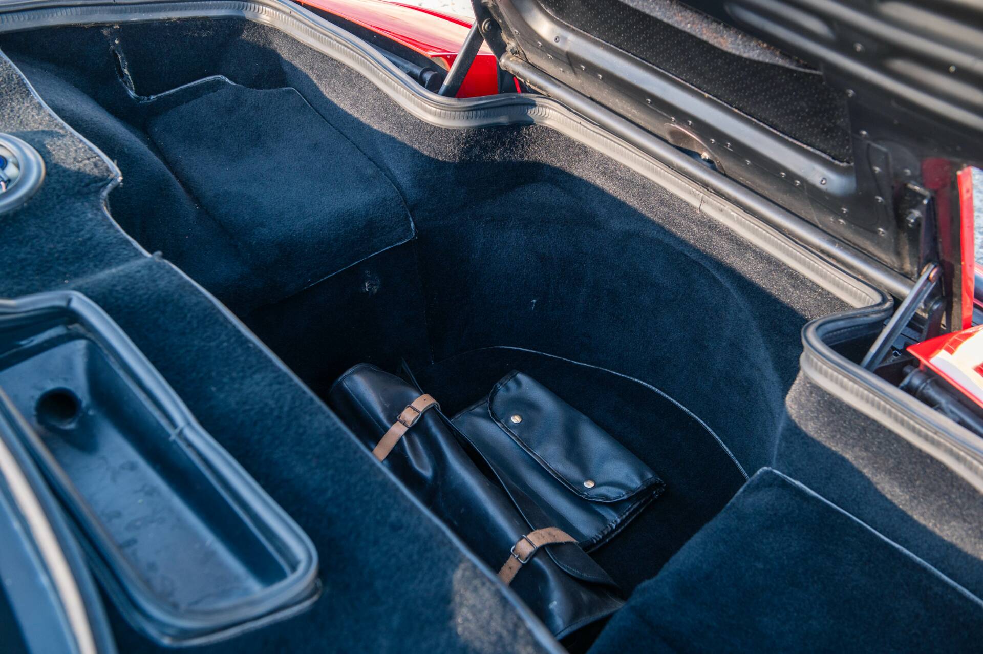At this moment the car benefits from its 2024 engine-out service who included new timing belts, so the next owner has no major costs ahead. New tyres have been fitted and the car is fully ready to be used. A Tubi Style exhaust system is currently on the car, giving the flat twelve a slightly sharper tone wich sounds great and the original factory exhaust is included for anyone who prefers absolute originality. Inside, everything is original. The black leather is in excellent condition and the red carpets give the cabin that little extra dimension collectors always appreciate. It’s the subtle detail that brings the whole interior together. The atmosphere inside shows careful, respectful ownership rather than hard use. Mileage is consistent from new and supported by service stamps, invoices and independent records.