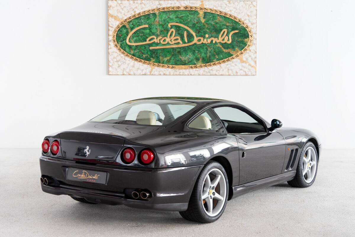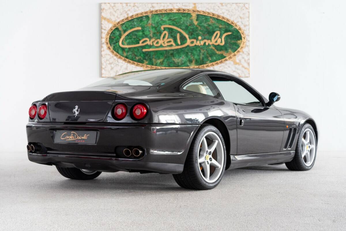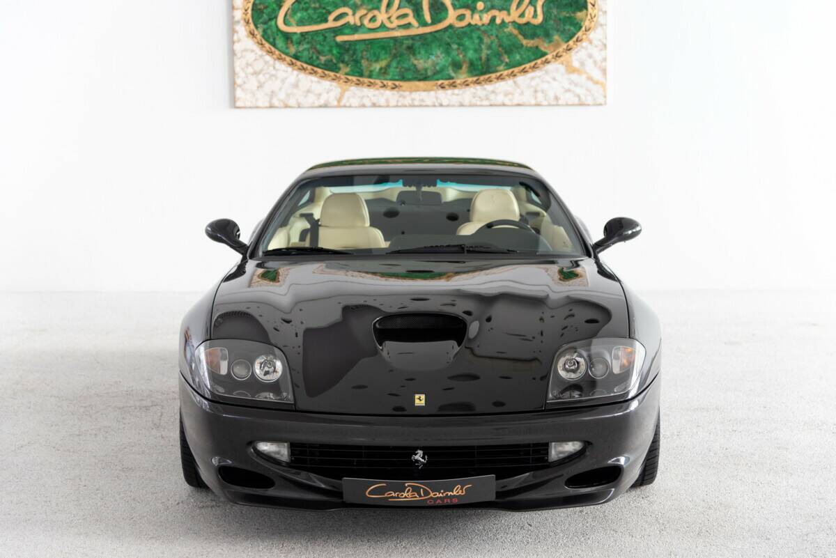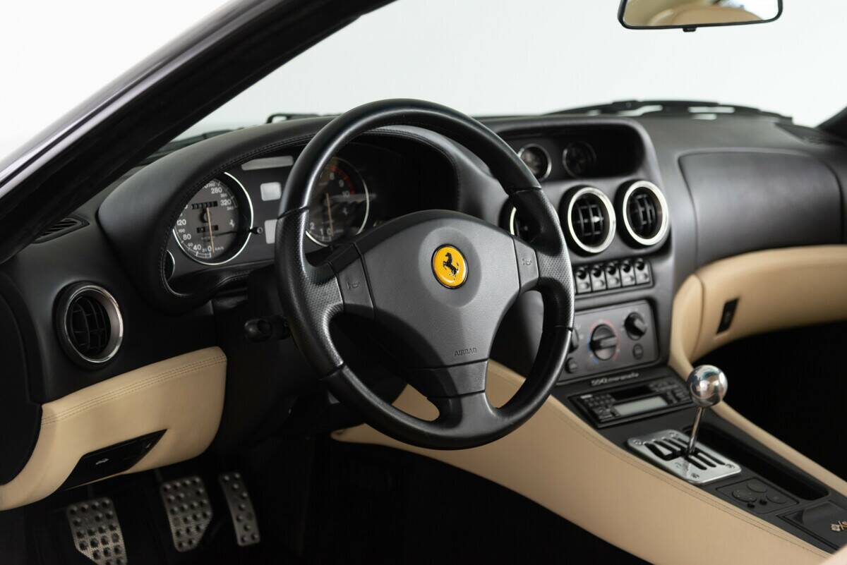 Zum Verkauf steht ein exklusiver Ferrari 550 Maranello, der im Jahr 1997 in Frankfurt am Main, Deutschland, erstausgeliefert wurde. Dieses Fahrzeug stammt aus zweiter Hand und wurde 2021 vom aktuellen Besitzer übernommen. Mit nur 8.080 Kilometern auf dem Tacho befindet sich dieser Ferrari in einem neuwertigen Zustand.Der 550 Maranello präsentiert sich in einer eleganten schwarzen Lackierung, kombiniert mit einer luxuriösen Innenausstattung in Cremeleder – eine zeitlose und stilvolle Farbkombination, die das sportliche und exklusive Design dieses Modells perfekt unterstreicht.Die letzte Wartung wurde 2021 durchgeführt, was den gepflegten Zustand des Fahrzeugs unterstreicht. Dieses Modell ist nicht nur ein Highlight für Ferrari-Enthusiasten, sondern auch eine außergewöhnliche Gelegenheit für Sammler und Liebhaber klassischer Sportwagen.Verpassen Sie nicht die Chance, diesen einzigartigen Ferrari 550 Maranello in absolutem Top-Zustand zu erwerben. Ein Klassiker mit Seltenheitswert und faszinierender Historie – bereit, Ihre Sammlung zu bereichern. Der Ferrari 550 Maranello, erstmals 1996 vorgestellt und 1997 in den internationalen Automobilmarkt eingeführt, war Ferraris Antwort auf die zunehmende Konkurrenz im Segment der Hochleistungs-Gran-Turismo-Wagen. Die Entwicklung des 550 Maranello markierte eine Rückkehr Ferraris zu einem klassischen Frontmotor-V12-Konzept – eine Anordnung, die seit dem legendären 365 GTB/4 "Daytona" aus den frühen 1970er Jahren bei Ferraris Topmodellen nicht mehr vertreten war.Der 550 Maranello wurde in enger Zusammenarbeit mit dem britischen Designer Ian Callum entworfen, der damals bei Pininfarina tätig war. Der Fokus lag auf einem schlichten, aber kraftvollen Design, das sowohl Eleganz als auch Aggressivität vermitteln sollte. Die Silhouette war fließend und aerodynamisch, mit klassischen Rundscheinwerfern und einer langen Motorhaube, die den potenten V12-Motor verdeckte. Der 5,5-Liter-V12 leistete 485 PS bei 7000 U/min und beschleunigte den 550 Maranello in nur 4,4 Sekunden von 0 auf 100 km/h – bemerkenswerte Werte für die Zeit.Der Ferrari 550 Maranello war technisch hoch entwickelt und auf Spitzenleistung ausgelegt. Der V12-Motor, der im vorderen Teil des Fahrzeugs verbaut wurde, ermöglichte eine nahezu perfekte Gewichtsverteilung von 50:50, was den Wagen besonders stabil und fahrfreudig machte. Das Fahrwerk des 550 Maranello setzte auf eine unabhängige Doppelquerlenkerachse vorne und hinten, ergänzt durch moderne Stoßdämpfer, die je nach Fahrzustand angepasst werden konnten. Diese Konfiguration ermöglichte ein präzises und stabiles Handling, sowohl auf der Rennstrecke als auch auf der Straße.Ein weiteres technisches Merkmal des 550 war die manuelle Sechsgang-Schaltung, die für ihre Präzision und den charakteristischen Schaltklang berühmt wurde. Das Fahrzeug konnte eine Höchstgeschwindigkeit von rund 320 km/h erreichen und wies somit auf Ferraris kompromisslose Hingabe zur Performance hin.Der Innenraum des Ferrari 550 Maranello war luxuriös und sportlich zugleich. Das Cockpit war fahrerorientiert gestaltet, mit hochwertigen Materialien wie Leder und Aluminium, die sowohl Komfort als auch Sportlichkeit verkörperten. Die Rundinstrumente waren in einer klassischen Analogie angeordnet und gaben dem Fahrer direkten Zugriff auf wichtige Informationen. Die Sportsitze waren mit einer Kombination aus Komfort und Halt entworfen, um auch bei hohen Geschwindigkeiten maximale Stabilität zu gewährleisten.Der Ferrari 550 Maranello wurde schnell zu einem Sammlerstück und einem modernen Klassiker. Er markierte einen Wendepunkt in Ferraris Fahrzeugphilosophie, da er die Kombination aus traditioneller GT-Leistung und moderner Technik perfektionierte.Die Produktion des 550 Maranello wurde im Jahr 2002 eingestellt und durch den 575 Maranello ersetzt, der eine weitere Evolution des Konzepts darstellte. Dennoch bleibt der 550 ein Meilenstein in der Geschichte von Ferrari, sowohl in technischer Hinsicht als auch als Repräsentant der traditionsreichen Ferrari-Philosophie, die Geschwindigkeit, Design und Fahrerlebnis perfekt vereint.
