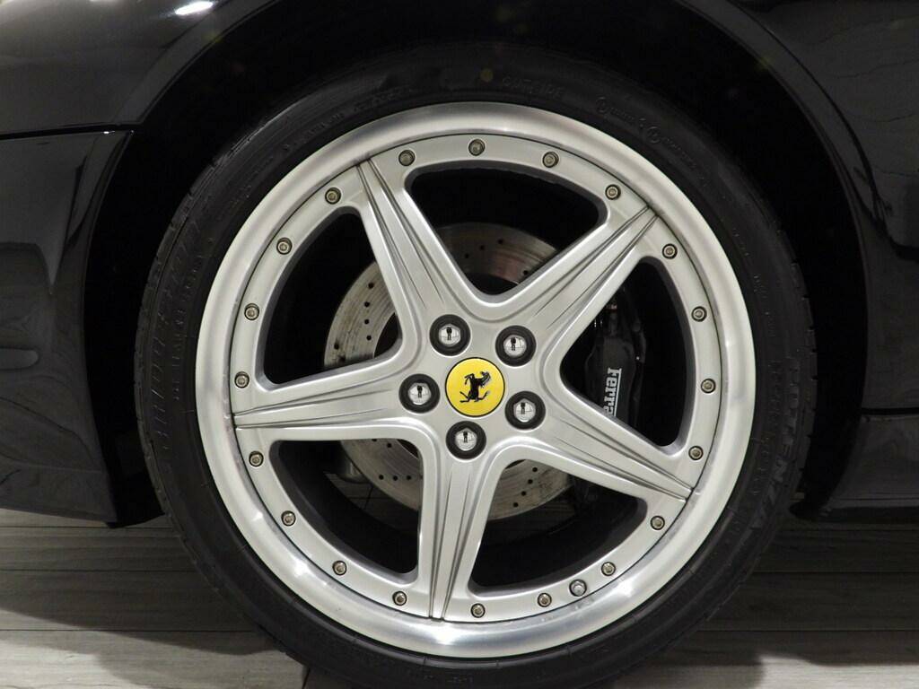 Electrically adjustable seats with memory function and beige 4208 full leather panels, black wool carpeting, three-spoke leather sports steering wheel with paddle shifters, yellow instrument panel, power windows, automatic climate control, electrically adjustable rearview mirrors, original Ferrari Becker AM/FM radio (with radio code), 19" split alloy wheels with black calipers and 255/35 ZR19 front and 305/30 ZR19 rear tires, fully opening electrochromic glass sunroof, ABS, airbags, Anti-theft