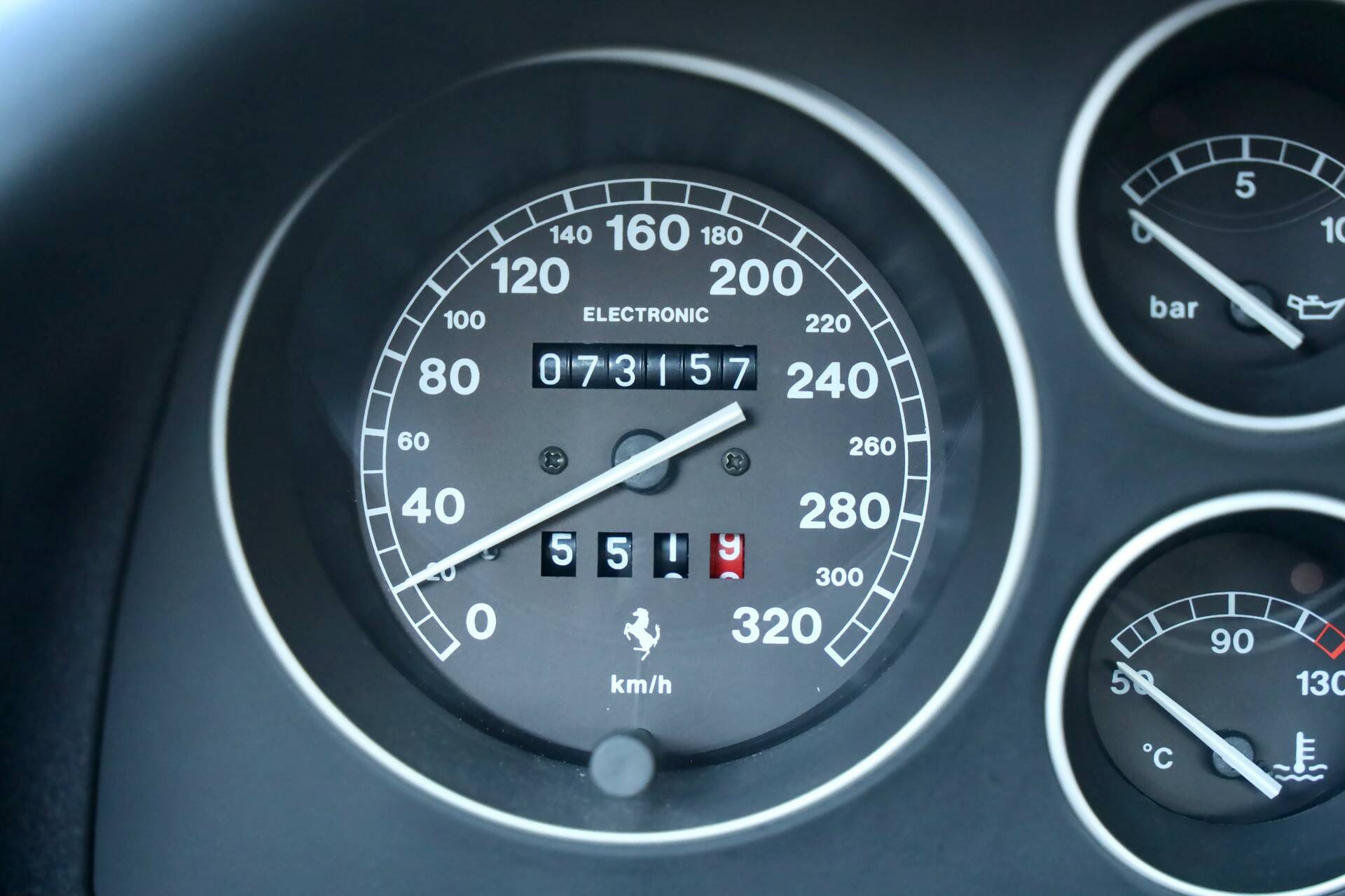 This car left the factory equipped with the coveted six-speed gated manual—the only proper choice for those who want to experience Ferrari in its purest form. Every shift feels mechanically precise, executed with the fluid accuracy unique to this era. The clutch is notably well-balanced: smooth and light enough for regular use, yet with just the right resistance to remind the driver that this is a true driver’s car. Steering is razor-sharp, direct, and communicative—exactly as one expects from a Ferrari honed at Fiorano, where it lapped faster than the then-dominant 512 TR.