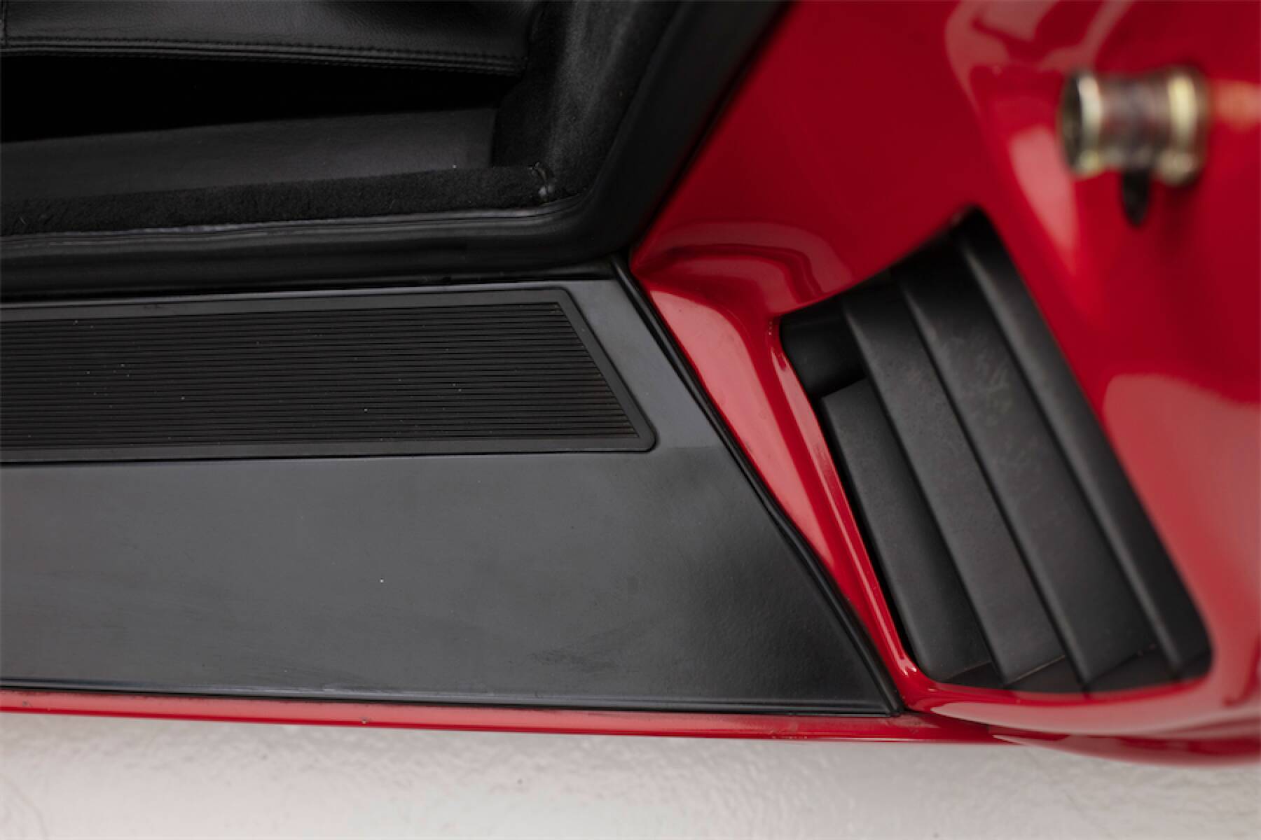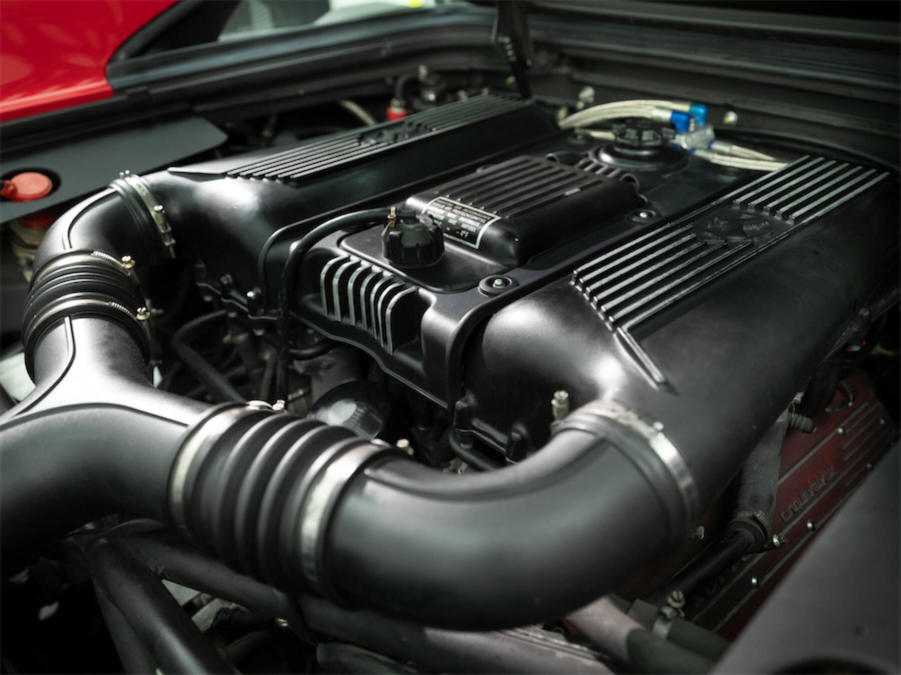 Designed by Pininfarina, the body showcases the classic Rosso Corsa finish, complemented by a removable body-color roof panel. The styling includes pop-up headlights, fog lights, flying buttress C-pillars, an integrated rear decklid spoiler, quad exhaust outlets, a vented engine cover, and strategically placed air intakes on the doors and rocker panels.