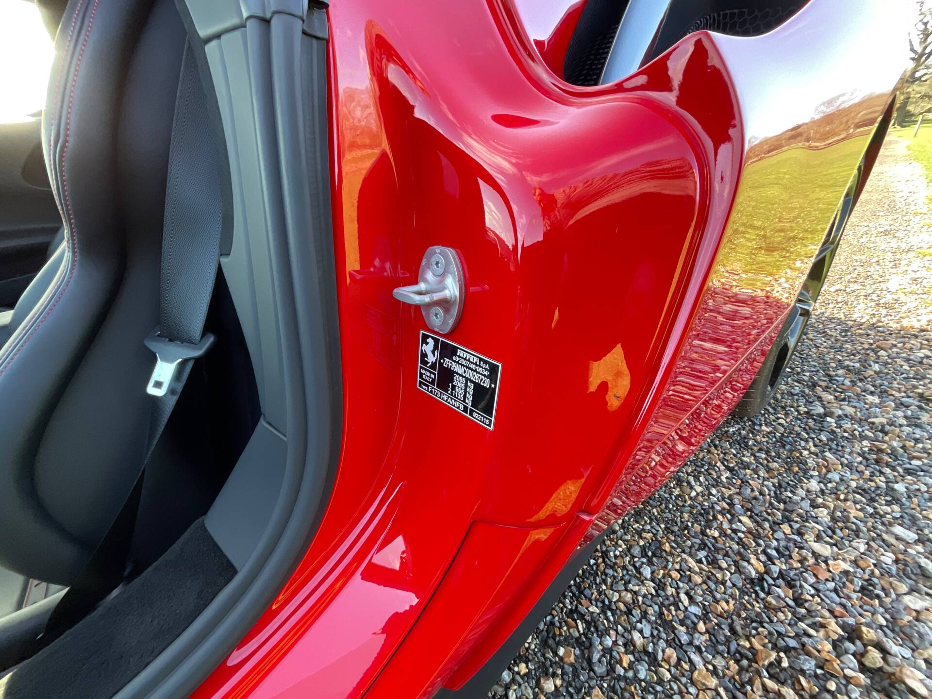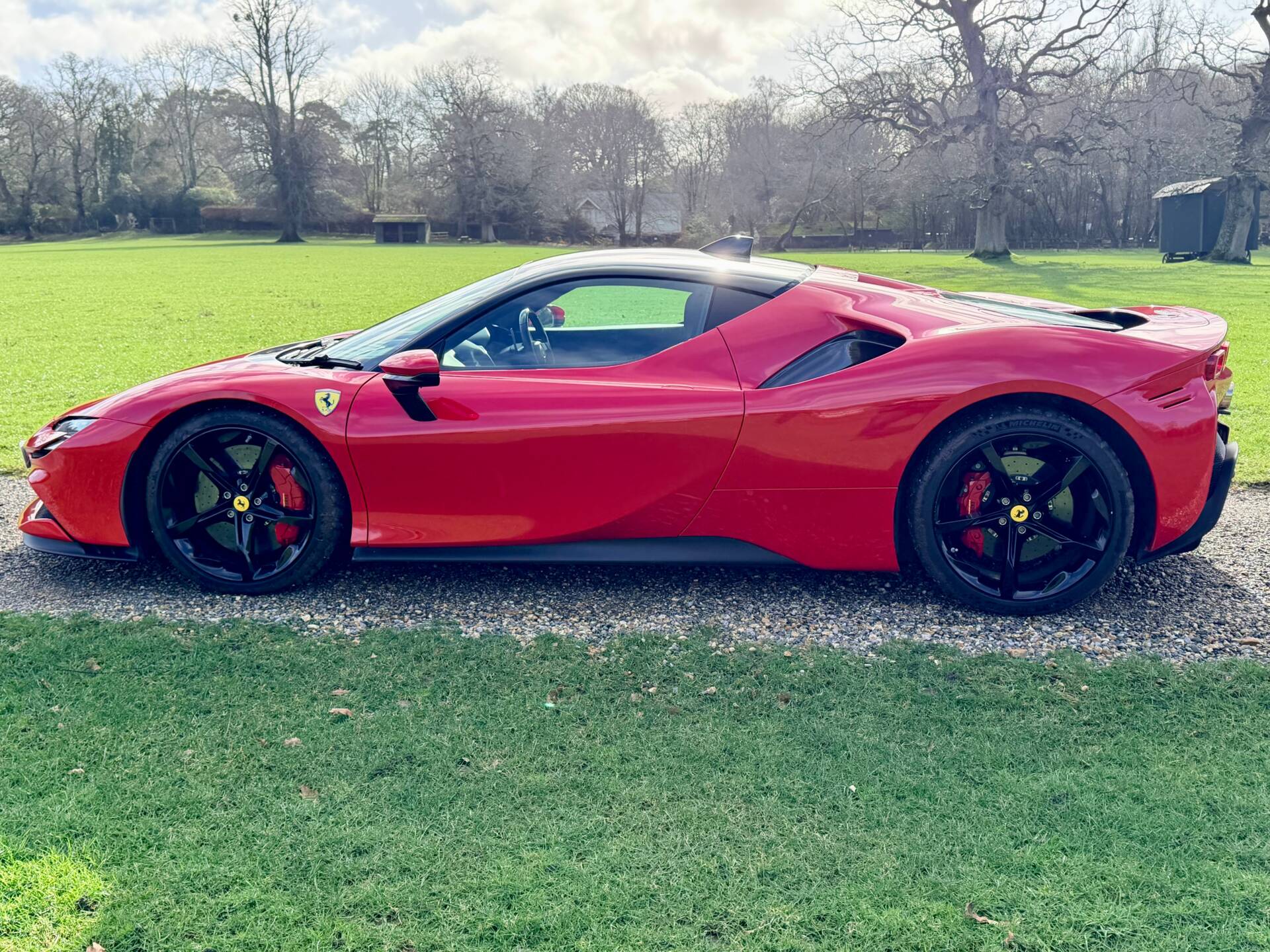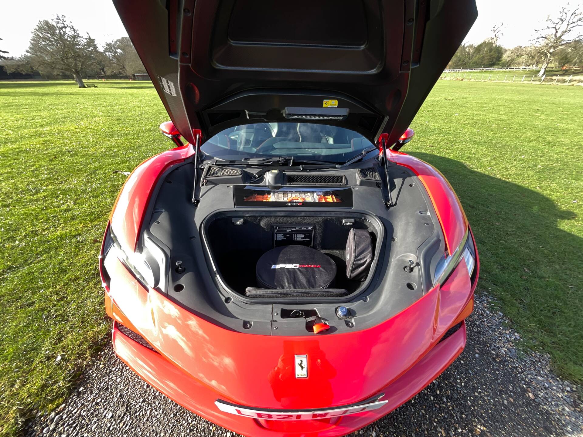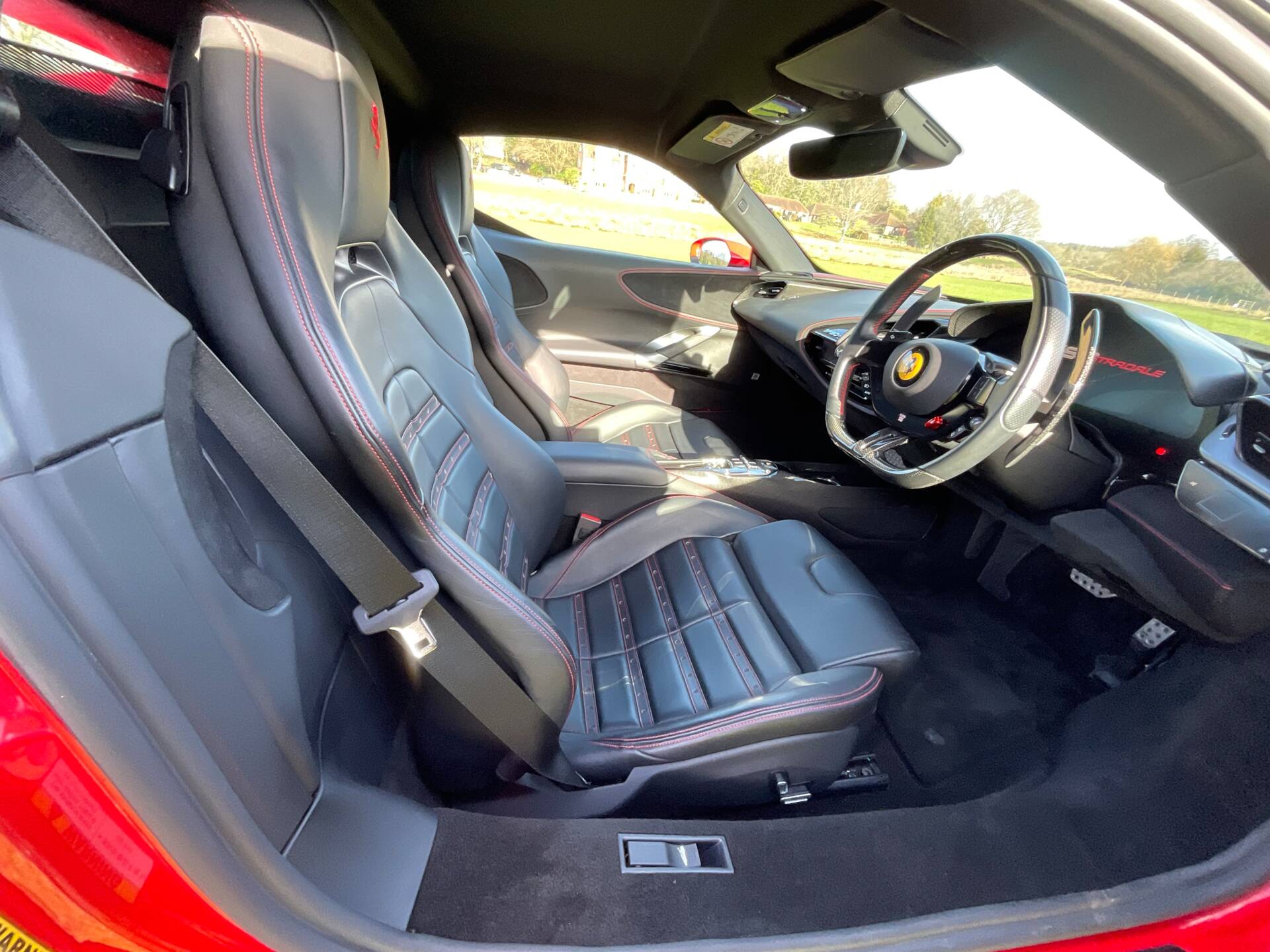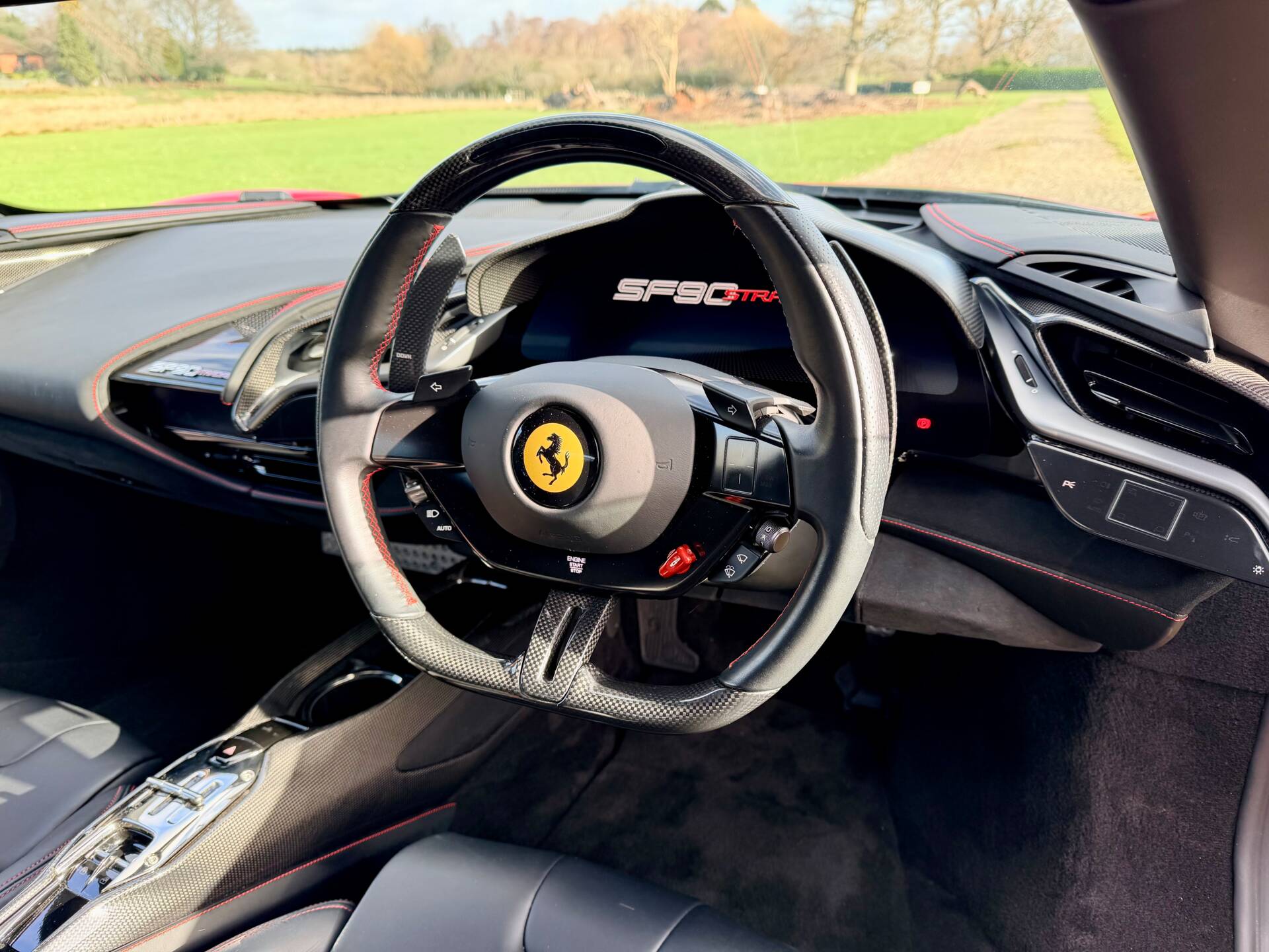 This SF90 has one previous owner and full history from new. The cabin perfectly blends advanced digital displays with Ferrari’s race-inspired carbon fibre trim, creating a cockpit that feels both futuristic and unmistakably Italian.