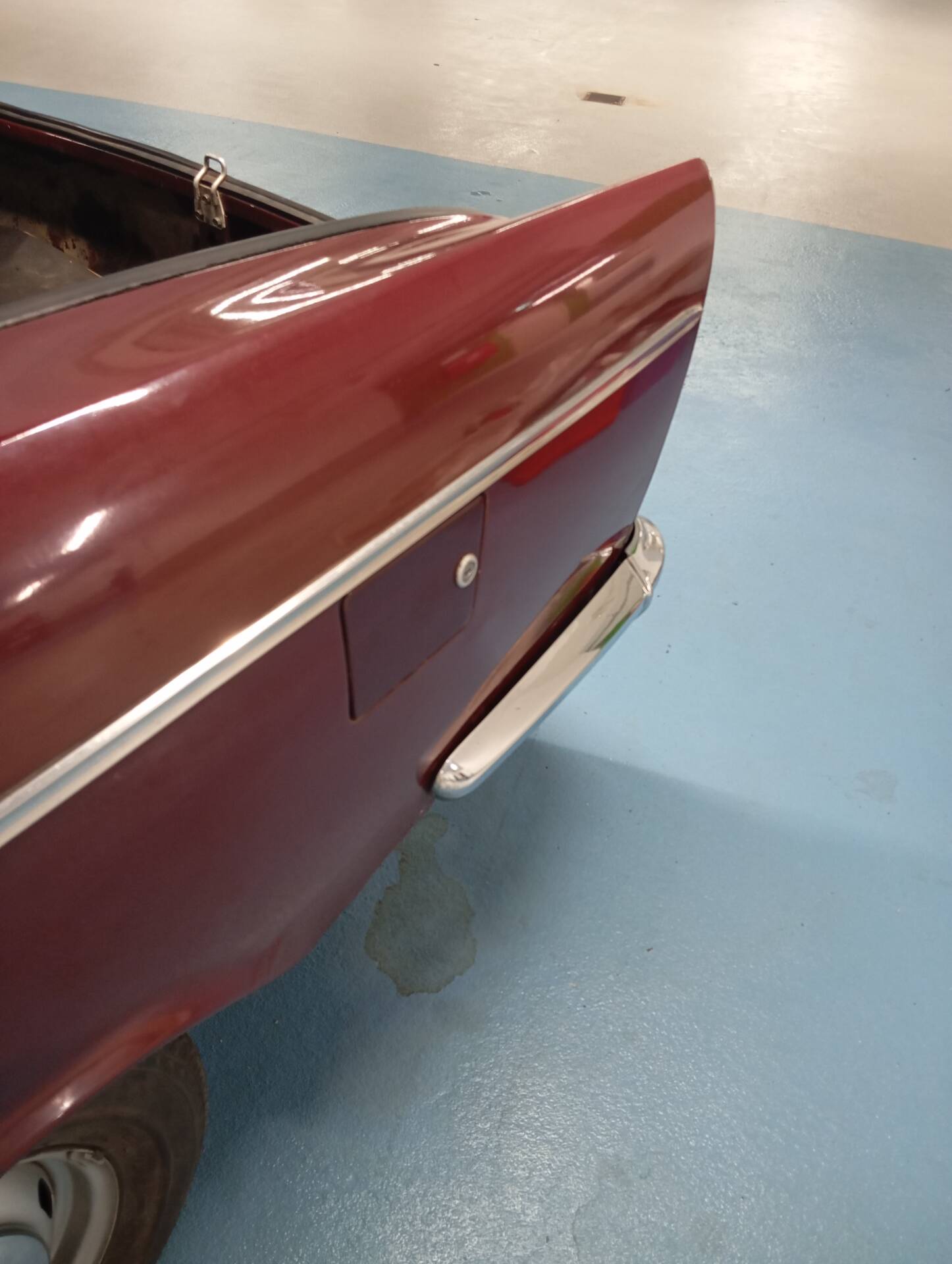 Der Wagen weist im unteren Karosseriebereich – besonders im Heck – starken Rostbefall auf und muss restauriert werden. Zudem ist die Fahrertür und der Holm auf der linken Seite etwas eingedrückt. Die Radkästen hinten weisen teilweise ebenfalls Rostbefall auf.