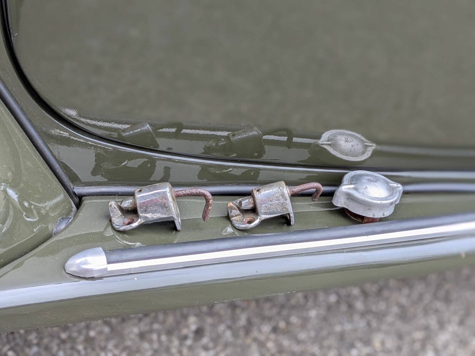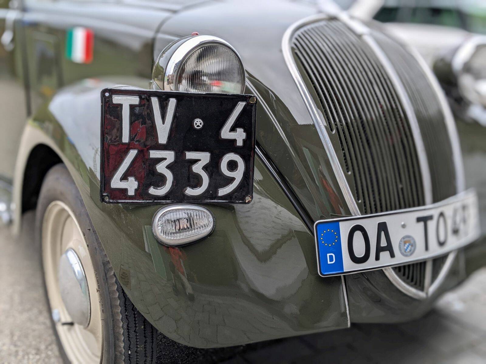 Der hier angebotene Fiat 500 B präsentiert sich als klassischer Vertreter seiner Baureihe mit authentischer Linienführung und liebevoll erhaltenen Details. Besonders hervorzuheben ist die individuelle Lösung der Kennzeichen- und Rücklichthalter, die über einen separaten Bügel zwischen Kotflügel und Karosserie geführt werden. Diese Konstruktion vermeidet zusätzliche Bohrungen und damit potenzielle Korrosionsstellen – ein Detail, das sowohl funktional als auch historisch interessant ist. Die Halter wurden aufgrund materialbedingter Schwächen neu gefertigt, die Originalteile sind jedoch weiterhin vorhanden.