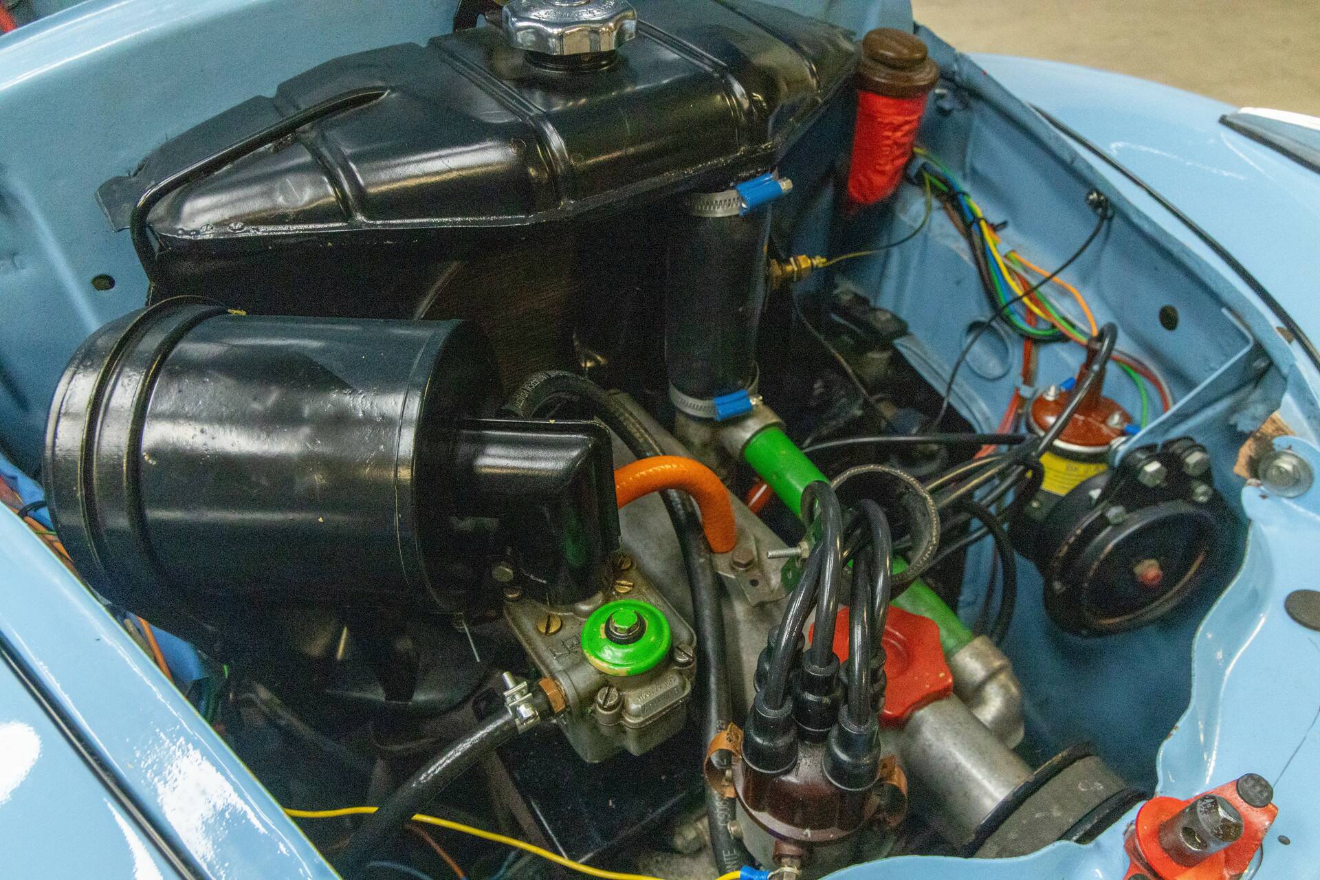 This example comes from the very first production year of the 500C and is finished in the elegant shade of Acqua Blu, paired with a brown fabric folding roof. A color combination that perfectly suits the car’s character: light, friendly, and timeless. The bodywork was restored and repainted in the past, resulting in a neat, well-presented finish. Not an over-restored museum piece, but an honest classic that invites use and further refinement.