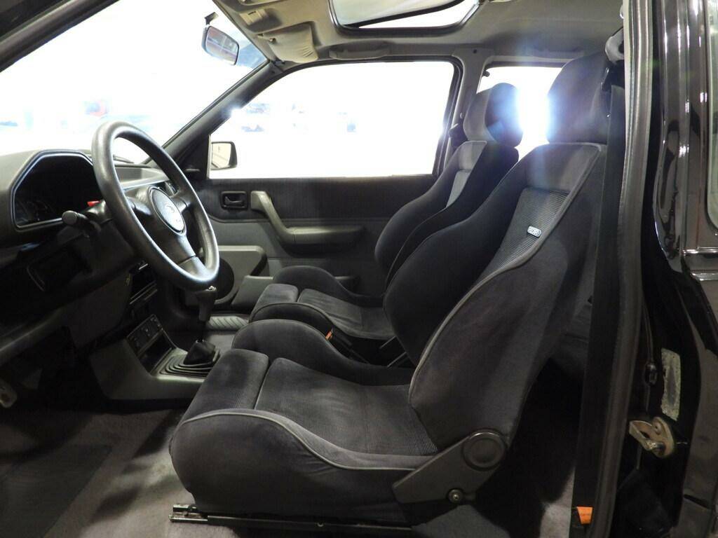 Sedili sportivi Recaro e pannelli in velluto grigio e tessuto specifico di modello realizzato da Benetton, Volante a tre razze in pelle con logo ”turbo” cucito nel centro, Vetri elettrici, Doppio specchio esterno a regolazione manuale interna, Tetto apribile manuale in