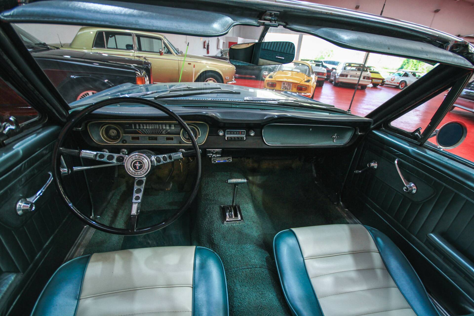 Un clásico entre los clásicos. Este espectacular Ford Mustang Cabrio combina la potencia bruta del legendario motor V8 5.0 con una elegancia atemporal. Su imponente color azul verdoso metalizado, en contraste con el interior claro y la capota beige, crea una presencia irresistible tanto al sol como bajo las luces de la ciudad.