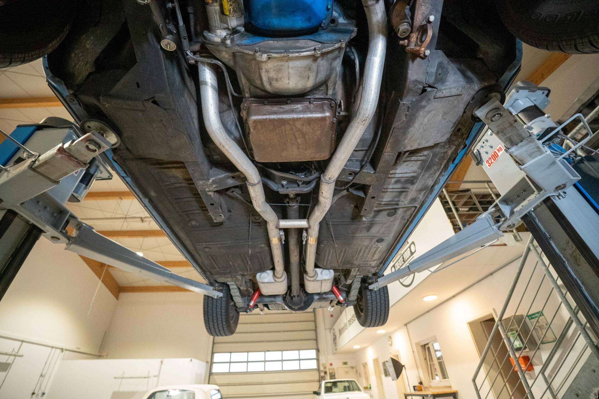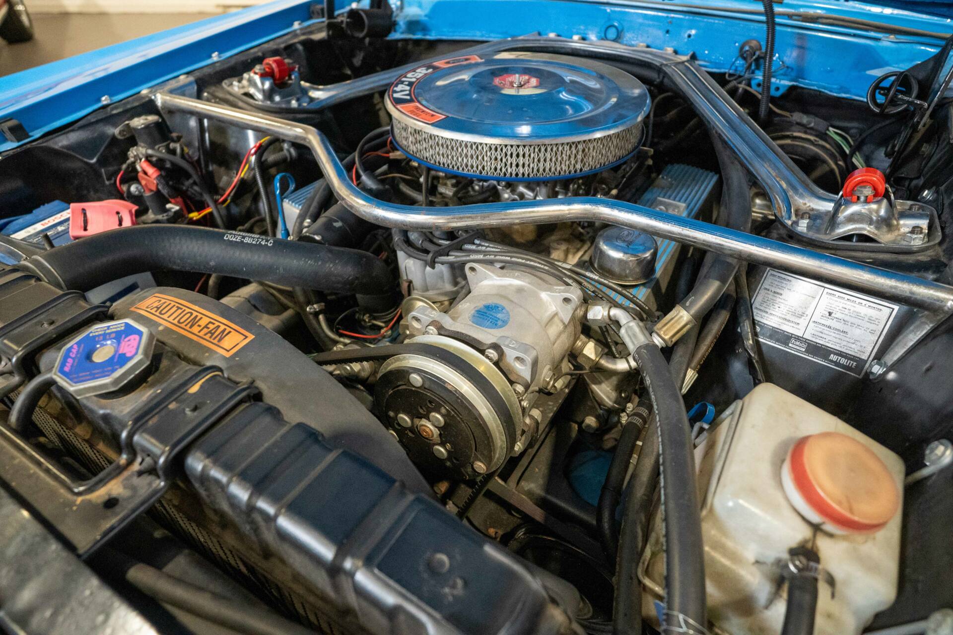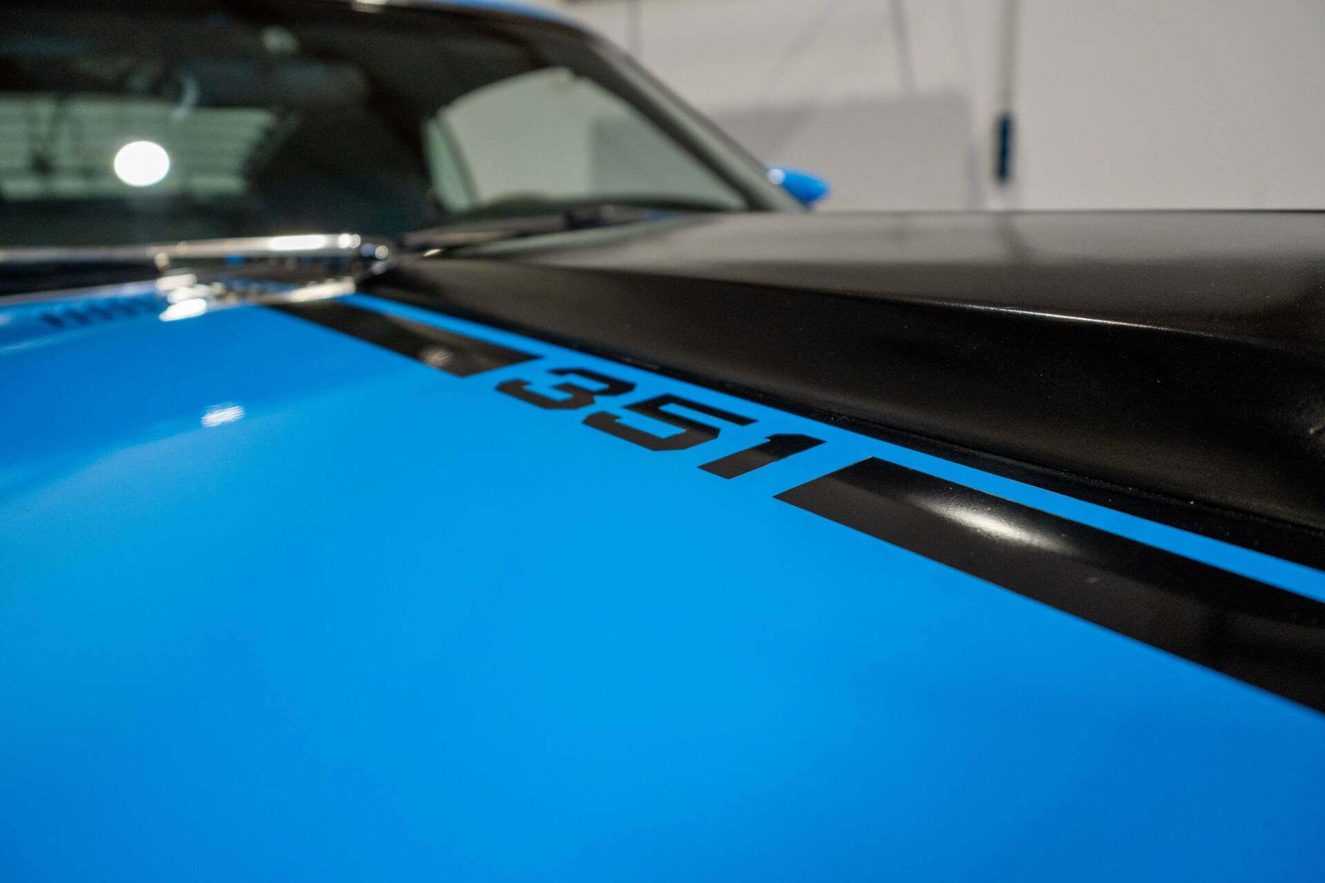 Der Wagen verfügt über den originalen 351 cui (5,7 Liter) Cleveland V8-Motor, der kraftvoll läuft und über die Flowmaster-Auspuffanlage den typischen, satten V8-Sound liefert.