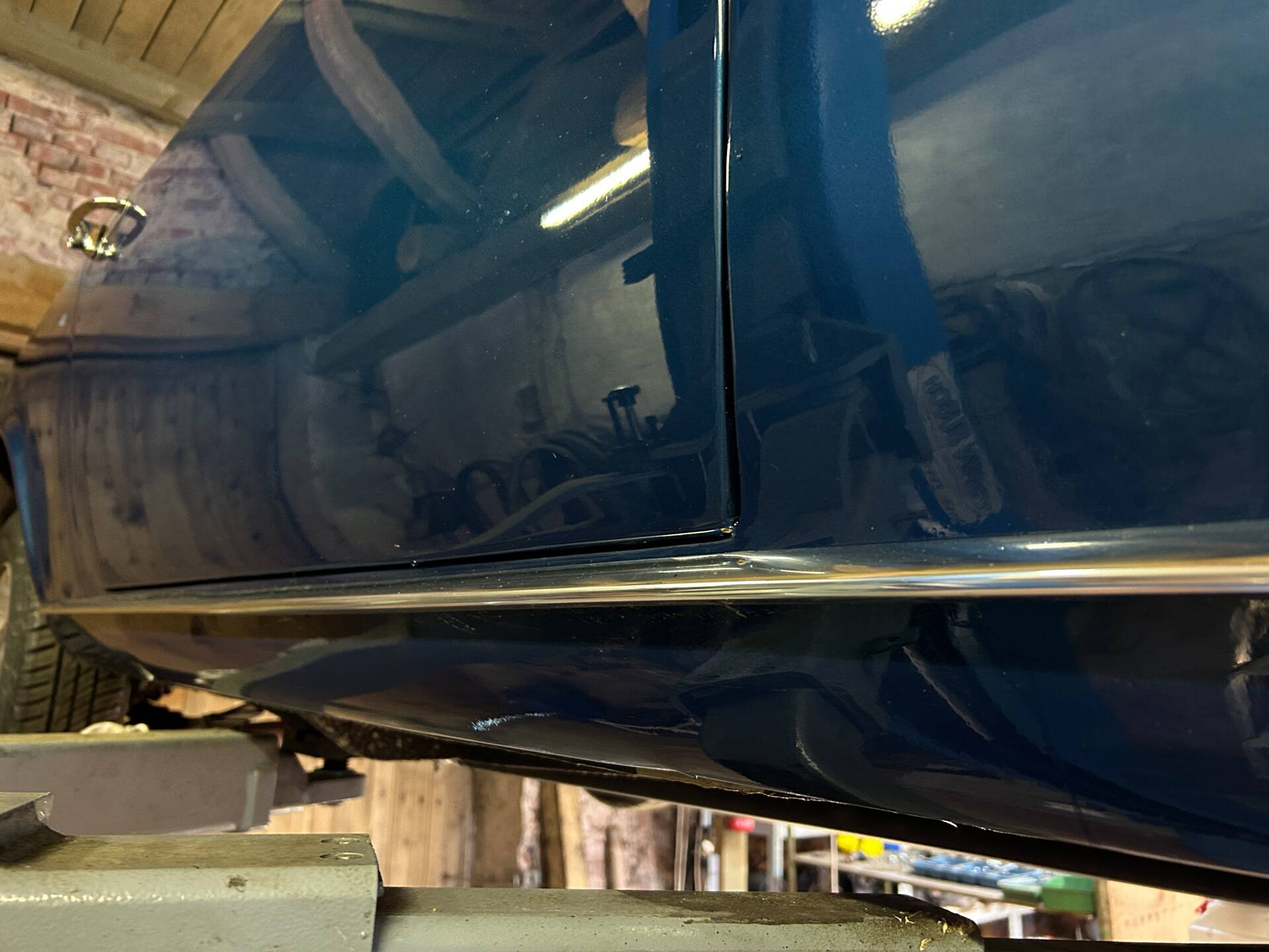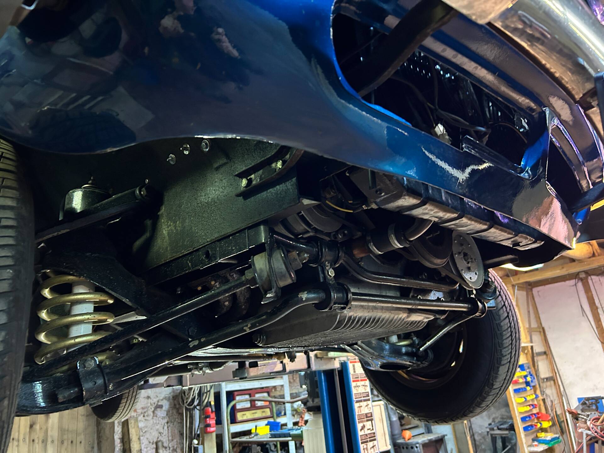 Es wurden viele Neuteile verbaut (Chrom, Servopumpe, Kühler), jedoch sind noch einige Restarbeiten zu erledigen (Bremsen entlüften, Interieurarbeiten, Bremslichter und Drehzahlmesser anschließen).