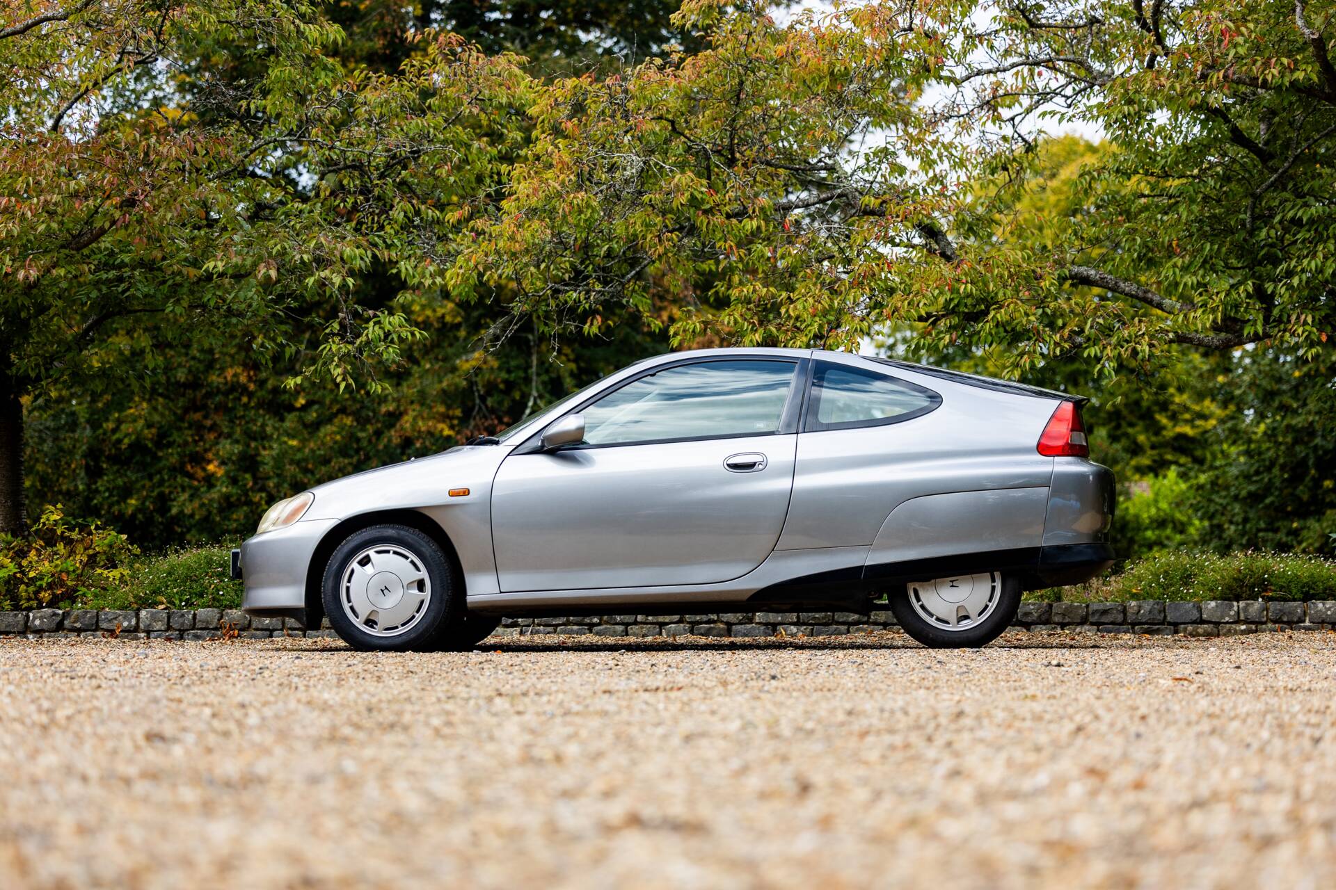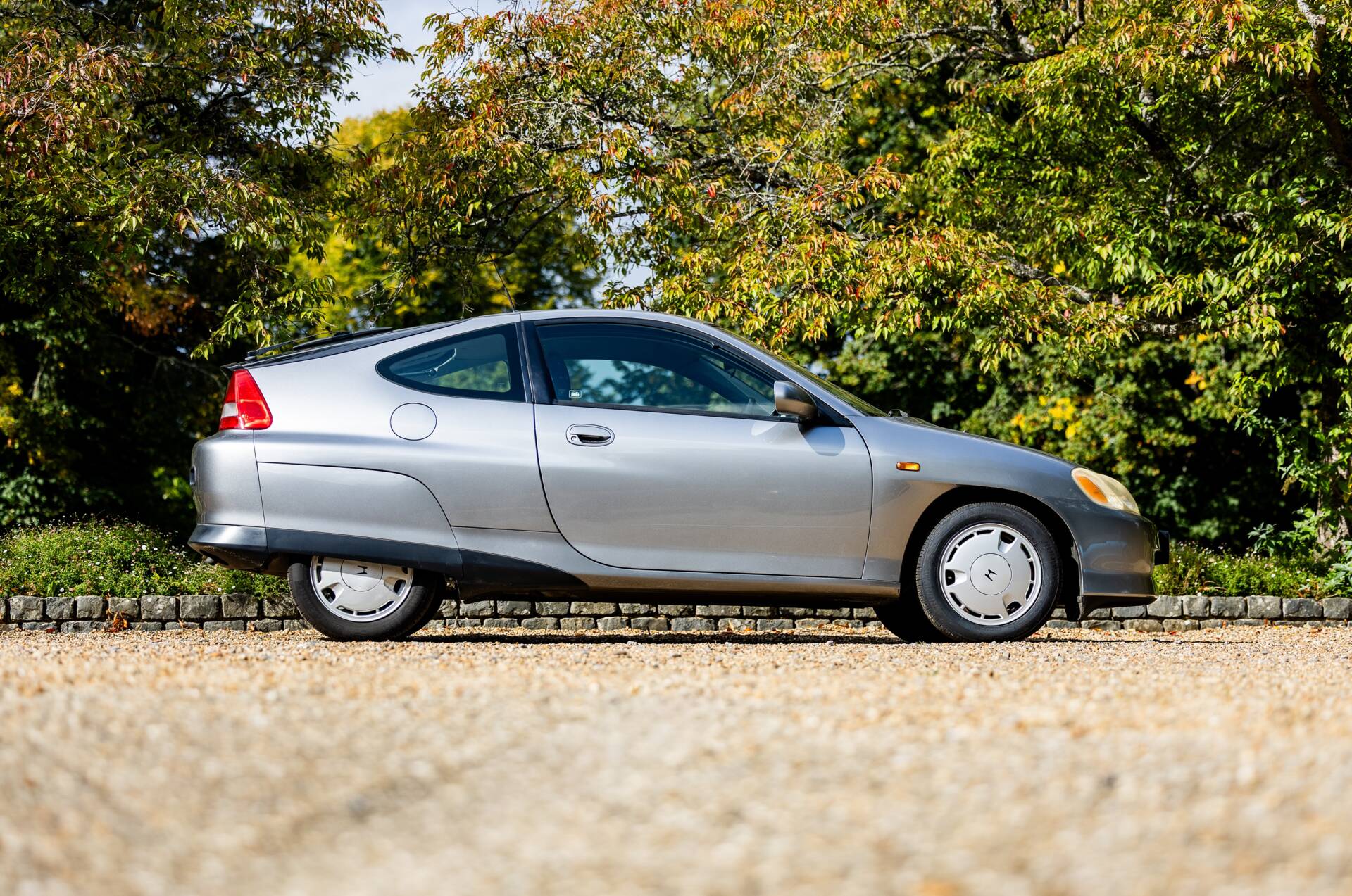 First registered on 20th March 2001, this low-mileage, manual UK-supplied Honda Insight is finished in Silverstone Silver, it has been cherished and presents in very good condition inside and out. Delightfully original, the dashboard, with its quirky LED design, works well and the door cards, carpets and headlining are very good. It features a pair of 'Honda Insight ACCESS' genuine overmats and is supplied with supporting history, documents and keys along with a comprehensive service history seen until its recent time forming part of an eclectic collection. The car has been warm garage stored, continual charge on both sets batteries, regularly started and benefitted from a recent minor service and MoT test certificate until June 2026 with two new recent front tyres.
