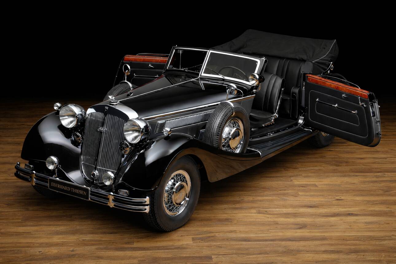 Following its restoration, the 853 Sport Cabriolet was sold to one of Germany’s most renowned collectors. Many years later, the Horch passed to another collector in Northern Europe. In early 2016, Eberhard Thiesen repurchased the excellently preserved car and sold it to a collector in Northern Germany. In 2019, the Horch – again via Eberhard Thiesen – came into the hands of its current owner in southern Germany, who added it to his collection of various Mercedes supercharged models.