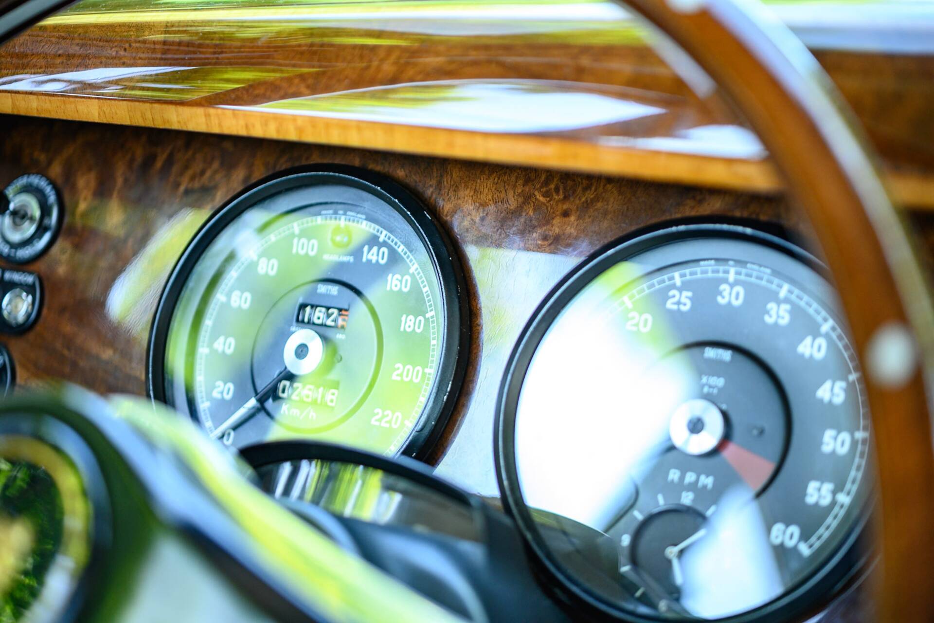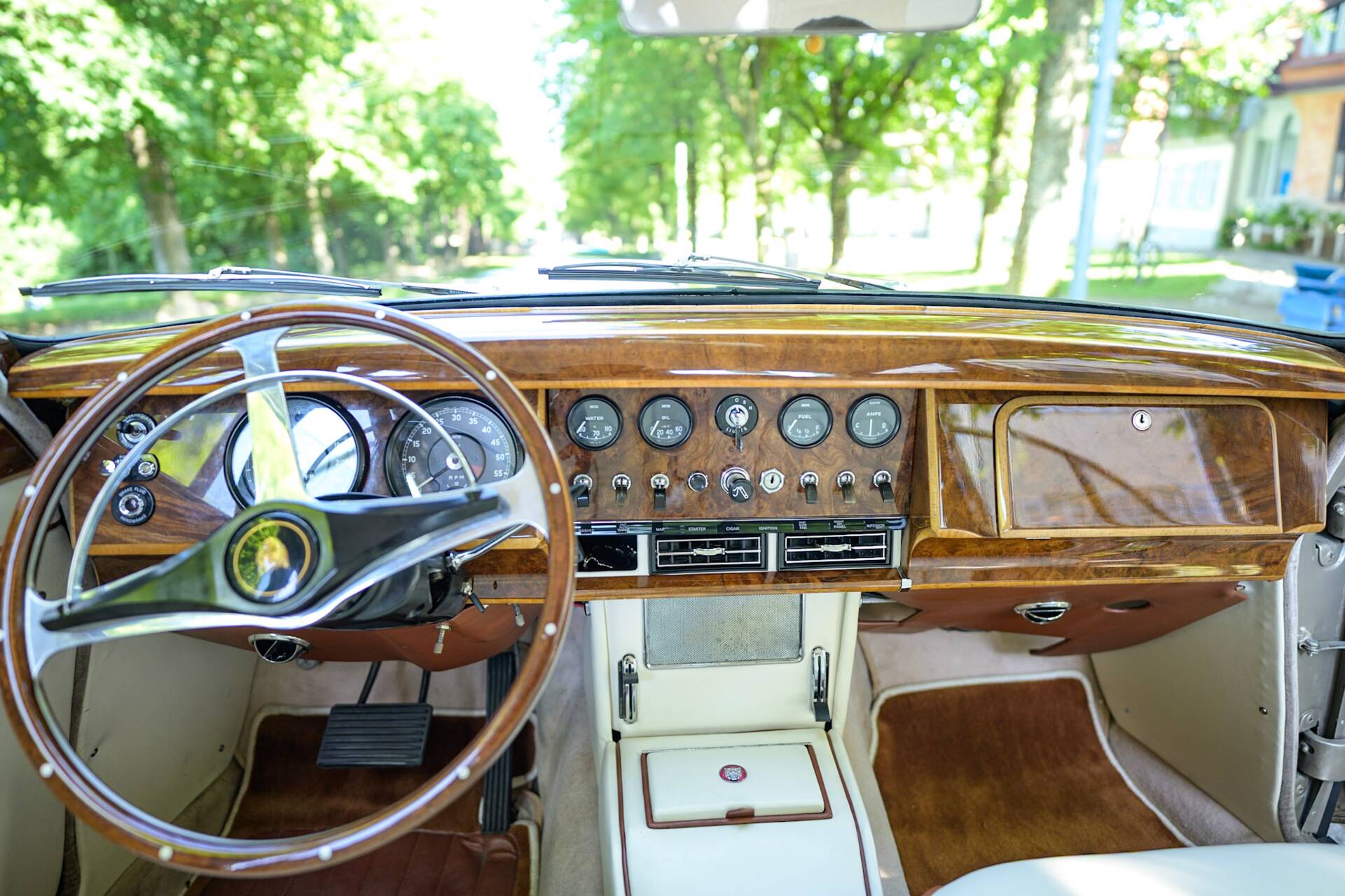 Instrumententafel ebenfalls mit Furnier verkleidet (anstatt dem schwarzem Kunstleder vom Werk)