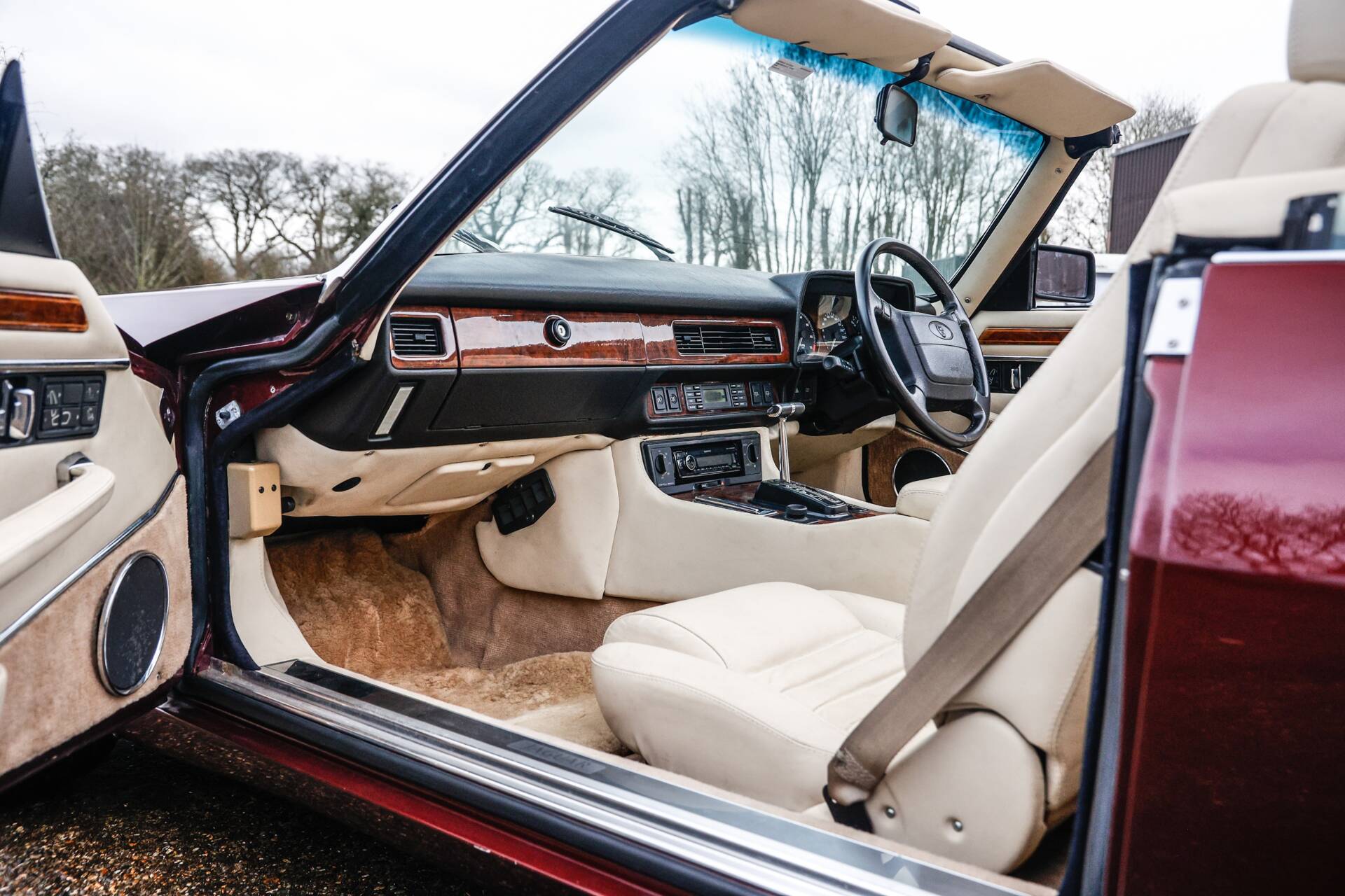 This particular example was first registered on 19th January 1993 in Hong Kong and was acquired there by the current vendor in 2016. Subsequently, the car was entrusted to KWE Ltd for an extensive programme of refurbishment and enhancement. Work carried out included a repaint in Regency Red, the installation of KWE Stage 1 suspension, and comprehensive renewal or upgrading of the brakes and steering systems. The V12 engine received an intensive service, while both the automatic transmission and differential were rebuilt. Electrical systems were largely renewed, alongside the fuel system and air conditioning. The hood, carpets, and leather upholstery were replaced or refurbished, and the wood trim was restored. A stainless-steel exhaust system was also fitted. In excess of £83,000 has been invested by the vendor to ensure the car presents exceptionally well and performs with mechanical reliability. This XJS Convertible represents a superb example, offered at what appears to be a realistic estimate given its condition and the significant expenditure incurred. Consigned by Stewart Banks.