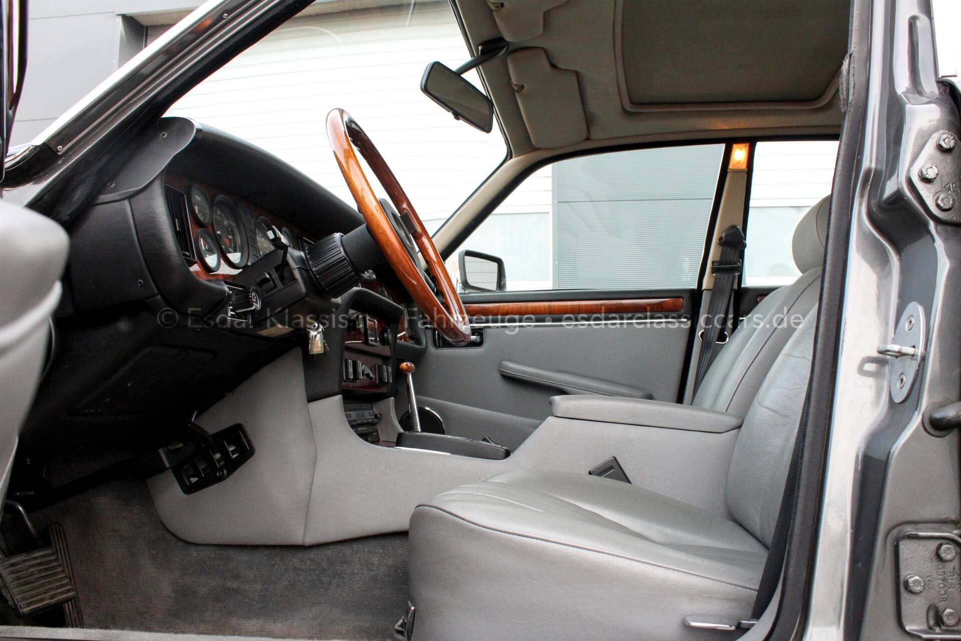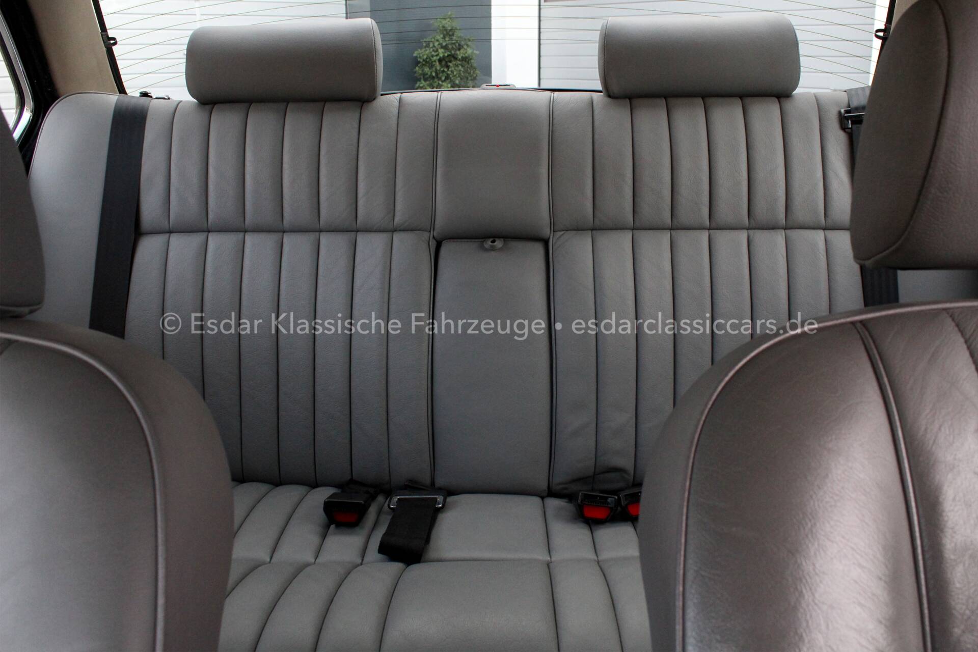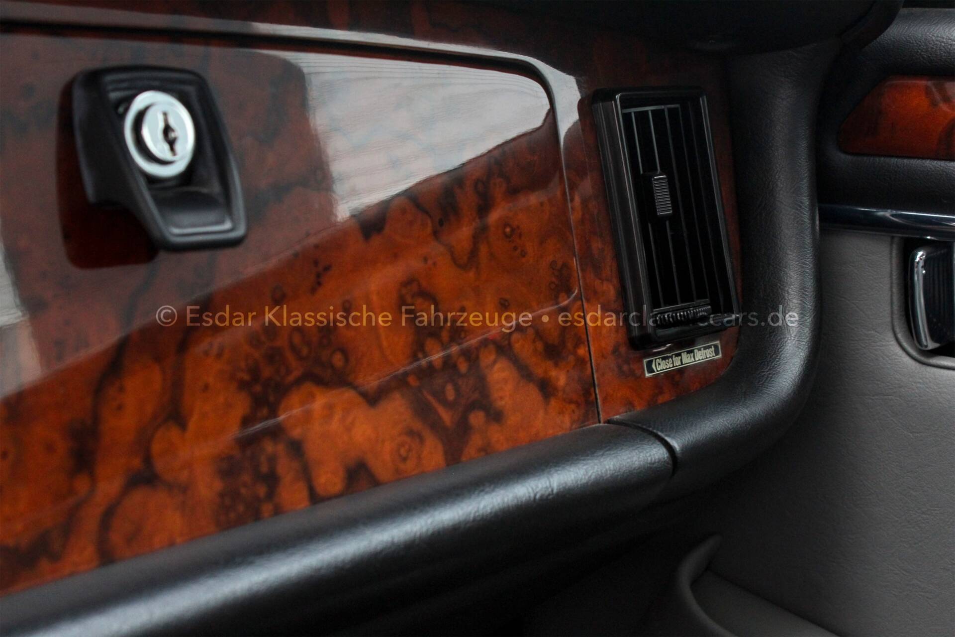 Der Innenraum dieses Jaguar Sovereign ist ein Paradebeispiel für britische Handwerkskunst und luxuriöse Ausstattung. Die hellgrauen Connolly-Ledersitze bieten nicht nur erstklassigen Sitzkomfort, sondern harmonieren perfekt mit den edlen Walnusswurzelholz-Verkleidungen, die das Armaturenbrett und die Türtafeln zieren. Jedes Detail ist auf höchste Qualität ausgelegt: Die bequeme Mittelarmlehne im Fond, die samtweichen Teppiche und die sorgfältige Verarbeitung der Materialien sorgen für ein Ambiente, das selbst modernen Luxuslimousinen noch immer in nichts nachsteht. Elektrische Fensterheber, eine durchdachte Lüftungsanlage und zahlreiche weitere Komfortdetails machen jede Fahrt zu einem entspannten Erlebnis.