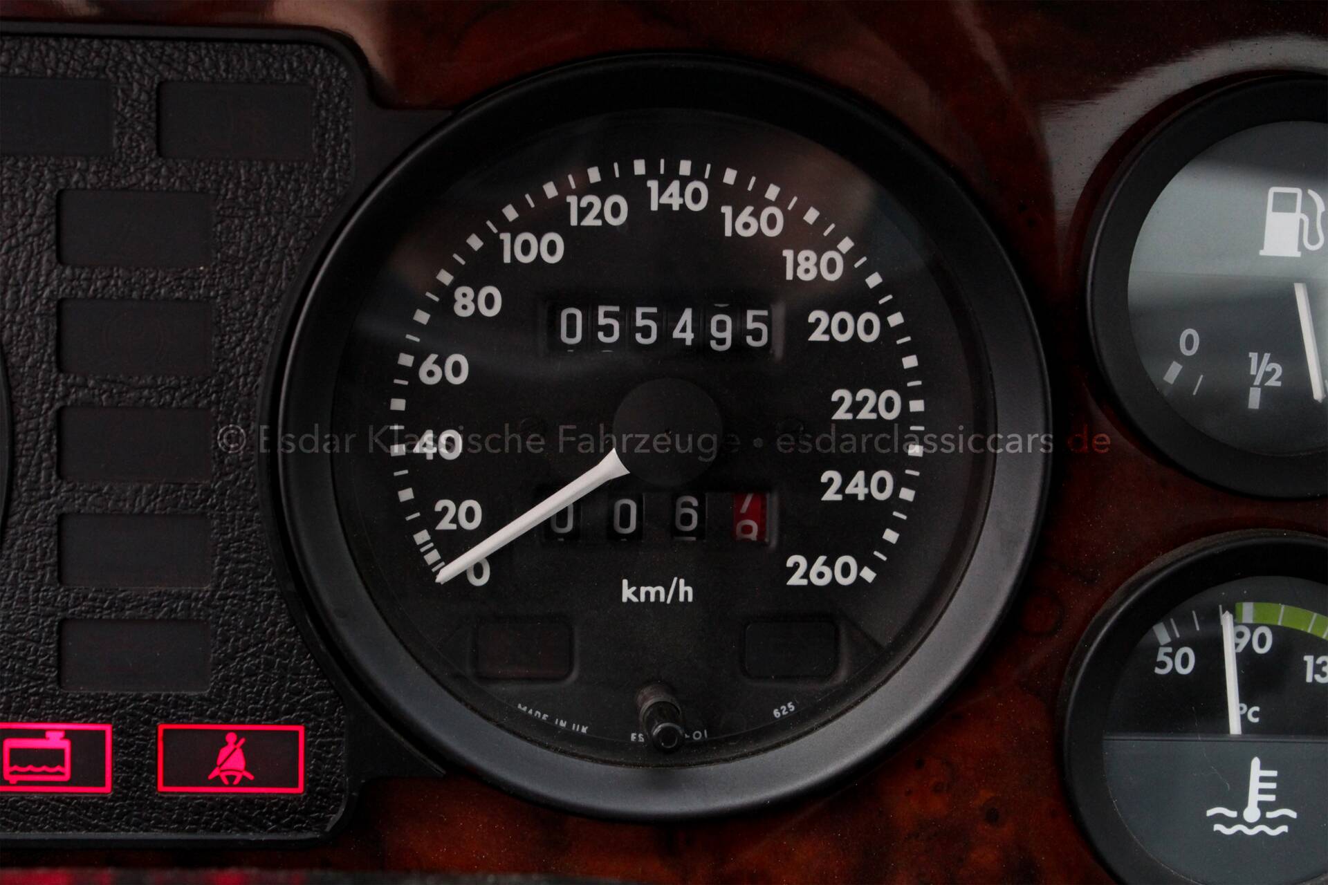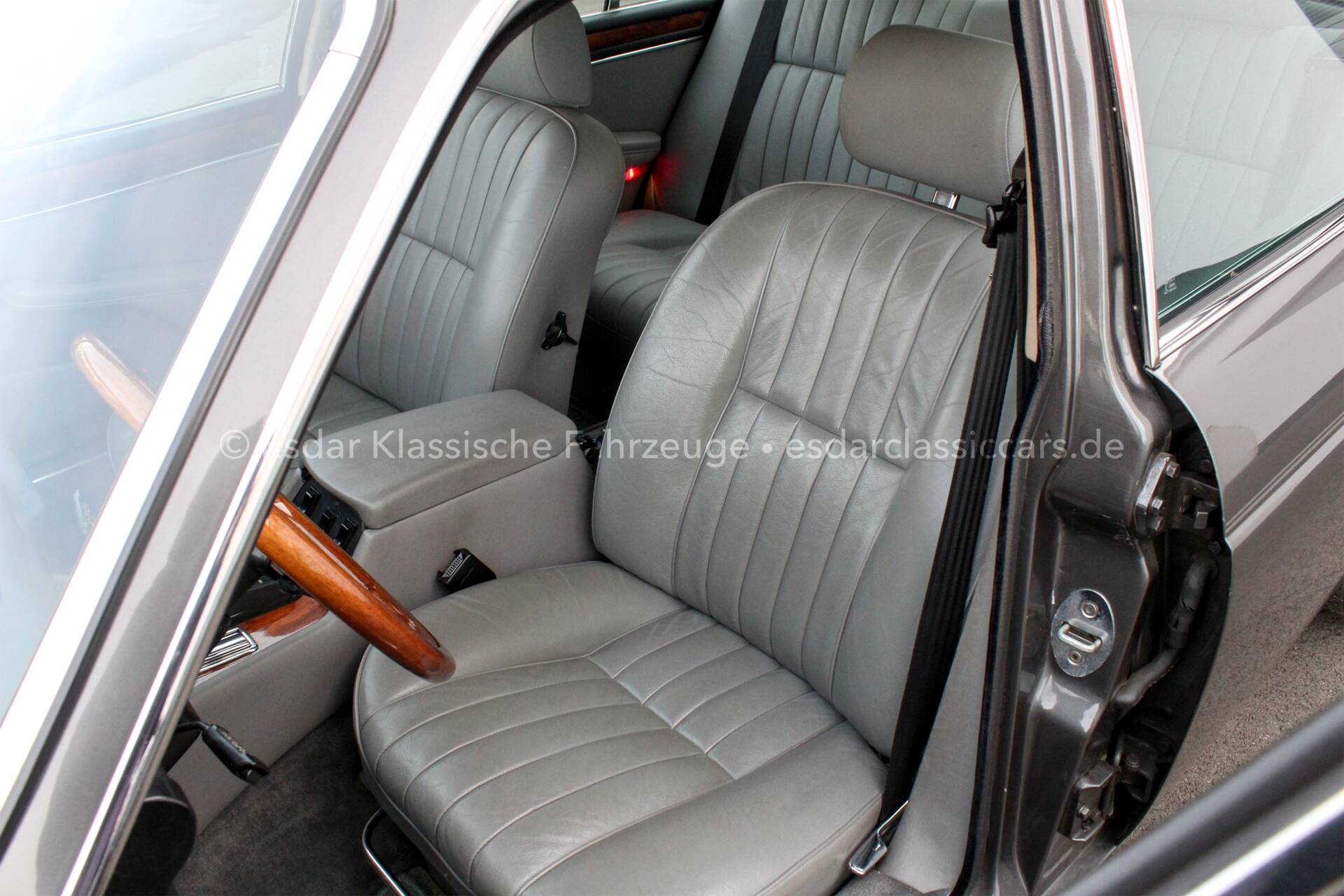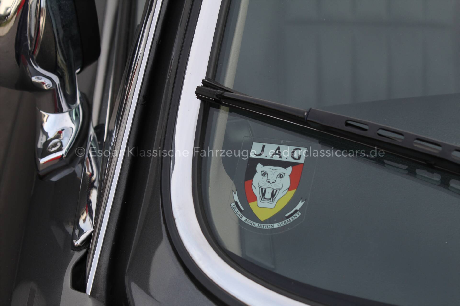 Der Innenraum dieses Jaguar Sovereign ist ein Paradebeispiel für britische Handwerkskunst und luxuriöse Ausstattung. Die hellgrauen Connolly-Ledersitze bieten nicht nur erstklassigen Sitzkomfort, sondern harmonieren perfekt mit den edlen Walnusswurzelholz-Verkleidungen, die das Armaturenbrett und die Türtafeln zieren. Jedes Detail ist auf höchste Qualität ausgelegt: Die bequeme Mittelarmlehne im Fond, die samtweichen Teppiche und die sorgfältige Verarbeitung der Materialien sorgen für ein Ambiente, das selbst modernen Luxuslimousinen noch immer in nichts nachsteht. Elektrische Fensterheber, eine durchdachte Lüftungsanlage und zahlreiche weitere Komfortdetails machen jede Fahrt zu einem entspannten Erlebnis.