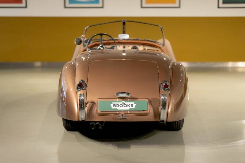 Deze Jaguar XK120 onderscheidt zich door zijn heldere en goed gedocumenteerde achtergrond. In de afgelopen jaren is de auto zorgvuldig cosmetisch verfijnd bij Brooks Classics, met als uitgangspunt behoud van originaliteit, correcte details en een hoogwaardige presentatie.