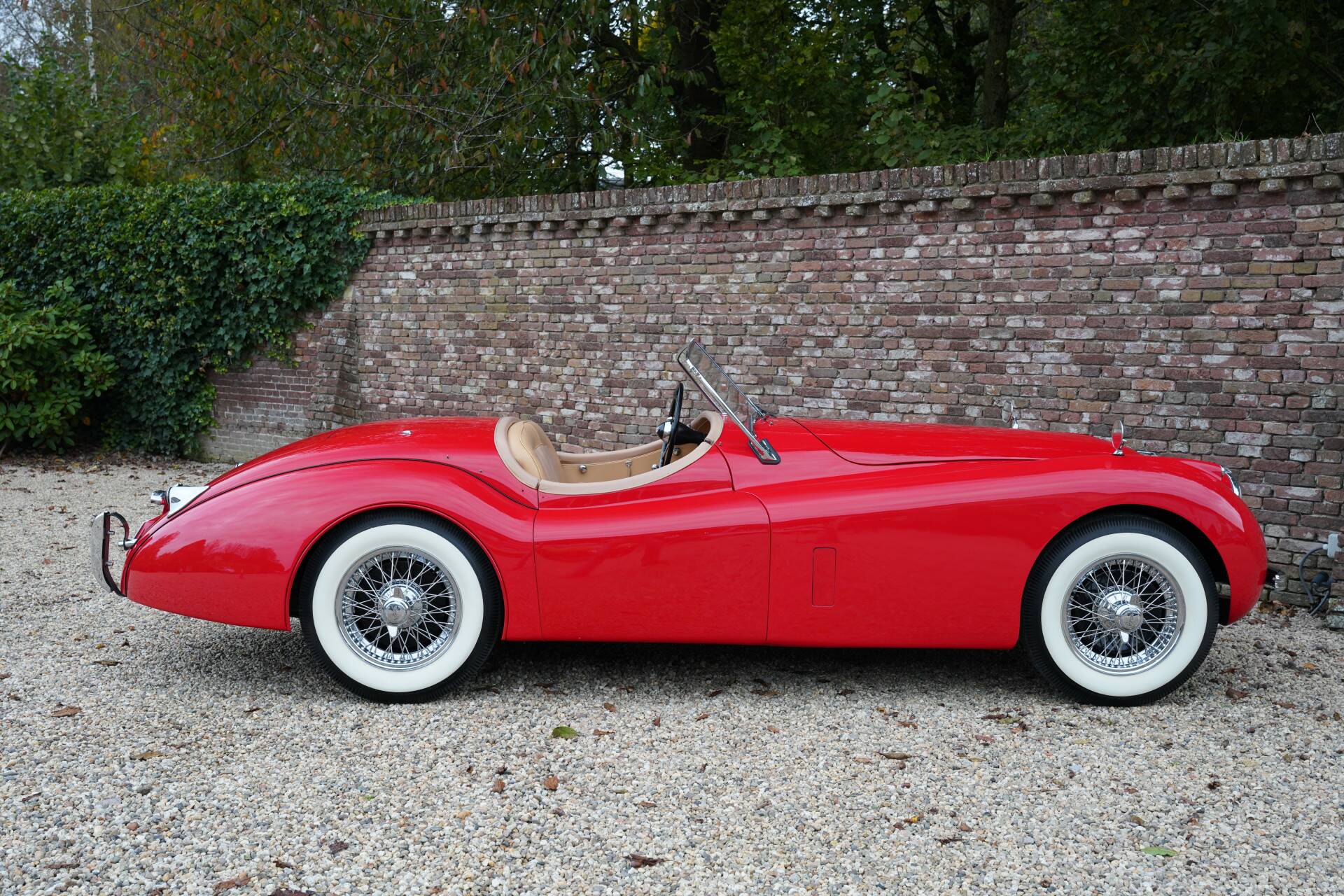 Jaguar XK120 OTS Roadster PRICE REDUCTION! Restored Roadster from final year of production, Recent major technical maintenance, "Matching numbers" according to chassis plate, Colorscheme in Red over biscuit leather - periodically correct, "Body off" restored to original XK-specification