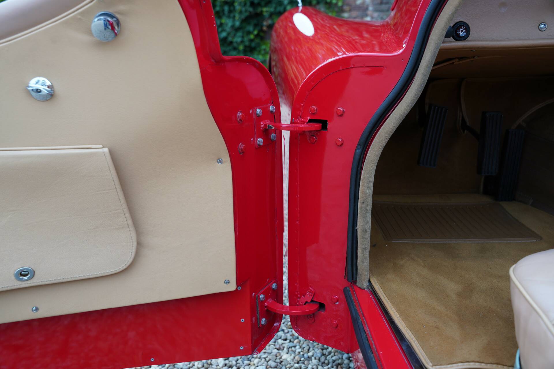 This Jaguar XK120 Roadster has been carefully restored with respect for its original specifications. The car has recently undergone extensive technical maintenance, evident in its excellent mechanical condition. The deep red exterior color combined with the beige interior gives the car a timeless look that stays true to the historical character of the XK120. Moreover, this beautiful Jaguar is matching numbers, which further enhances the authenticity of this XK. This Jaguar comes with recent invoices that carefully show the maintenance work carried out.