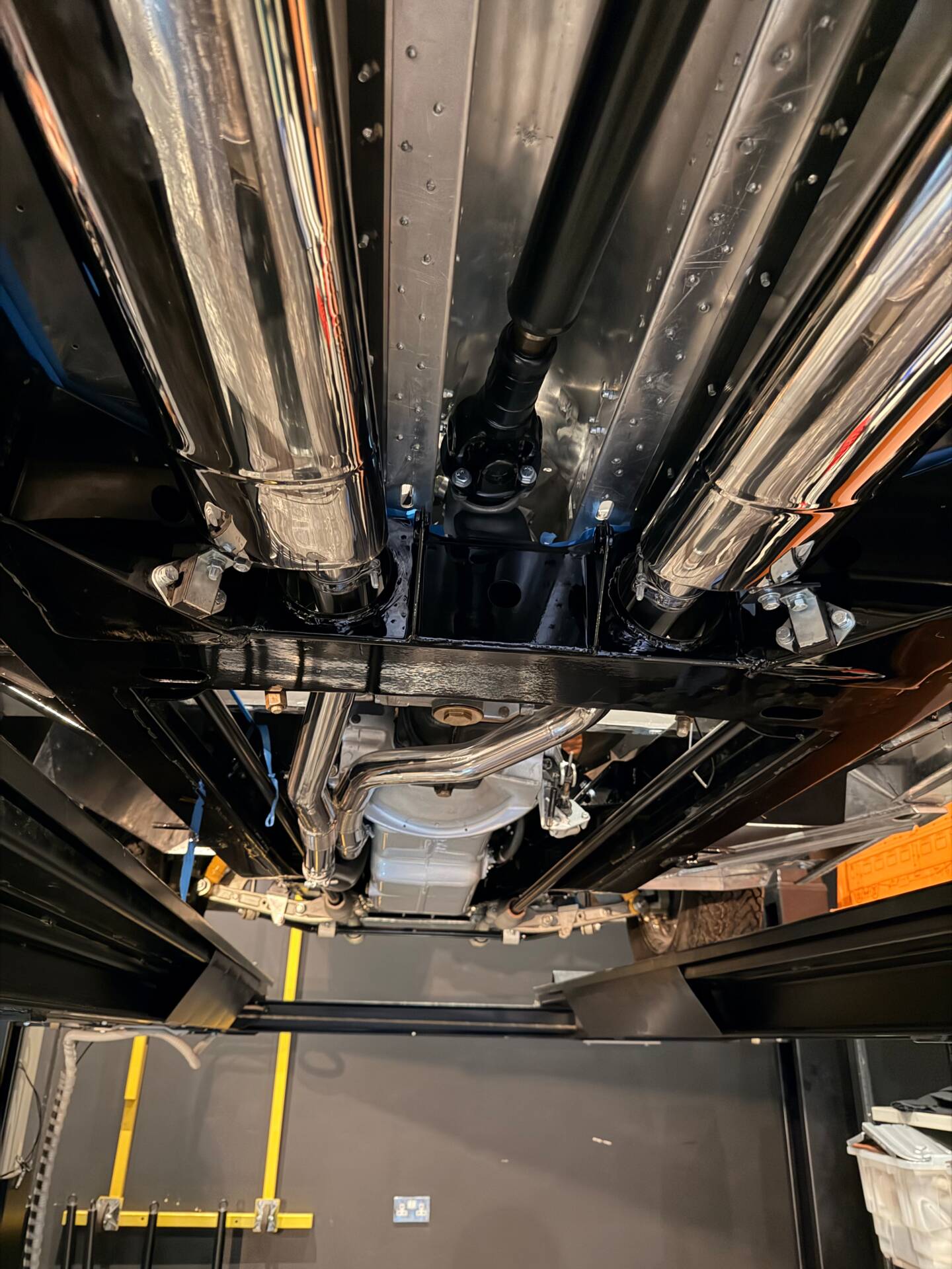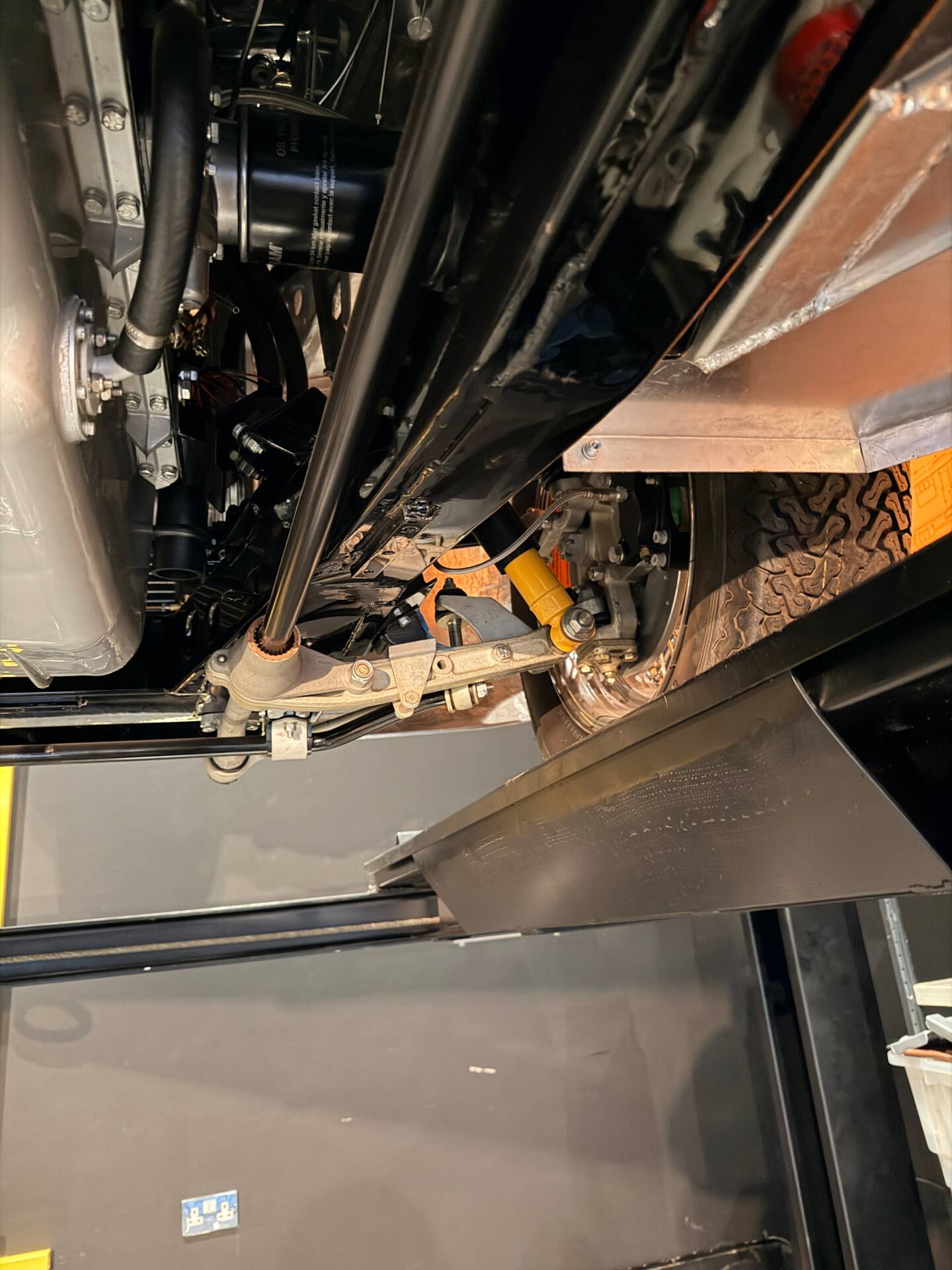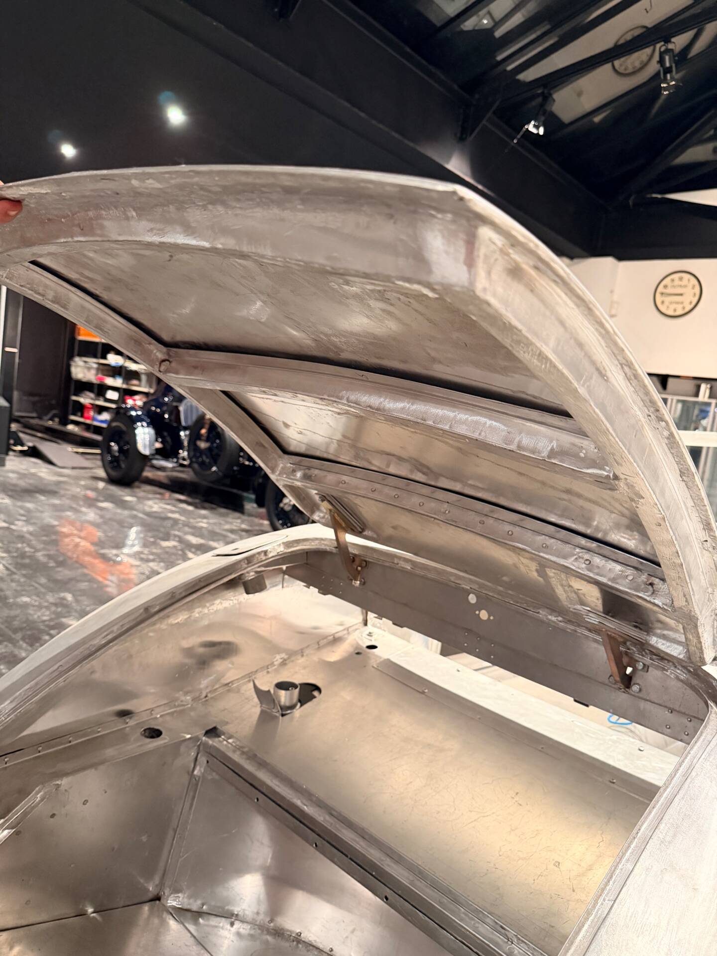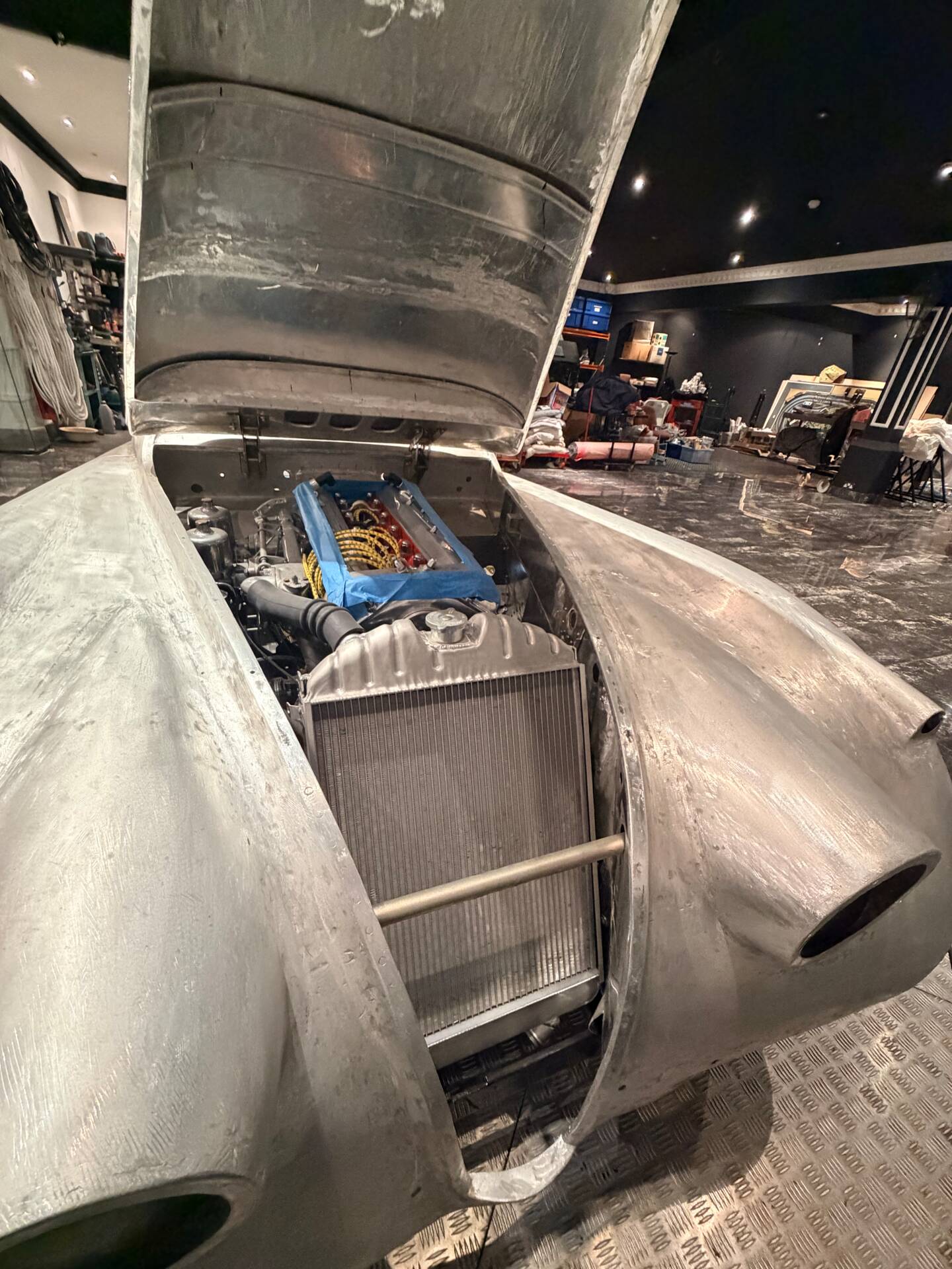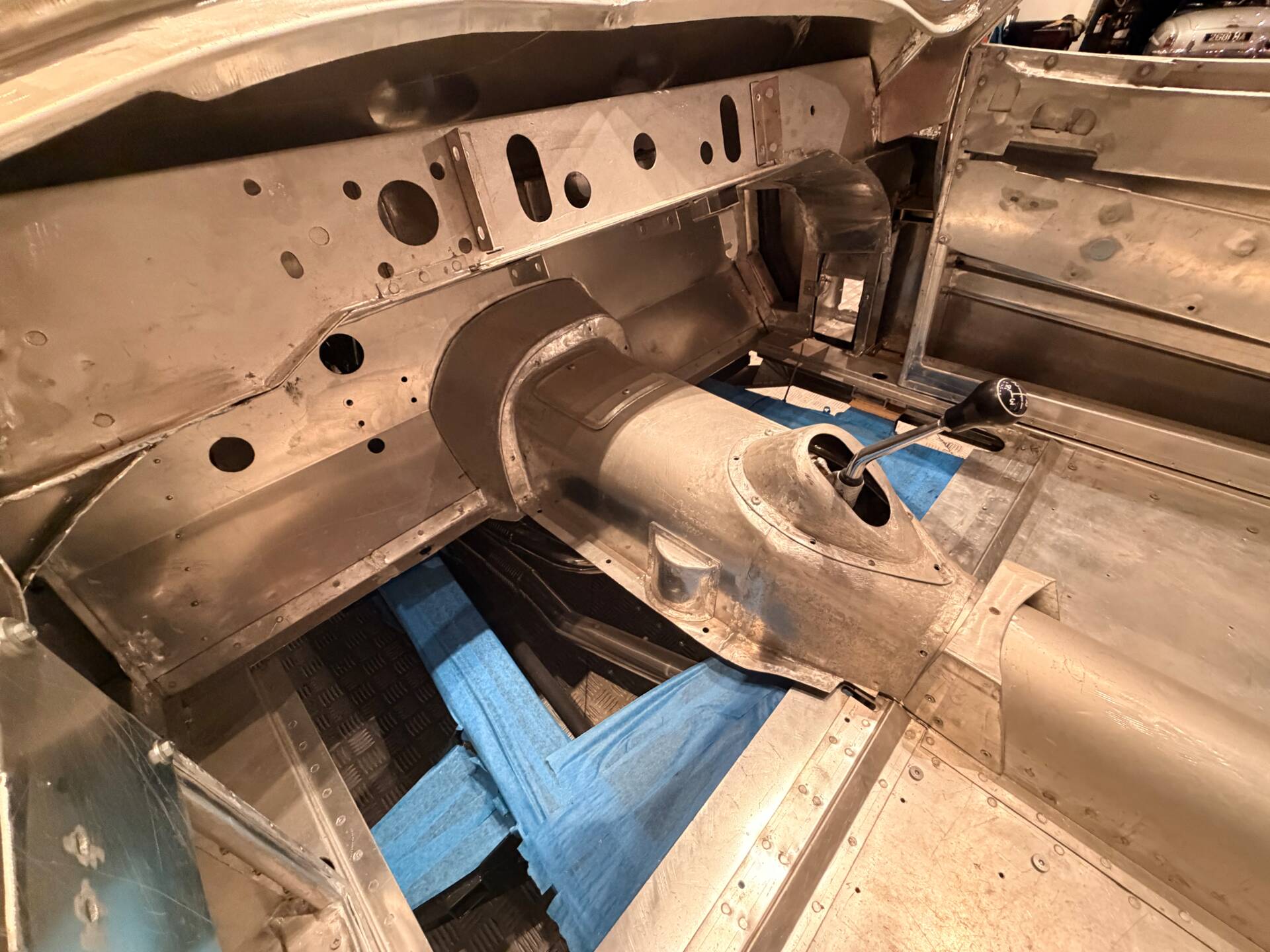 This XK is presented as a rolling chassis with an unpainted body. The engine and gearbox in place and are all restored. The car comes with polished spoked chrome wheels and boxes of various parts, ready to be fitted.