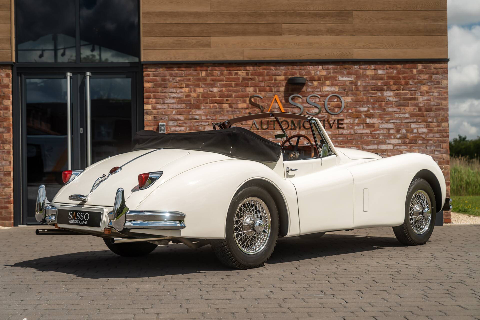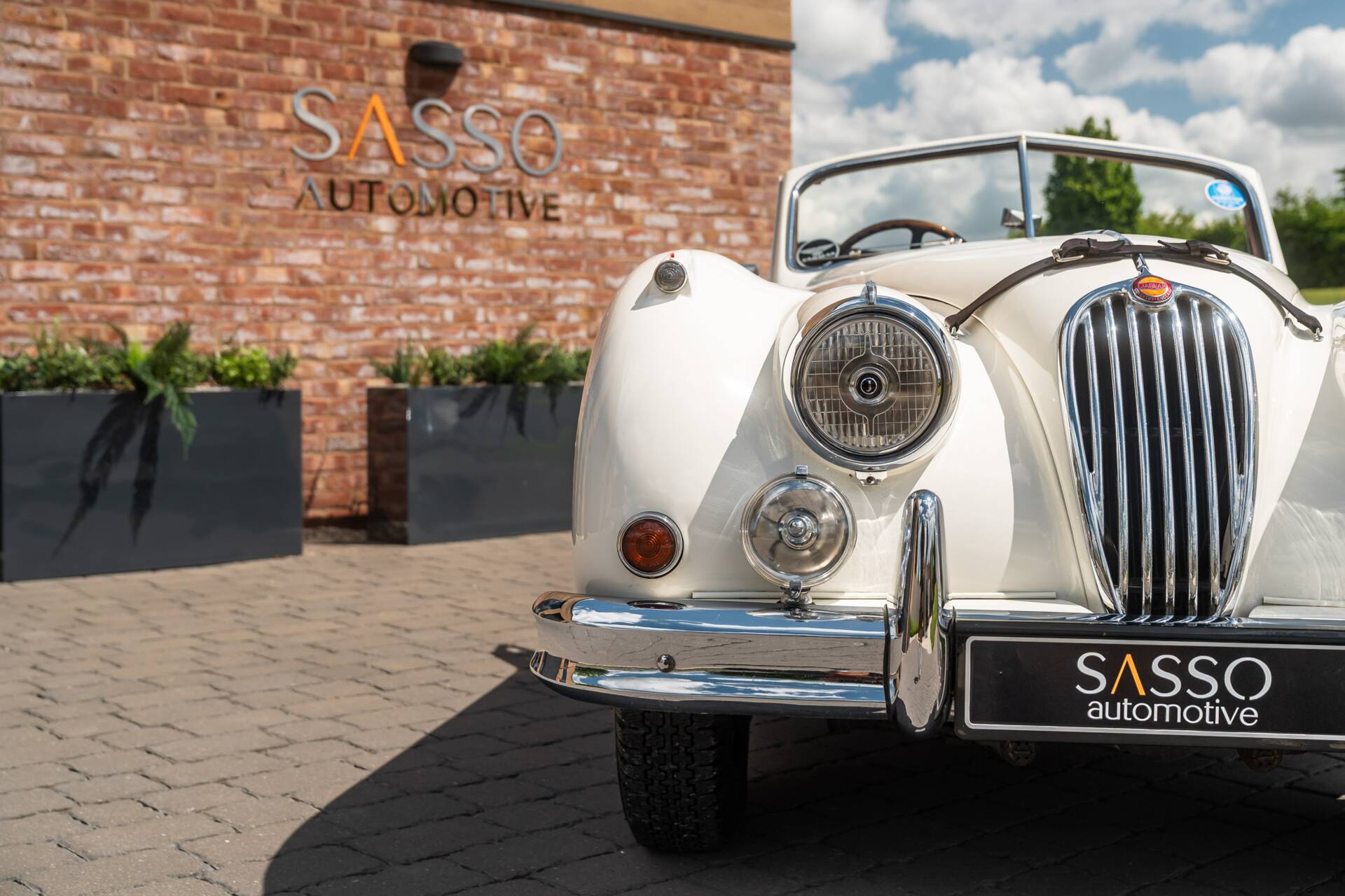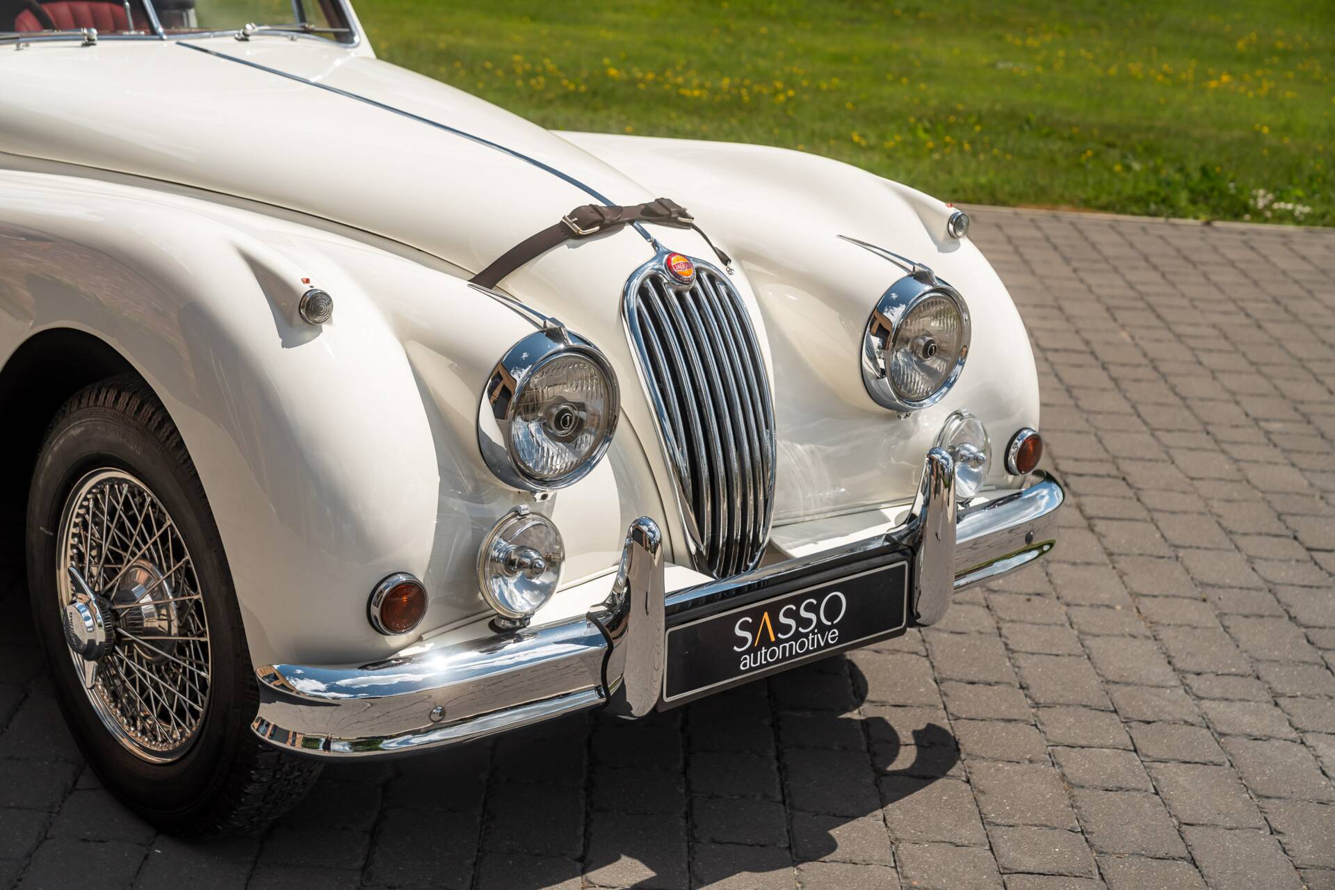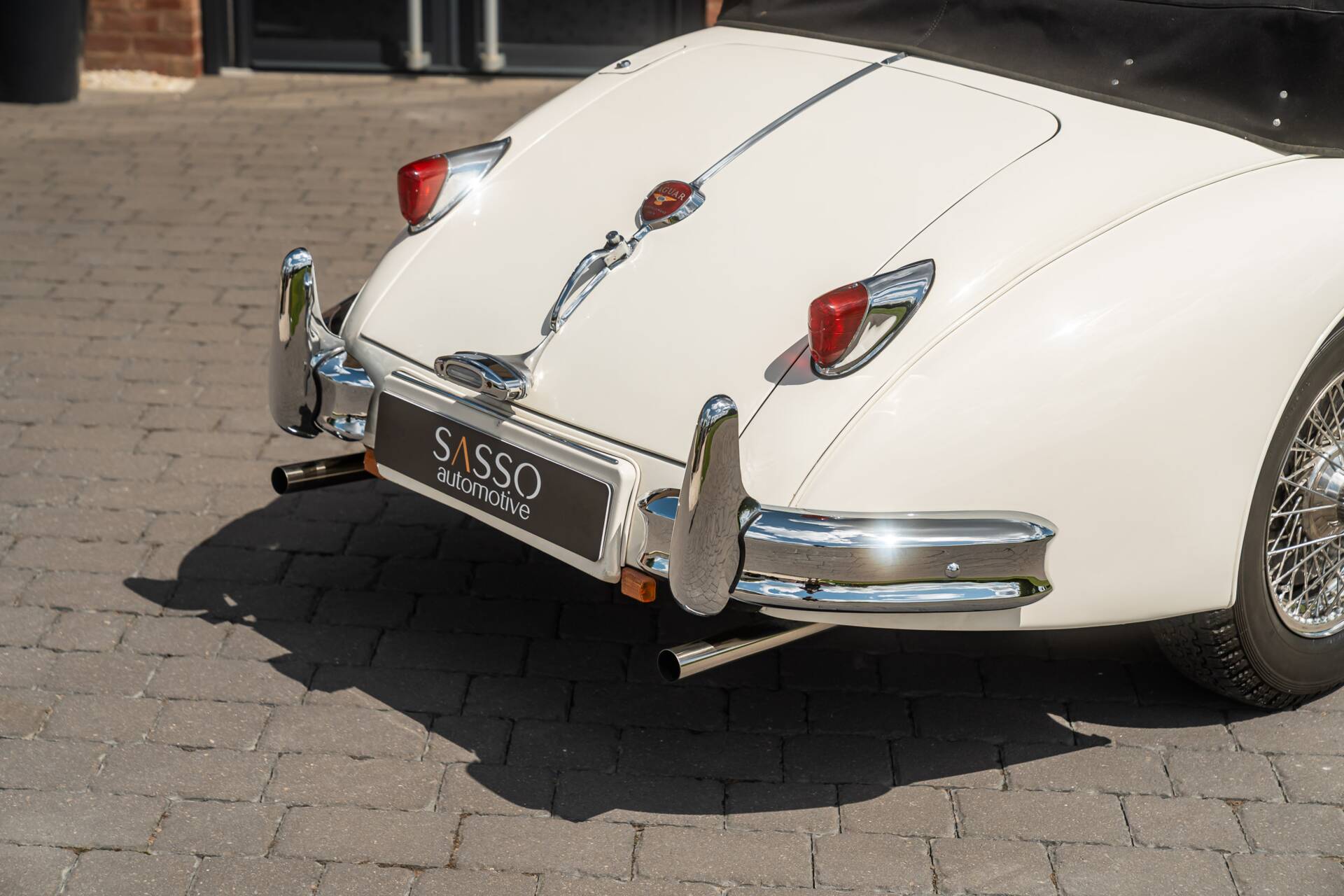 Chief among these was the adoption of rack and pinion steering. Though, the fitment of telescopic shock absorbers (in place of the XK120's antiquated lever arm dampers) also had a noticeably beneficial effect on handling / roadholding. With its engine and bulkhead repositioned three inches further forward, the new model enjoyed a notably roomier cabin the fixed and drophead coupe variants gaining occasional rear seats as a result).
