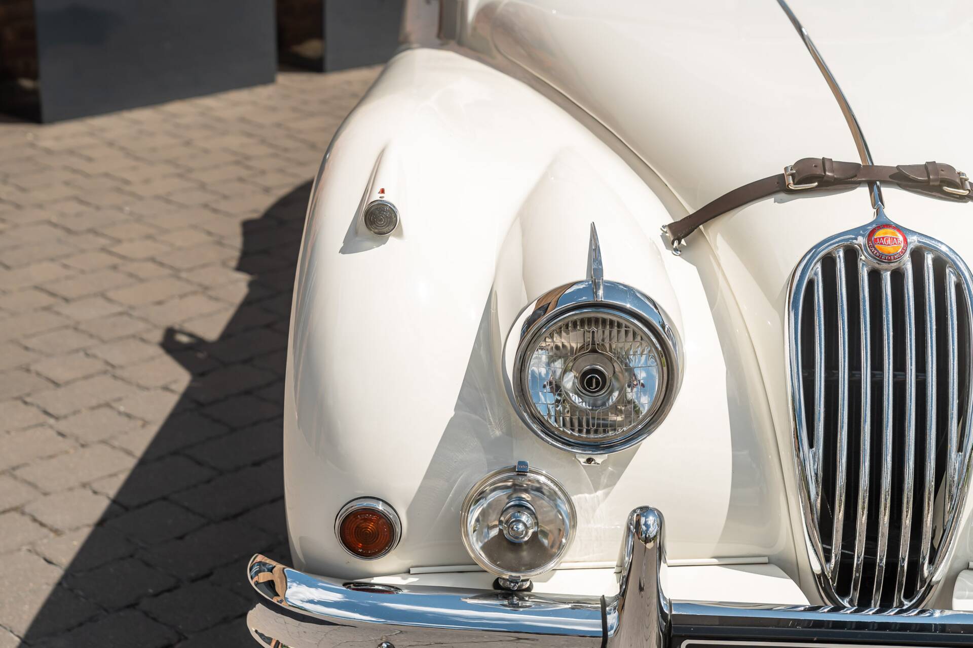 This particular 1955 Jaguar XK140 SE DHC has lived a life of refinement. Painstakingly restored to honor its heritage, it wears its original Old English white like a tailored Savile Row suit — sharp, iconic, and effortlessly cool. The leather is rich, the wood is warm, and the engine still purrs with the confidence of a legend.