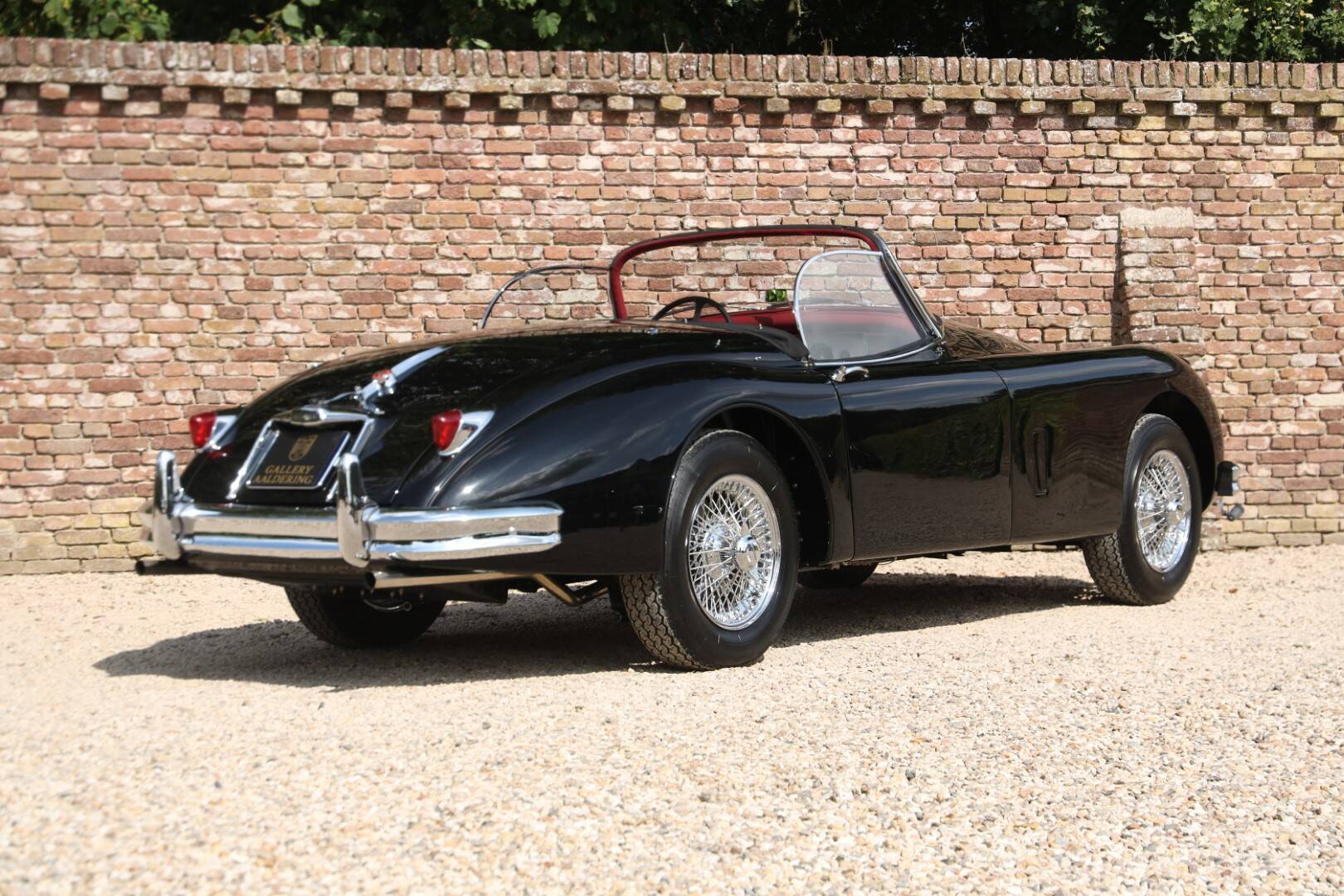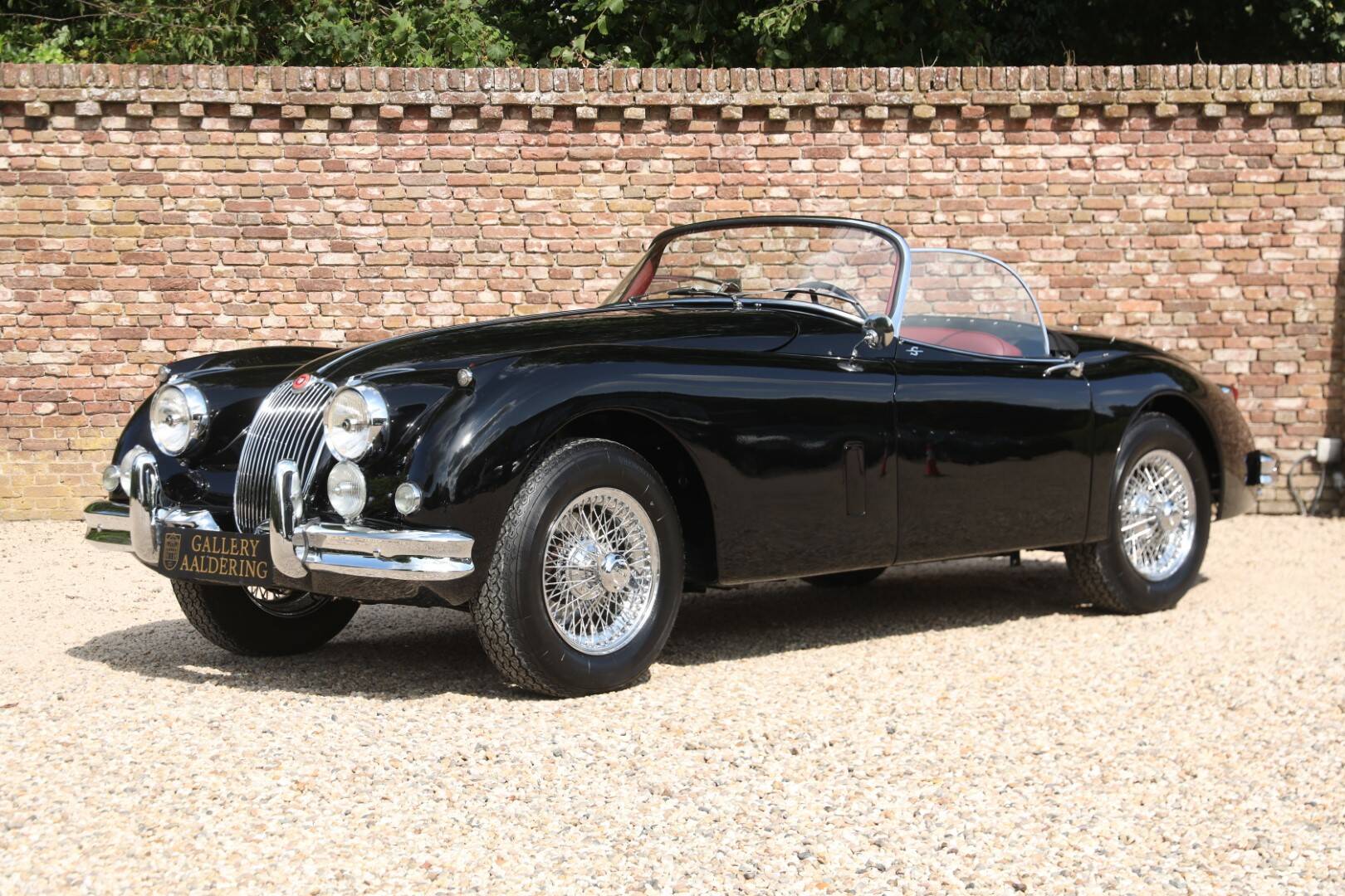 Jaguar XK150 3.4 S Roadster "Matching Numbers" A 4-year body-off restoration by a Jaguar connoisseur, Complete rebuild of chassis - bodywork and mechanics (engine - gearbox - brakes), Authentic “S” with the T-prefix in chassis number, Restoration process documented with photos and invoices, Classic "black" over deep red grained leather, Offered Jaguar Heritage Certificate,