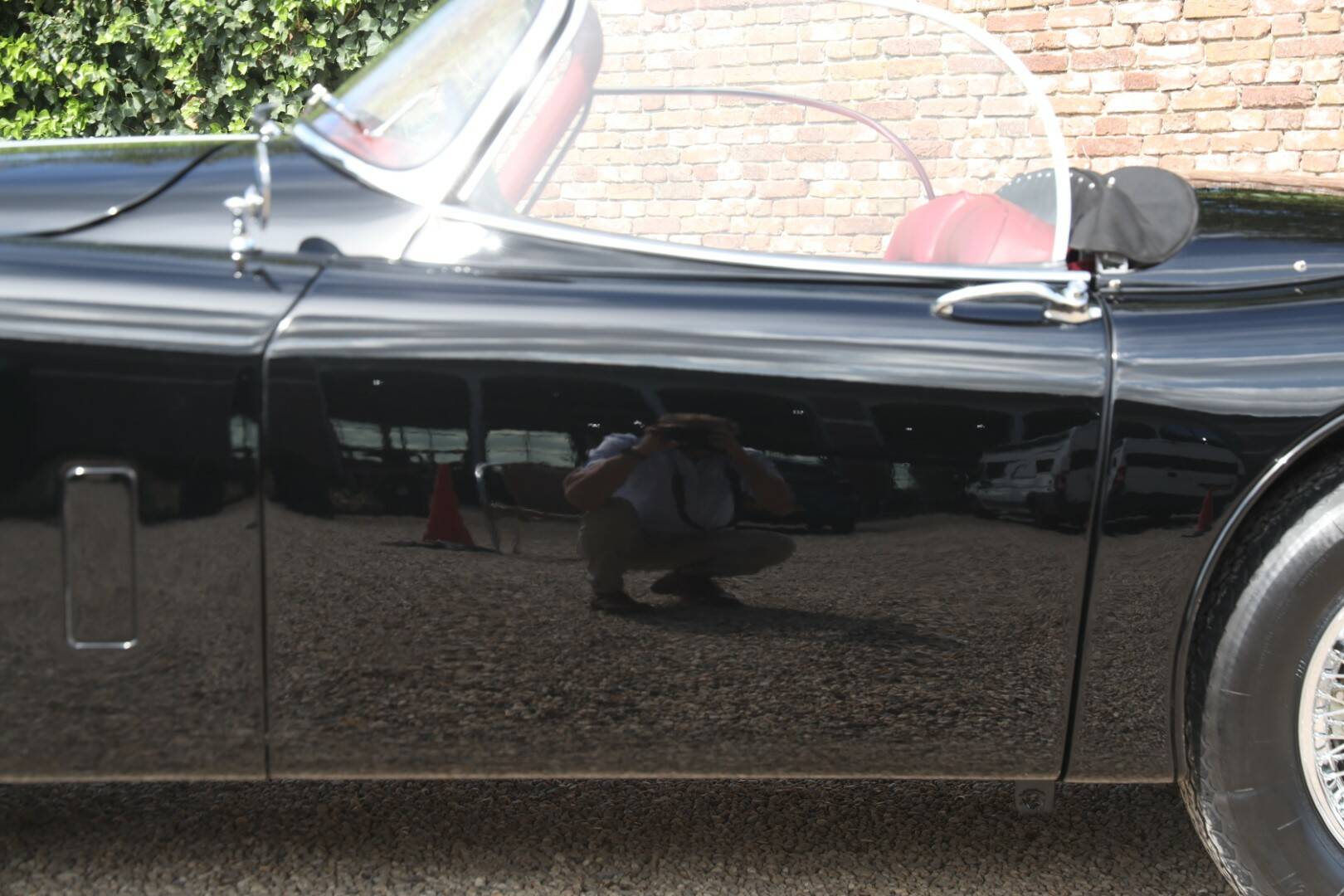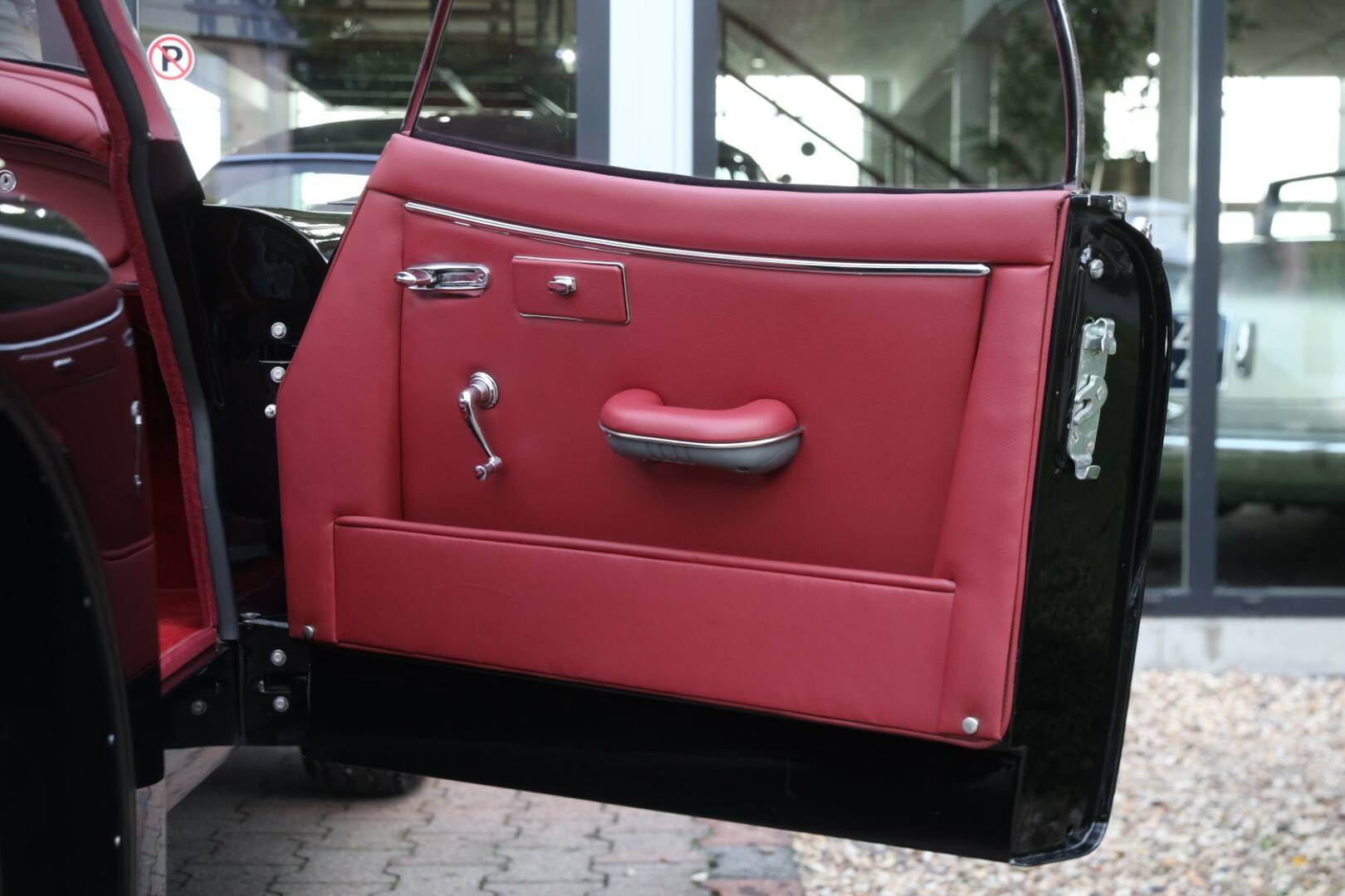 The restoration is carefully documented with photos and invoices, offering transparency on the work carried out. Its specification is timeless and elegant: a deep black exterior paired with a rich red leather interior, giving the roadster a distinctive character.