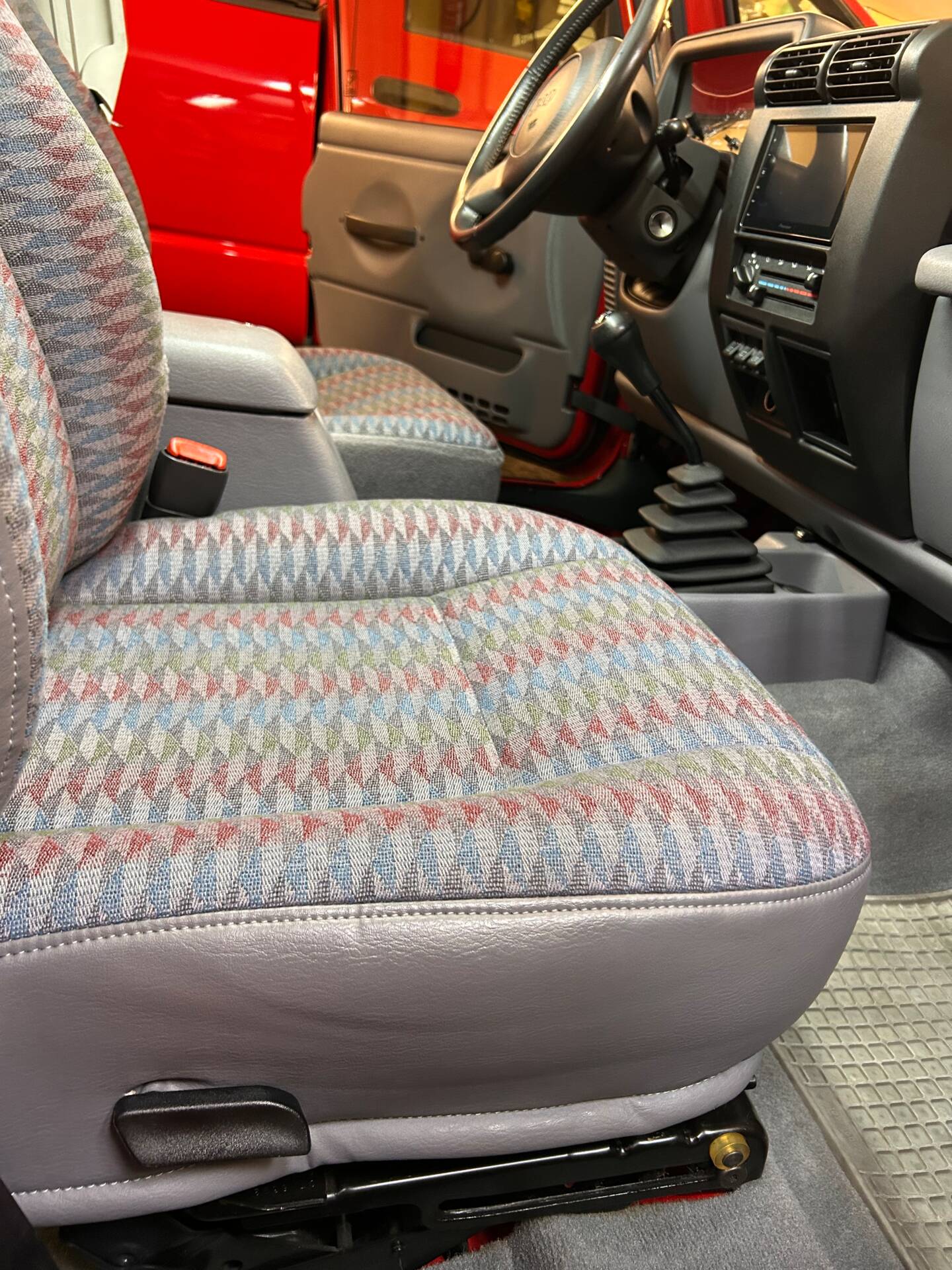 • Interieur: Die originalen Trailcloth-Sitze sind **in neuwertigem Zustand **– keine Risse, keine Löcher, keine typischen Scheuerstellen an den Wangen, Polsterung noch straff wie am ersten Tag. Perfekt erhalten.