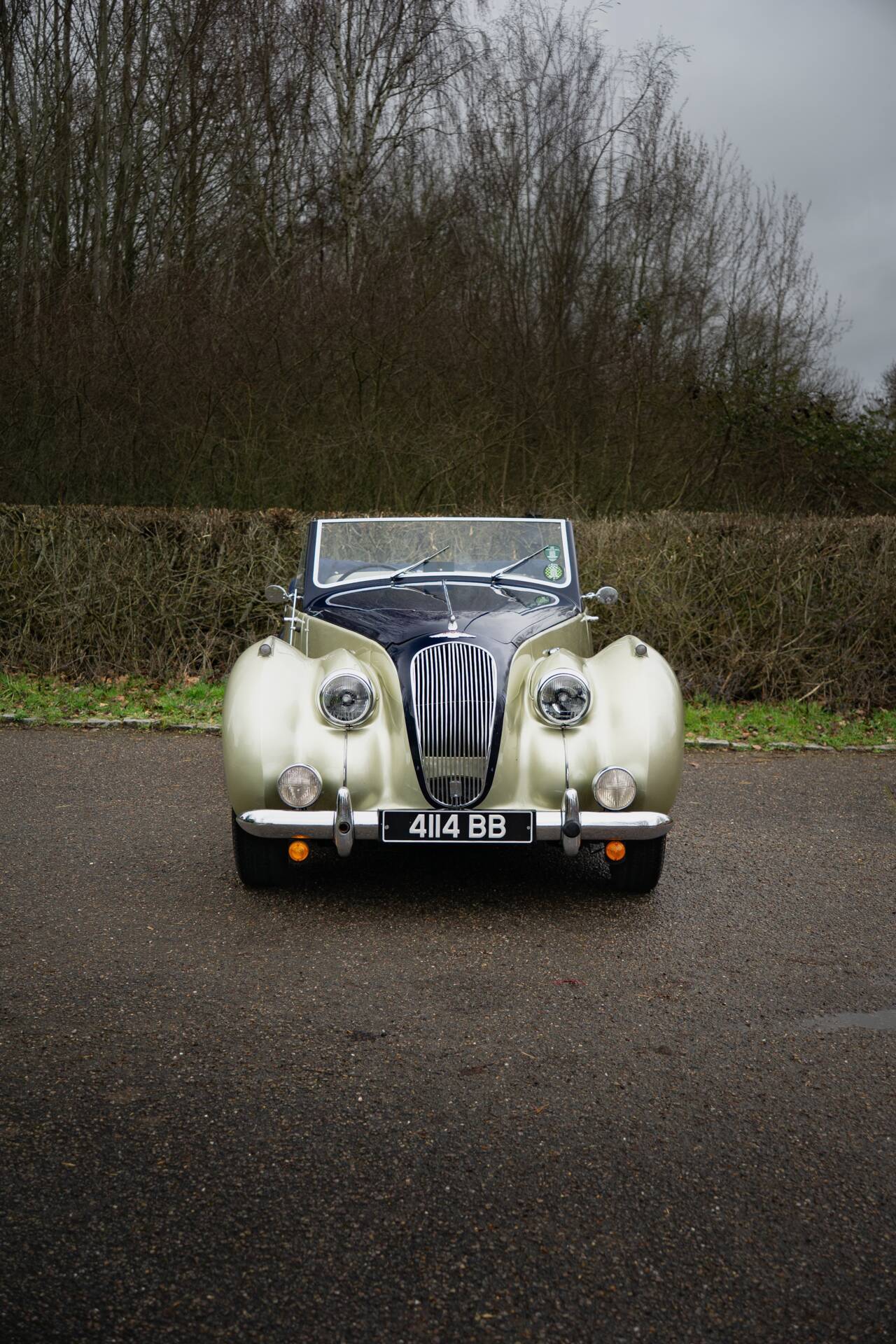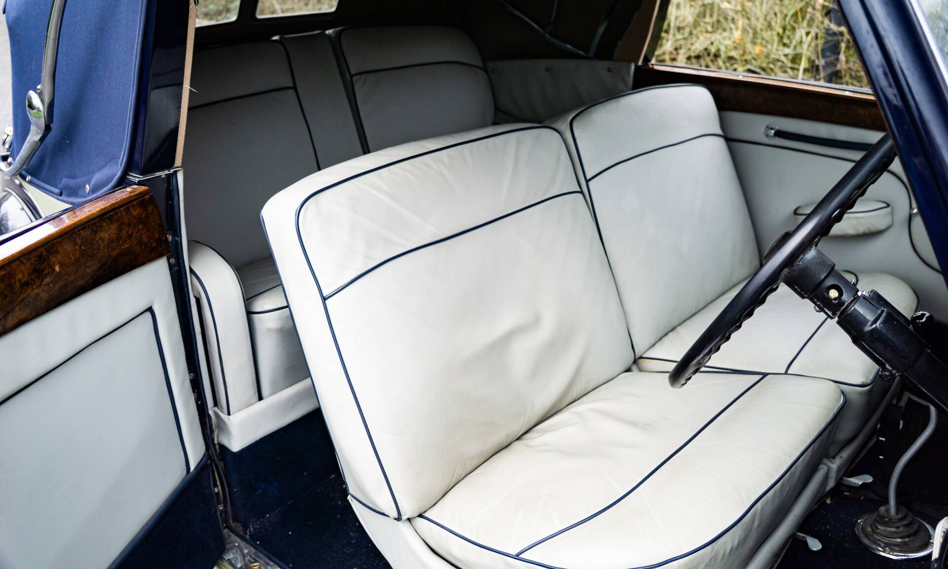 This beautiful example was registered on 2nd July 1951 and presents well in silver and blue coachwork. This rare example benefitted from a comprehensive restoration between 2001 to 2006 and was undertaken by Gavin Lumsden, a known restorer of post-war Rileys and it was a complete body-off procedure. The soft-top, in dark blue, was also totally restored and the interior of the car has benefitted from being retrimmed in white with blue piping. There are only a limited number of bills that have survived, however there is a good photographic record of the restoration. The car runs and drives very well and has also recently received a new floor mounted gearbox conversion (replacing the column mounted system) supplied by Aston Services. Overall, the car is in very good condition and has been well cared for during its years of ownership. Consigned by Dominic Lake