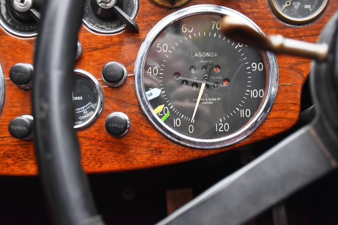 Driving this Lagonda is fantastic. The high-torque Meadows engine is very powerful, making it a very fast pre-war car. The accompanying engine sound is fantastic, and the long wheelbase also makes this a very stable car. In addition, the Lagonda has a lot of ground clearance, making it very suitable for long-distance rallies such as Peking to Paris and many other wonderful events. There is a great deal of documentation accompanying the car, including many photographs of foreign events in which the previous owners participated. All the rally stickers on the inside of the bonnet speak volumes about the versatility of this vehicle as a grand tourer.
