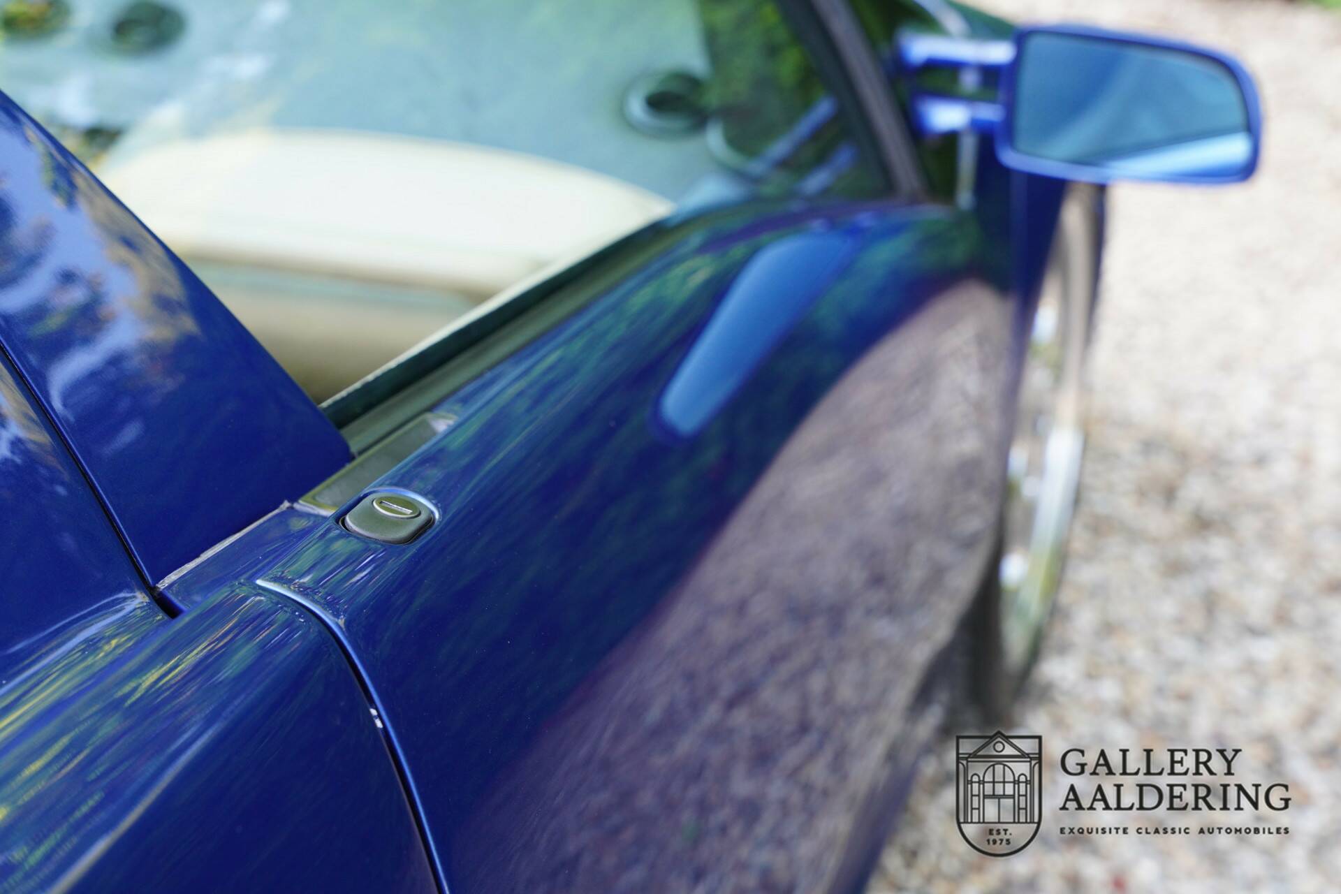 That is the variant we offer here, delivered on February 28, 1996 in America and received a Dutch registration in 2012. Despite its height of only 1.10 meters, you cannot overlook the supercar: bright blue metallic paint, an interior made of beige leather with many carbon parts: an absolute attention-grabber, this Diablo.