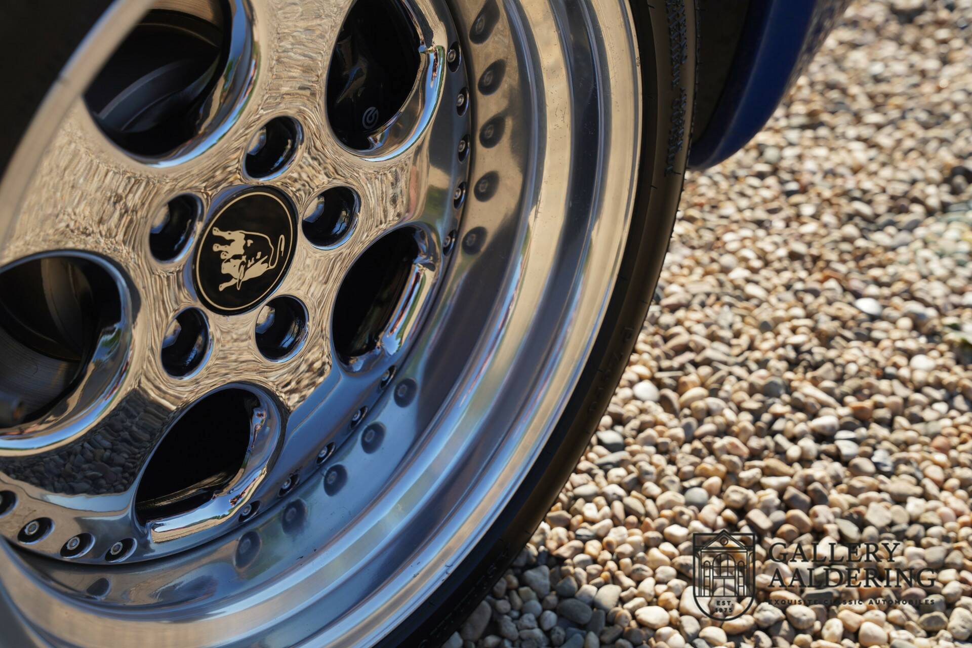 The body is beautiful, the paint in very good condition. In a word, the Lamborghini looks great, even more striking because of the original chrome-plated multi-part wheels. What an impressive car it is. Built at a time when pedestrian concessions, following an 'average taste of the target group' was not yet seen as leading. No, an extremely designed car as it should be in Lamborghini's eyes.