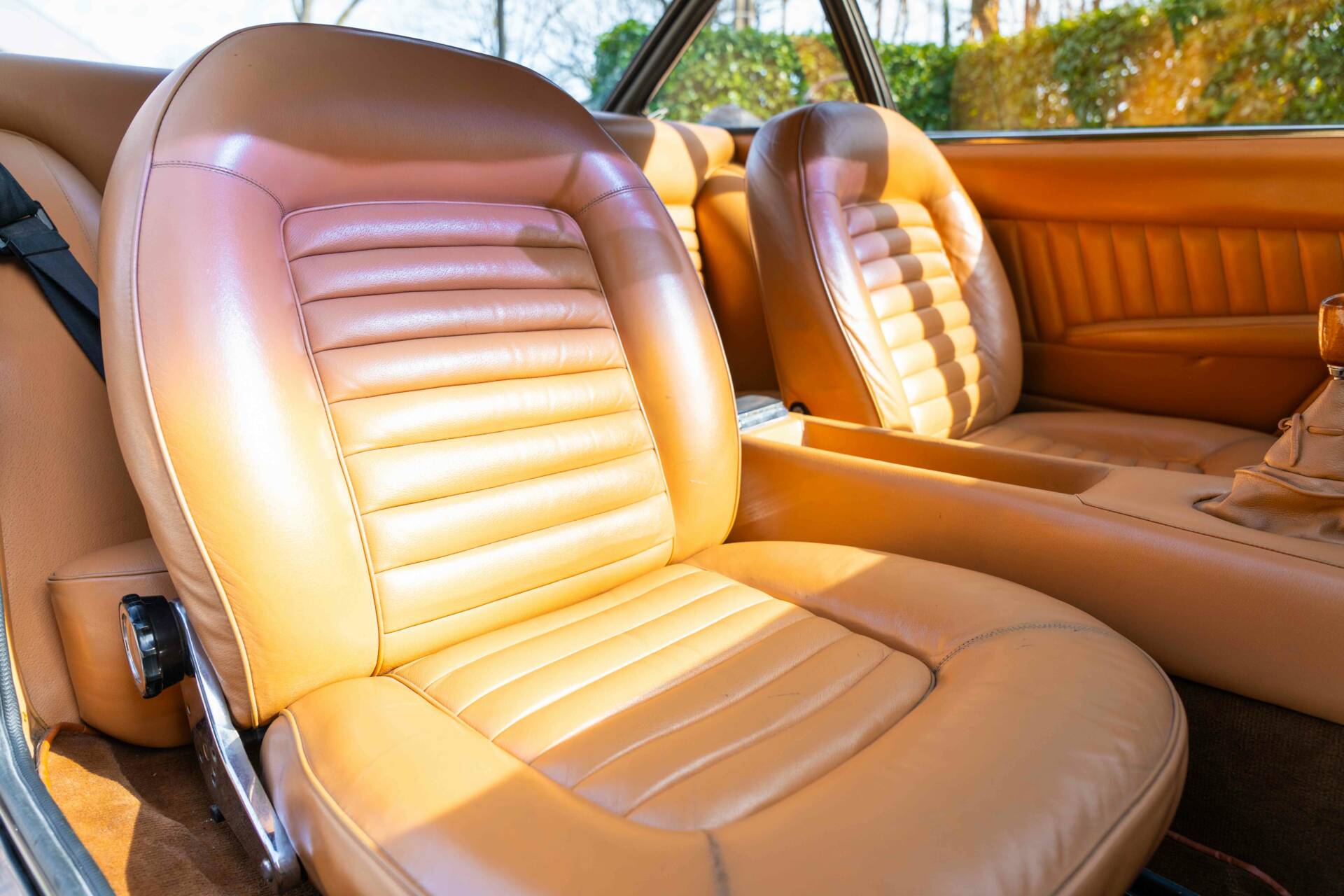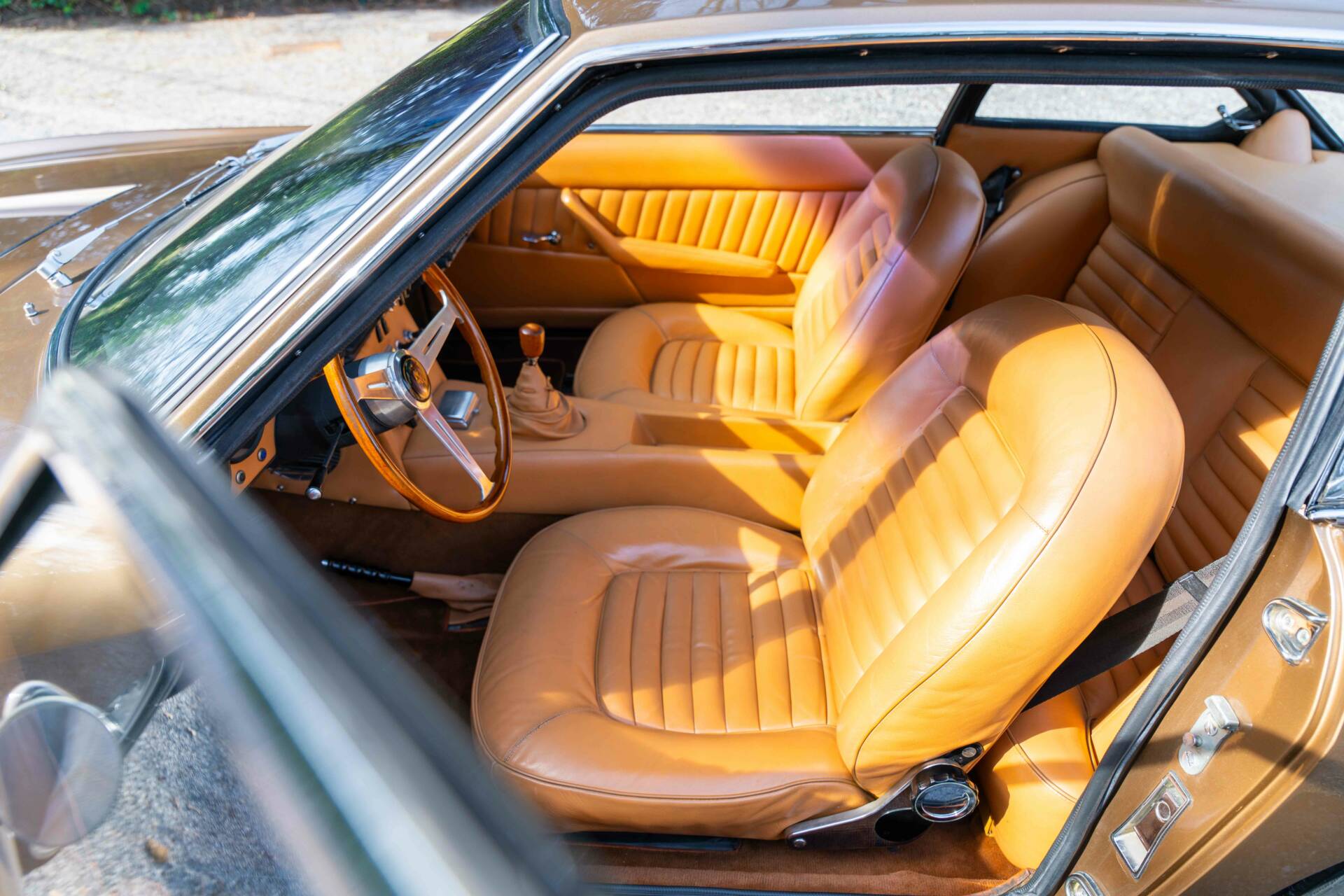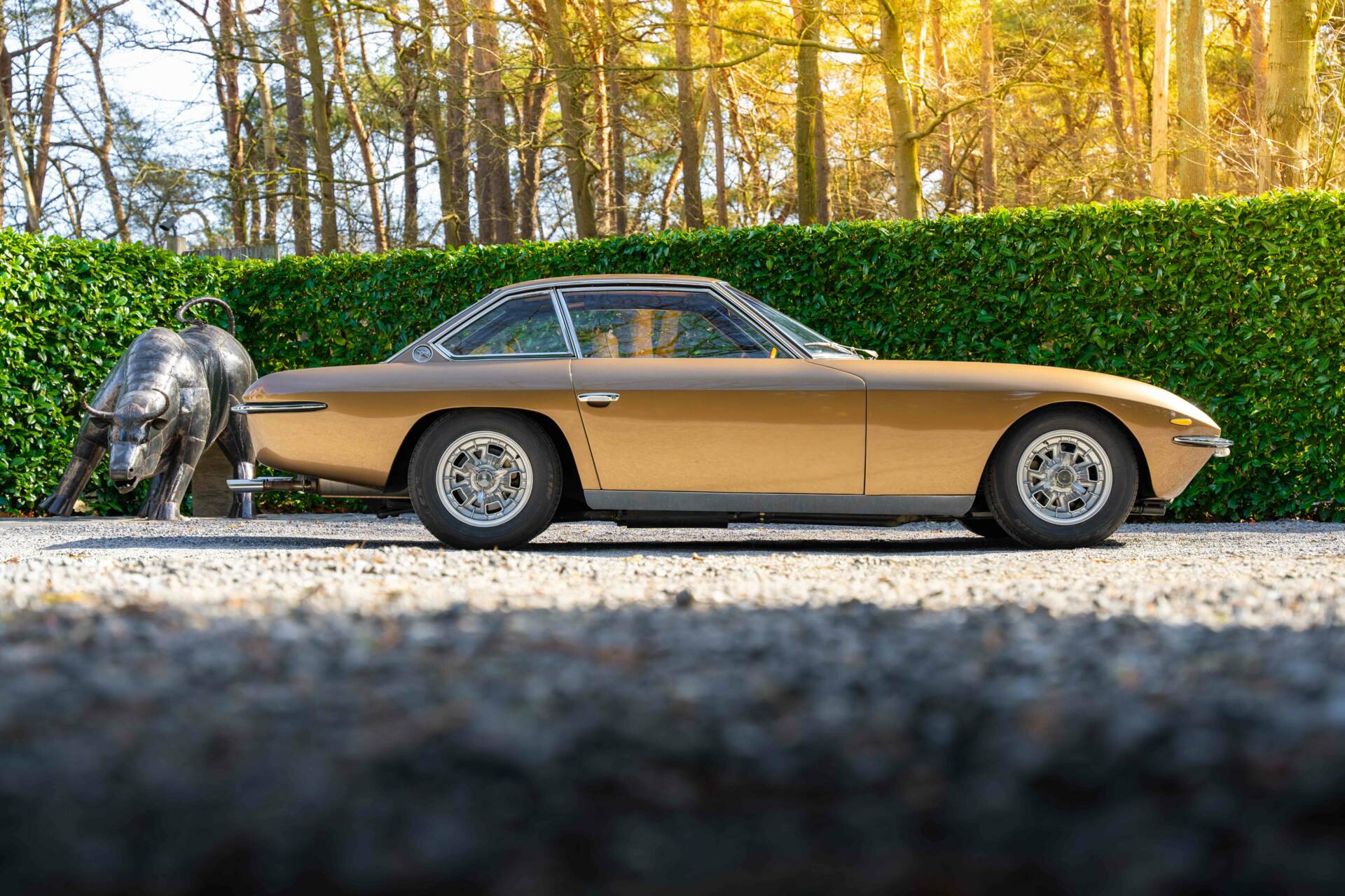 Very rare Lamborghini Islero Grand Tourer. There were only 125 first series and 100 Islero S built in 1968-1969!! This car is an original Belgian delivered car (Socaria) with matching numbers engine! Finished in the original color combination with completely original interior!! It was the replacement for the 400 GT and featured the Lamborghini V12 engine. The Islero was introduced at the 1968 Geneva Auto Show alongside the Lamborghini Espada. While both automobiles featured a 2+2 coupé body style, the Islero was intended to be a more visually conservative alternative to the then-radical Espada, in keeping with the traditional style of the earlier 400 GT. The car’s namesake, Islero, was a Miura bull that killed matador Manuel Rodriguez. Carrozzeria Marazzi was chosen to construct the Islero’s body. This firm was chosen as it was founded by Carlo Marazzi, a former employee of the now-bankrupt Carrozzeria Touring. Touring had previously produced bodies for the 350 GT and 400 GT. The firm was staffed by former Touring employees, along with Marazzi’s sons Mario and Serafino. Ferruccio Lamborghini was rumored to be the true designer of the body, dictating his requirements to Marazzi. The design was essentially a rebody of the 400 GT, with its good outward visibility, roomier interior, and additional soundproofing improving driver and passenger comfort compared to previous models. Real collectors item!!