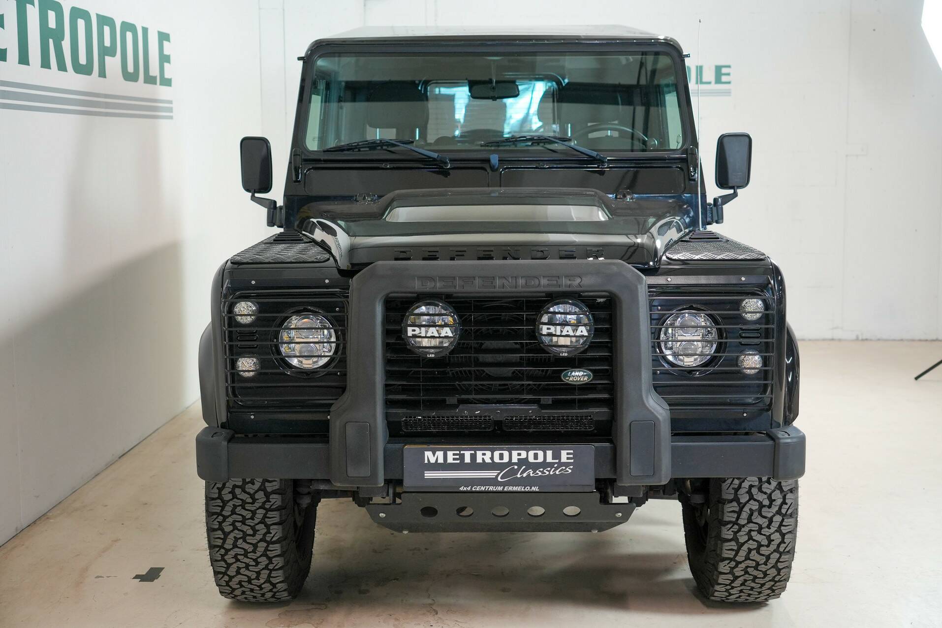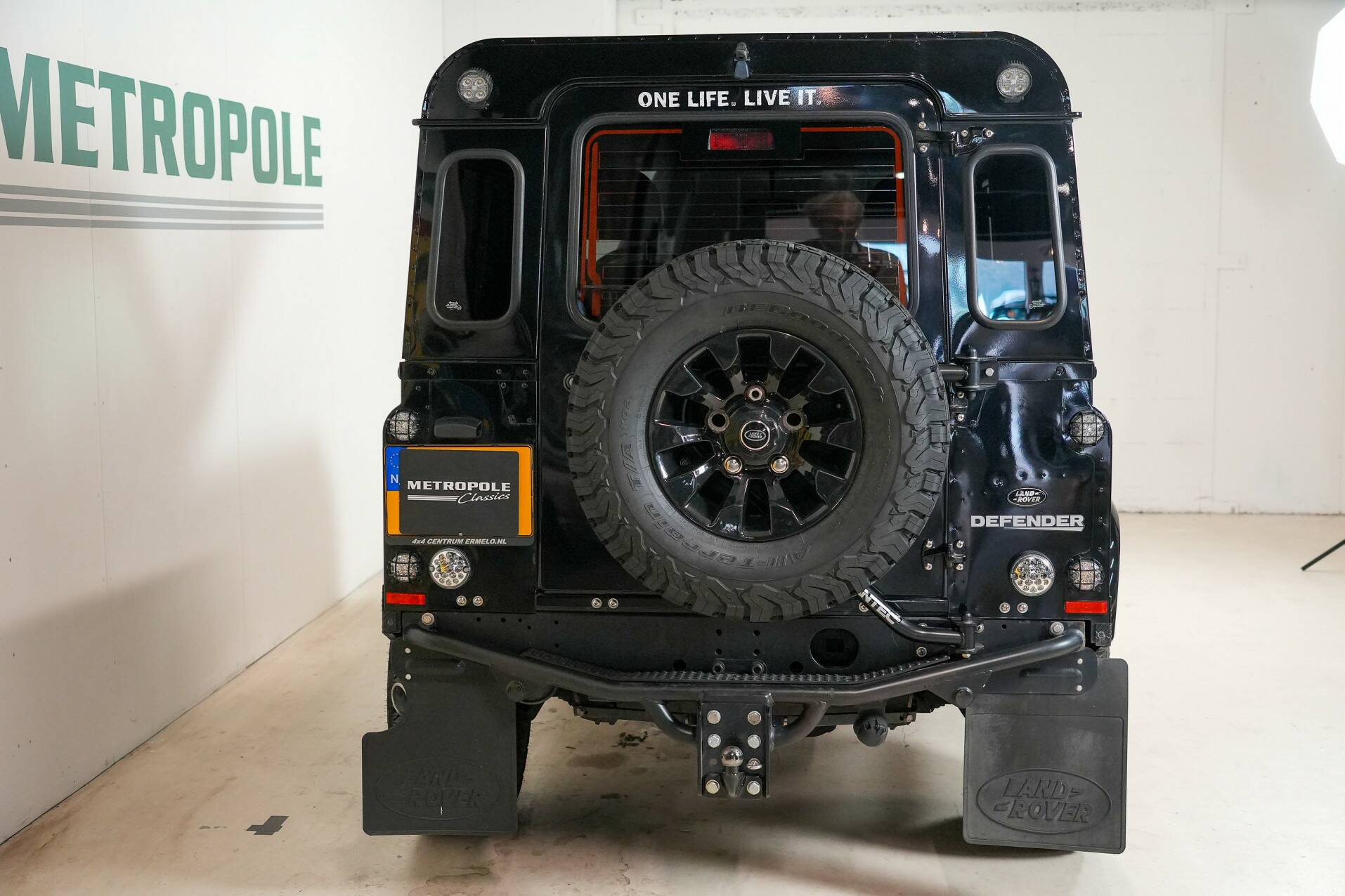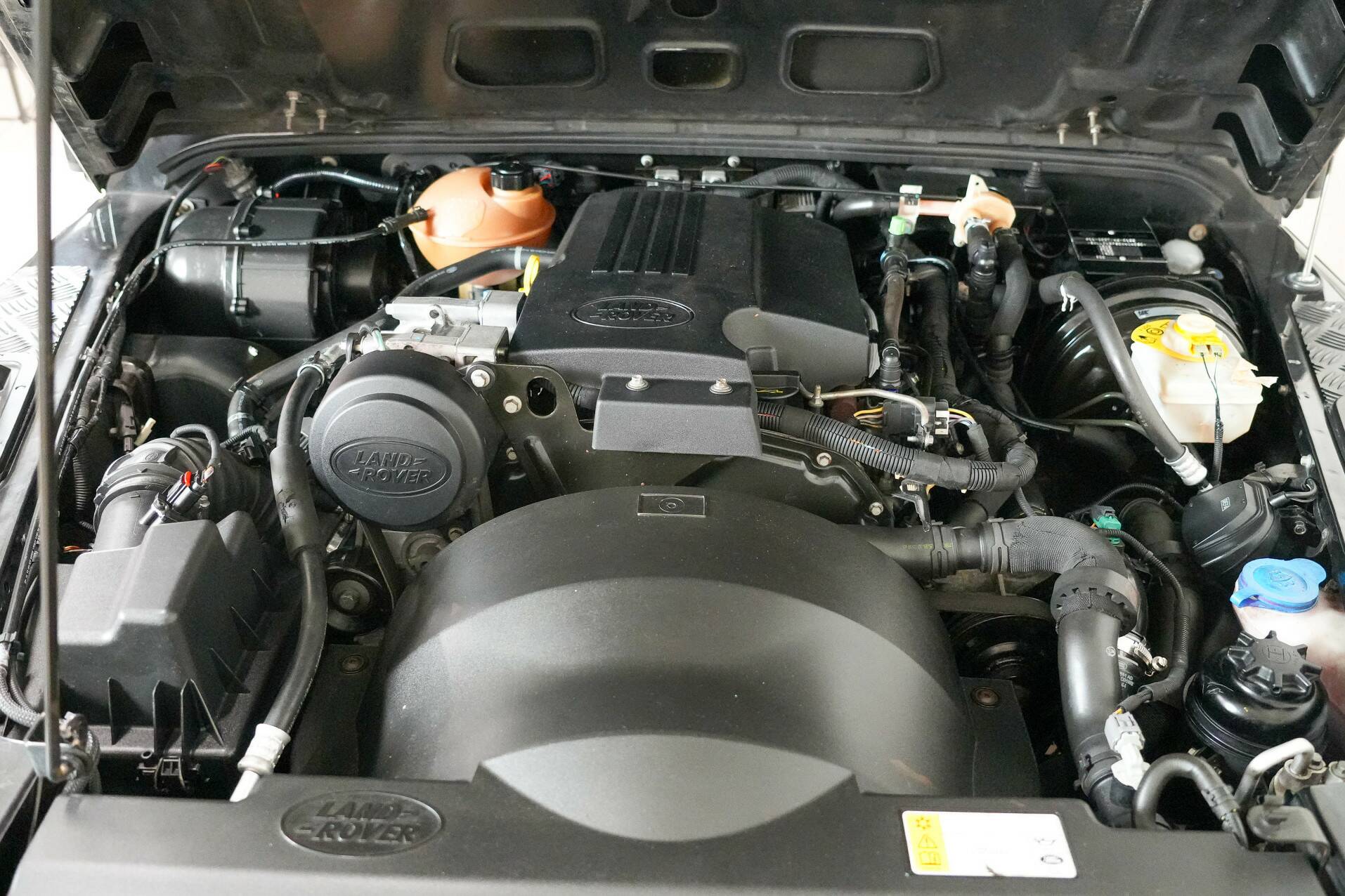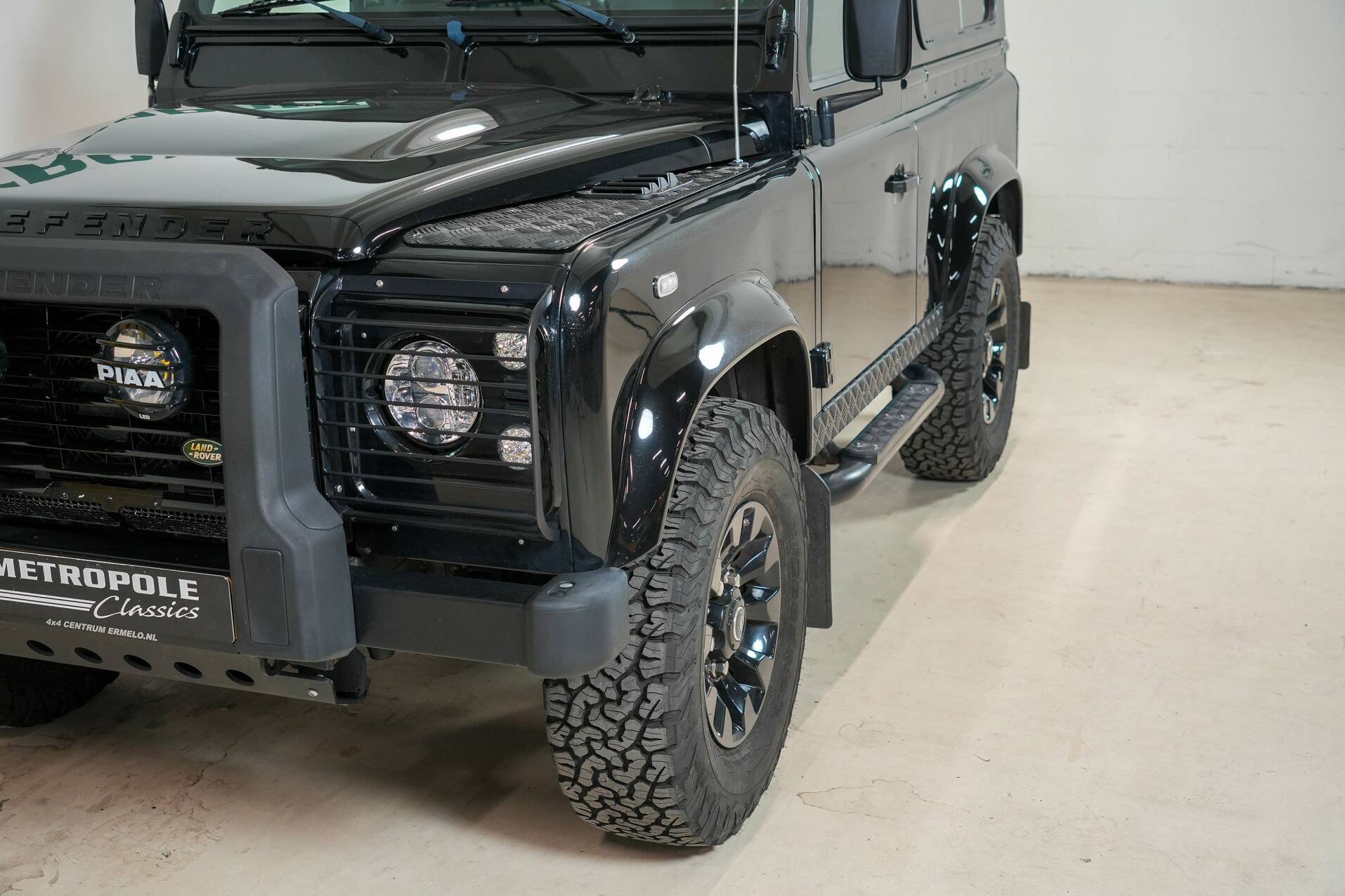 The original bull bar is mounted up front, giving it a very rugged appearance. The five Sawtooth wheels are fitted with new tires and certainly contribute to the car's character. The rear features very powerful reversing lights for easy maneuvering. All in all, a beautiful, luxurious Defender that definitely deserves to be seen. It's completely clean under the hood and looks fantastic.