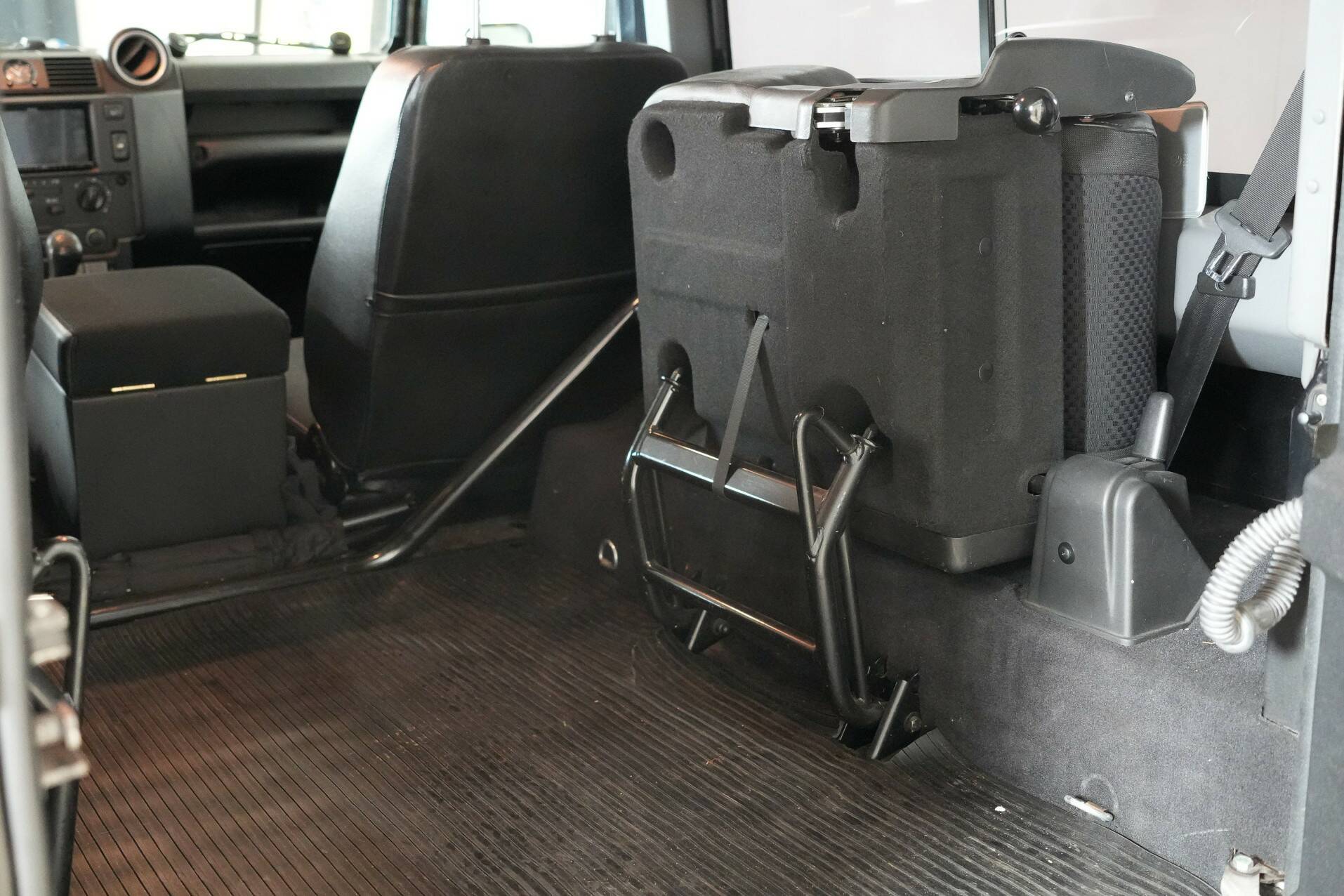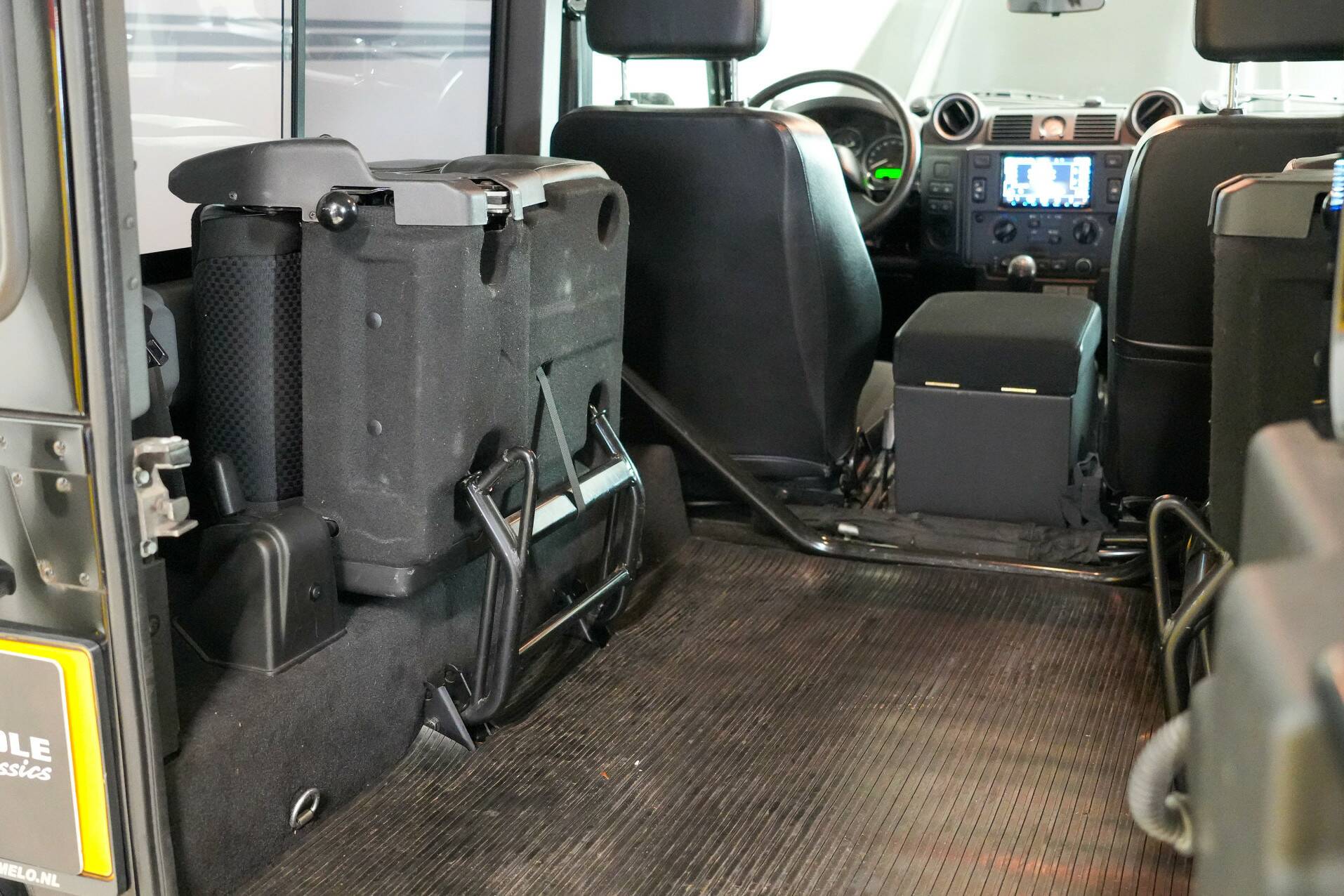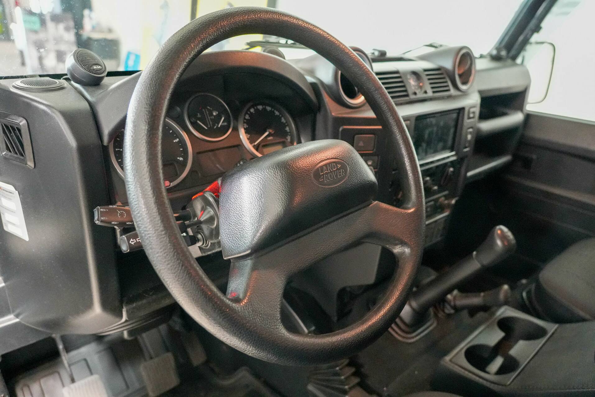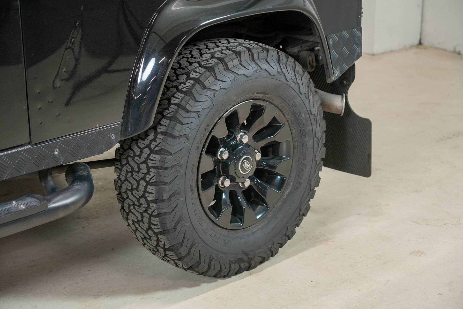 The original bull bar is mounted up front, giving it a very rugged appearance. The five Sawtooth wheels are fitted with new tires and certainly contribute to the car's character. The rear features very powerful reversing lights for easy maneuvering. All in all, a beautiful, luxurious Defender that definitely deserves to be seen. It's completely clean under the hood and looks fantastic.