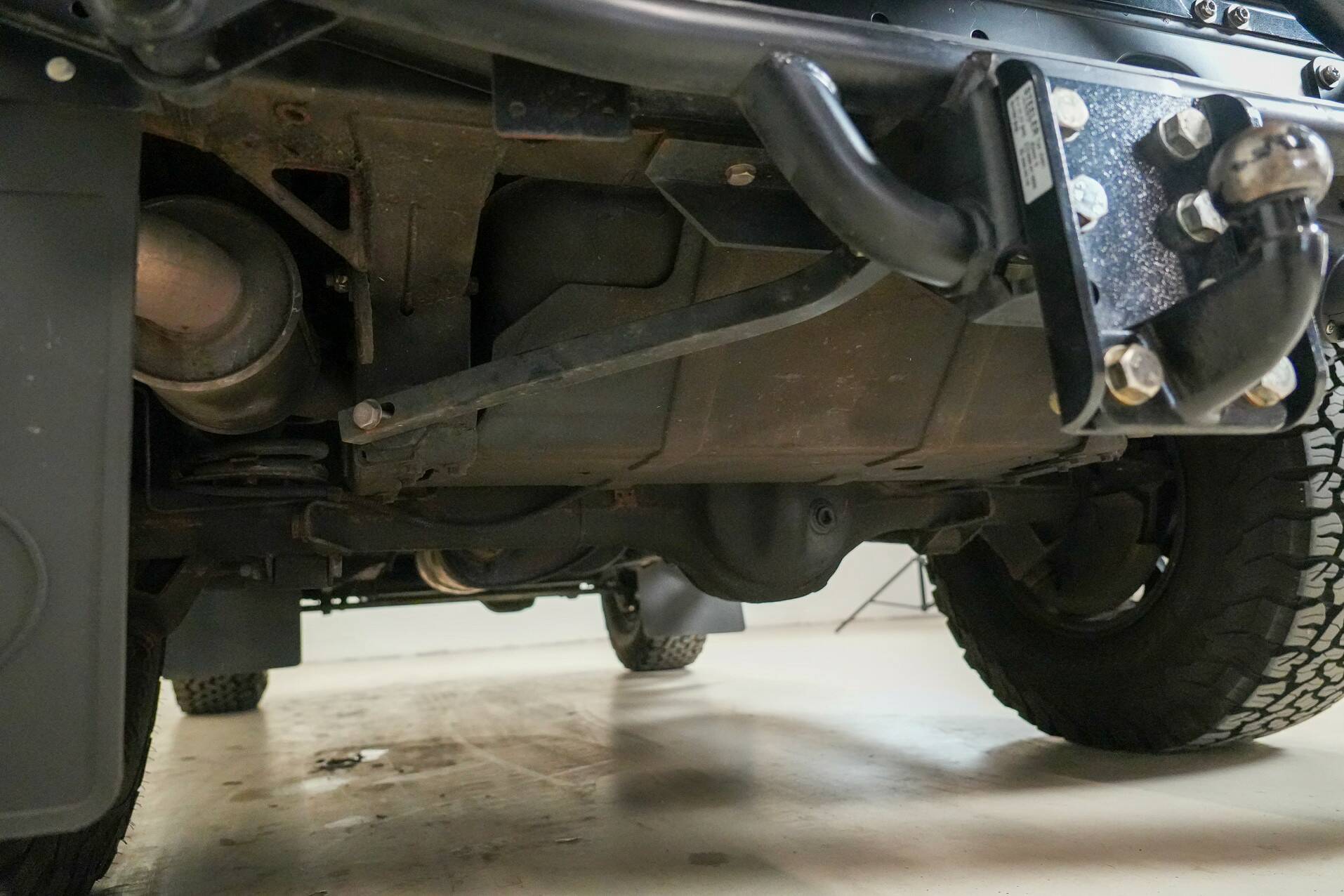 The Defender was developed for use in extreme conditions. The vehicle is equipped with coil springs and has permanent four-wheel drive. The center differential can be locked for optimal traction off-road. The Defender has a body-on-chassis construction rather than a monocoque, making all components easy to replace, often manually. This is ideal for when maintenance is required in the field.