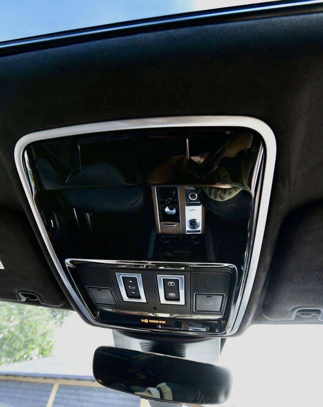 The rear has a certre console that folds down at the touch of a button & then slides open to reveal cup holders & electric charging points etc. There is a fridge located between the front seats. The roof is a slide open glass affair with a dark sun blind that deploys at the touch of a button.