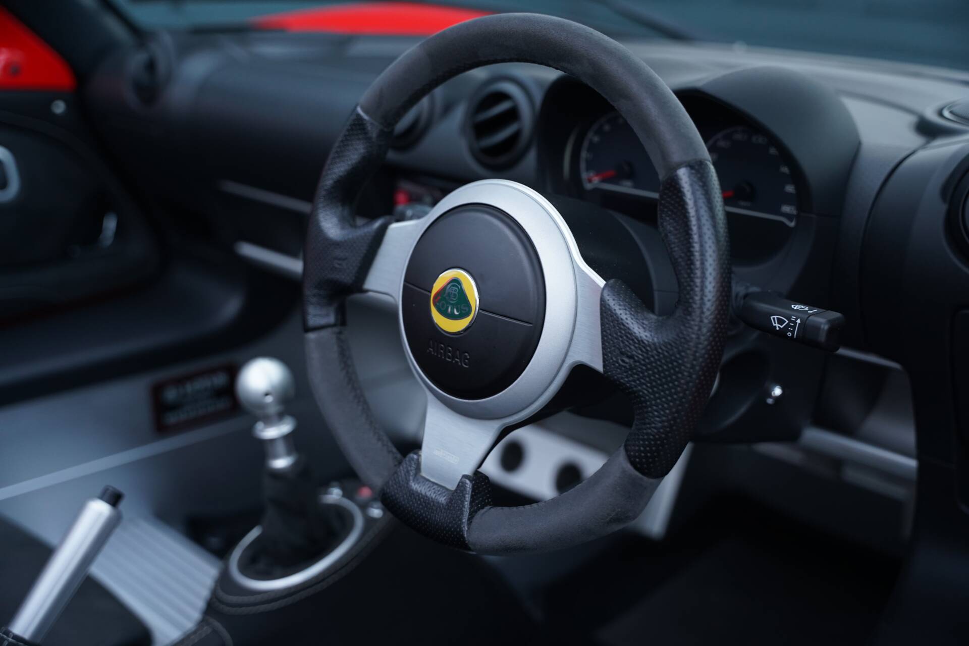 The interior remains simple, as an Elise should be. A black Atom cloth and SuedeTex scheme can be found, with Sport seats and a subtle white contrast stitch. Specified with the Comfort Pack, this includes a 4-speaker sound-system, 220 CUP logo floor mats, sound insulation and an aluminium passenger footrest alongside central locking. Air-conditioning is also specified and the interior presents in an excellent condition throughout. A Lotus Motorsport build plate commemorates the special edition.