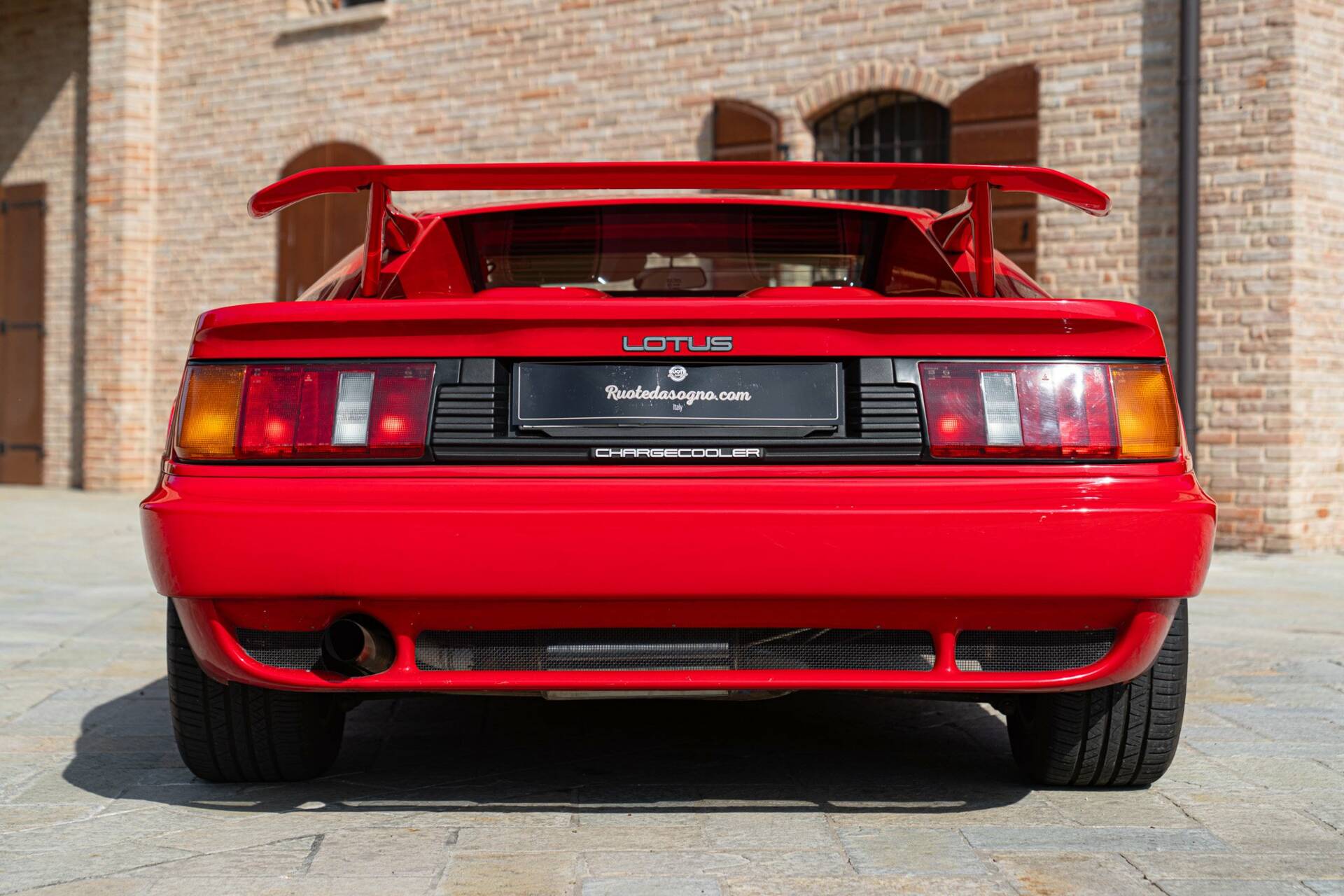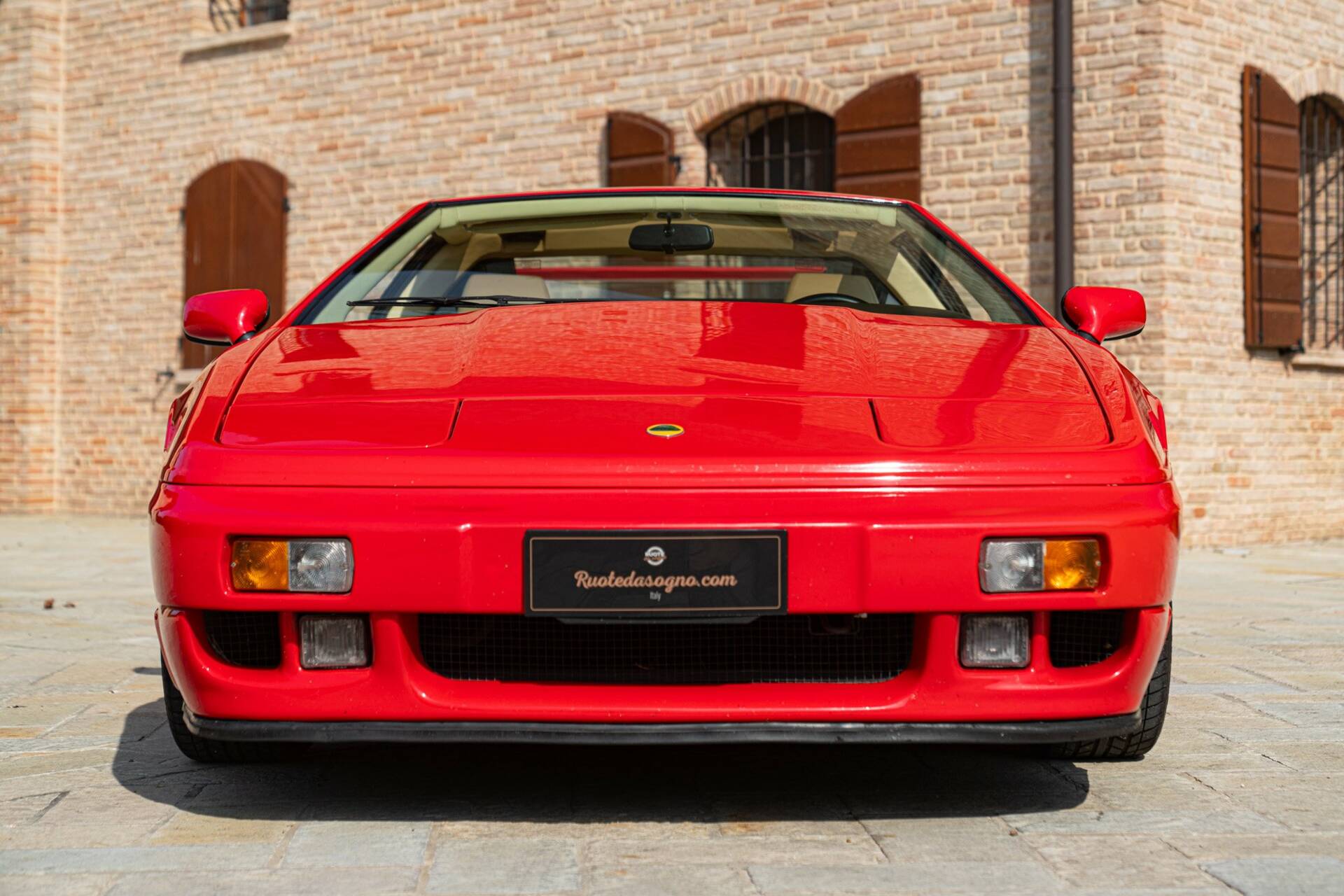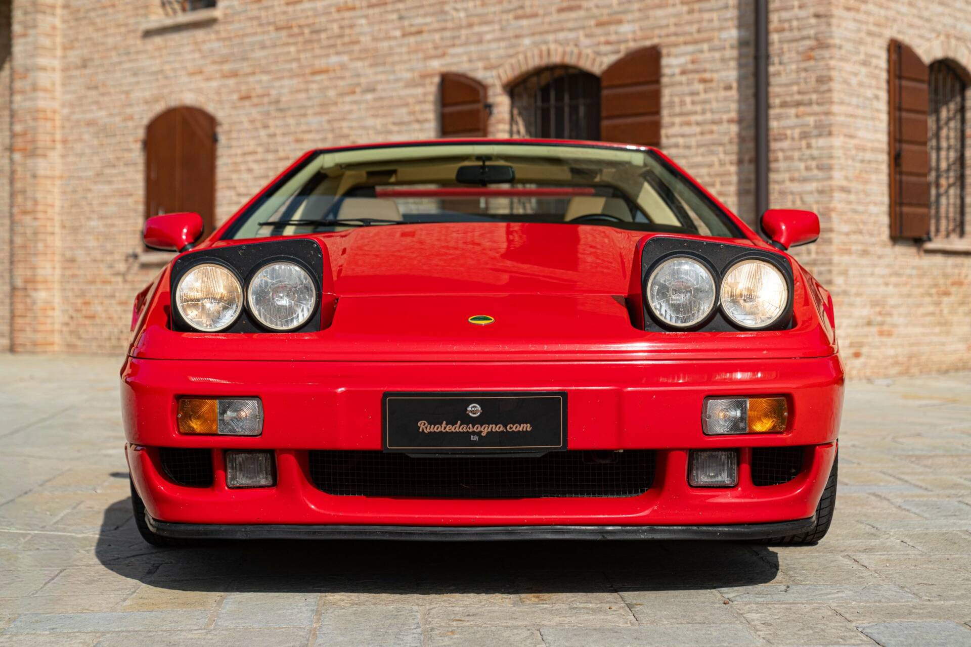 La Espirit fu disegnata da Giugiaro nel 1972 e protagonista al cinema con James Bond e Pretty woman. La Lotus Esprit "Turbo" 2.0 allestimento SE (special Equipent) monta un motore 4 cilindri in linea da 2.0 litri turbocompresso, con 243 CV (179 kW), capace di raggiungere i 263 km/h e un'accelerazione da 0 a 100 km/h in circa 5,4 secondi. Questa vettura fu prodotta dal 1991 al 1993. La vettura in oggetto è stata prodotta il 26 novembre del 1991. Importata da Autoexpo, importatore Lotus per Italia. Immatricolata nel 1992.Dotata di High Wing (alettone alto) colore calypso red e interni in pelle Magnolia. N 5 delle 13 prodotte di questo colore. Accessoriata con tetto in cristallo (rimovibile). Originale in Tutto. A.S.I. targa oro n 59196.