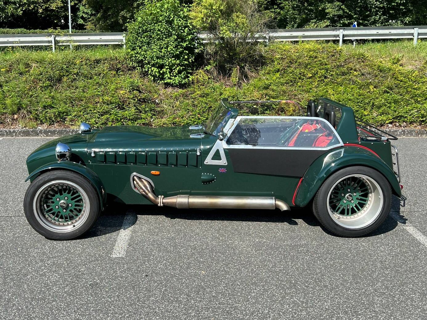 Man nehme einen Gitterrohrrahmen, breite ihn um 18 Zentimeter auf, verpasse ihm einen 4,6-Liter-V8 aus dem Rover HSE, würze mit einer Ford Cosworth-Rennkupplung und garniere das Ganze mit einem Klang, der irgendwo zwischen Gewitter und britischer Orgel liegt – fertig ist der Super Seven XXL.