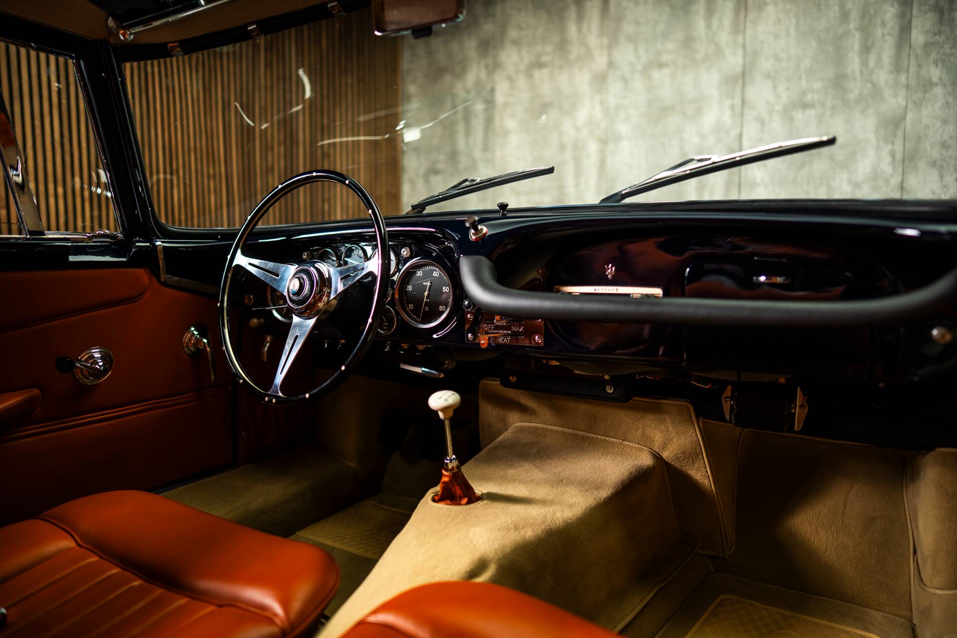 Thanks to the discreetly installed air conditioning system, this car remains comfortable to drive even on warm summer days, whether for a leisurely drive or a concours event.
